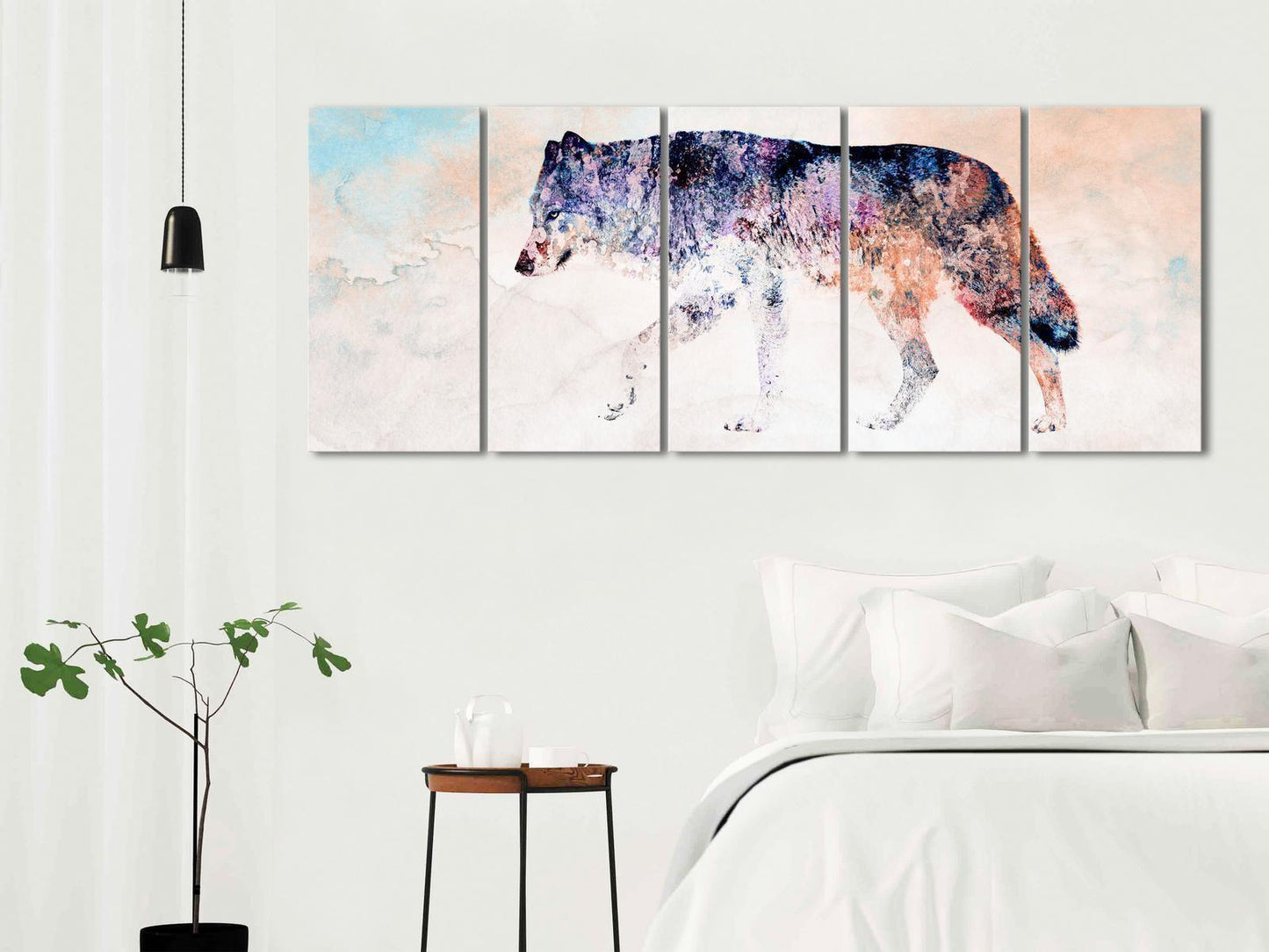 Unsere Bilder sind sicher und geruchsneutral und eignen sich daher ideal für Kinderzimmer. Die Größe wird Ihr Kind sicher beeindrucken! Bilder für Schlafzimmer sind ein echter Blickfang, genauso wie Bilder Wohnzimmer. Dekorieren Sie die Wände in Ihrem privaten Bereich mit einem Bild "Leinwandbild - Lonely Wolf (5 Parts) Narrow". Wir empfehlen Bilder für Schlafzimmer, die Sie beruhigen und in eine erholsame Stimmung versetzen. Bilder aus unserer Kollektion werden Ihrem Interieur eine außergewöhnliche Atmosphäre verleihen. Unabhängig vom Raum schaffen auch Kunst Bilder eine gemütliche Atmosphäre für die Gäste. Massive Holzrahmen unterstreichen den einzigartigen Charakter der Schlafzimmerbilder, und ein schneller und sicherer Versand ist ein weiterer Vorteil, der für diese Wanddekorationen spricht. Bilder auf Leinwand sind in vier Versionen erhältlich, aus denen jeder Kunde die perfekte Option für seine Bedürfnisse finden wird. Das Angebot umfasst eine Version auf Vliesleinwand (Standard), auf italienischer Leinwand, Premium Print (ein Bild, das auf italienischer Leinwand gedruckt und von Hand mit einer Schicht transparentem Gel überzogen ist, das die Pinselstriche des Künstlers imitiert) sowie in einem soliden, hölzernen American-Box-Rahmen (zwei Rahmenfarben zur Auswahl, Muster gedruckt auf italienischer Leinwand).