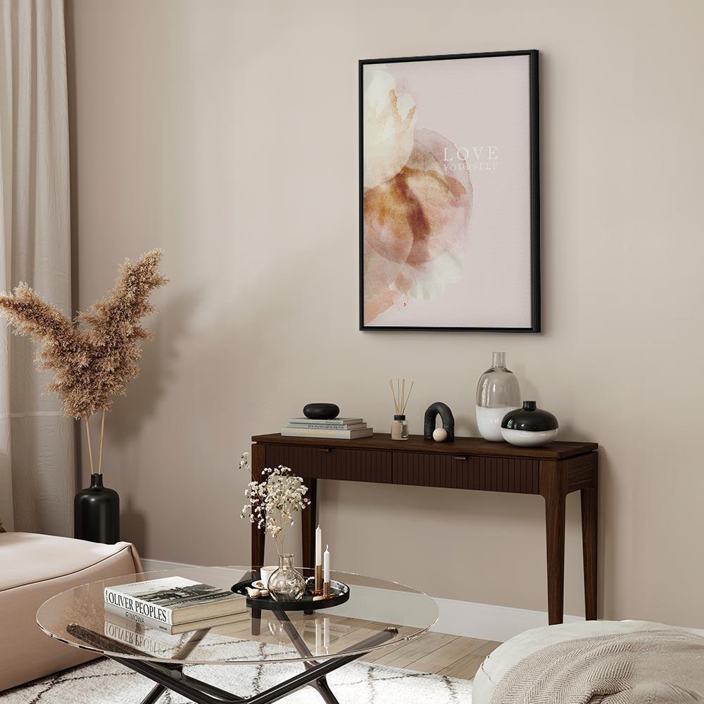 Unsere Bilder sind sicher und geruchsneutral und eignen sich daher ideal für Kinderzimmer. Die Größe wird Ihr Kind sicher beeindrucken! Bilder für Schlafzimmer sind ein echter Blickfang, genauso wie Bilder Wohnzimmer. Dekorieren Sie die Wände in Ihrem privaten Bereich mit einem Bild "Leinwandbild - Love Yourself (1 Part) Vertical". Wir empfehlen Bilder für Schlafzimmer , die Sie beruhigen und in eine erholsame Stimmung versetzen. Bilder aus unserer Kollektion werden Ihrem Interieur eine außergewöhnliche Atmosphäre verleihen. Unabhängig vom Raum schaffen auch Kunst Bilder eine gemütliche Atmosphäre für die Gäste. Massive Holzrahmen unterstreichen den einzigartigen Charakter der Schlafzimmerbilder, und ein schneller und sicherer Versand ist ein weiterer Vorteil, der für diese Wanddekorationen spricht Leinwandbilder sind in fünf Varianten erhältlich, sodass jeder Kunde die perfekte Option für seine Bedürfnisse findet.Die Variante auf Strukturleinwand (Standard) ist eine universelle Dekoration, die das Haushaltsbudget nicht belastet.Für Liebhaber edler Materialien ist ein Druck auf italienischer Leinwand aus 100 % Baumwolle die ideale Wahl.Und für Fans der Malerei? Hier überzeugt die außergewöhnliche Premium-Print-Technik – ein Bild, das auf Strukturleinwand gedruckt und von Hand mit einer Schicht transparenten Gels überzogen wird, die die Pinselstriche eines Künstlers imitiert – ein „wie gemalt“-Effekt, aber zu einem günstigeren Preis.Die Variante im soliden Holzrahmen des Typs American Box mit Tiefeneffekt (zwei Rahmenfarben zur Auswahl, Motiv auf Strukturleinwand gedruckt) bietet eine klassische Lösung in neuer Form.Das Akustikbild (Druck auf Strukturleinwand mit einer zusätzlichen Schicht schallabsorbierendem Schaumstoff) ist dagegen ein Volltreffer für alle, die Ästhetik mit Funktionalität verbinden möchten.Zwar sind die beiden letzten Optionen nur für bestimmte Größen von einteiligen Bildern verfügbar, doch bei allen Varianten legen wir GRATIS die erforderliche Anzahl an Haken und Nägeln zur Montage bei.