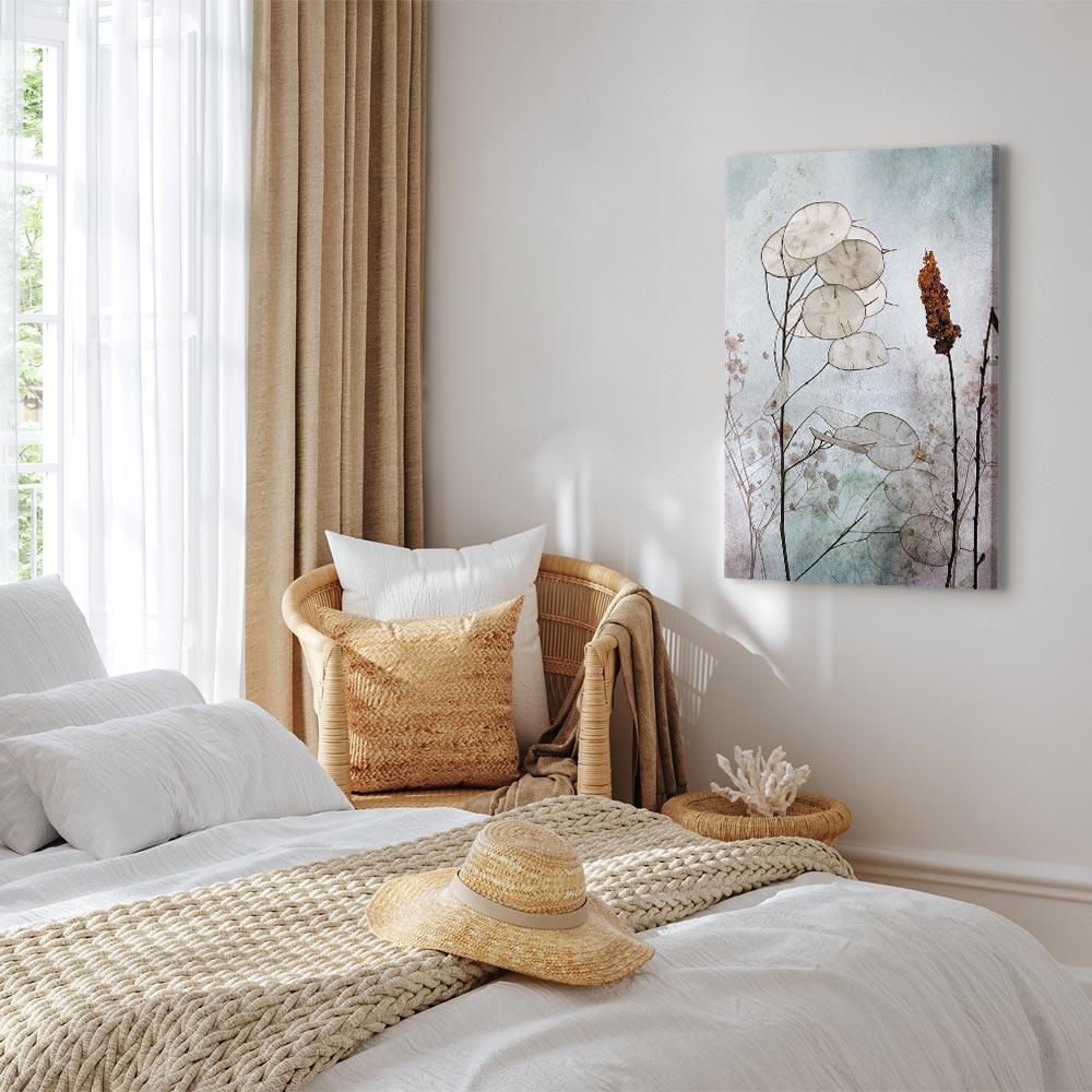 Unsere Bilder sind sicher und geruchsneutral und eignen sich daher ideal für Kinderzimmer. Die Größe wird Ihr Kind sicher beeindrucken! Bilder für Schlafzimmer sind ein echter Blickfang, genauso wie Bilder Wohnzimmer. Dekorieren Sie die Wände in Ihrem privaten Bereich mit einem Bild "Leinwandbild - Lunaria Fruits (1 Part) Vertical". Wir empfehlen Bilder für Schlafzimmer , die Sie beruhigen und in eine erholsame Stimmung versetzen. Bilder aus unserer Kollektion werden Ihrem Interieur eine außergewöhnliche Atmosphäre verleihen. Unabhängig vom Raum schaffen auch Kunst Bilder eine gemütliche Atmosphäre für die Gäste. Massive Holzrahmen unterstreichen den einzigartigen Charakter der Schlafzimmerbilder, und ein schneller und sicherer Versand ist ein weiterer Vorteil, der für diese Wanddekorationen spricht Leinwandbilder sind in fünf Varianten erhältlich, sodass jeder Kunde die perfekte Option für seine Bedürfnisse findet.Die Variante auf Strukturleinwand (Standard) ist eine universelle Dekoration, die das Haushaltsbudget nicht belastet.Für Liebhaber edler Materialien ist ein Druck auf italienischer Leinwand aus 100 % Baumwolle die ideale Wahl.Und für Fans der Malerei? Hier überzeugt die außergewöhnliche Premium-Print-Technik – ein Bild, das auf Strukturleinwand gedruckt und von Hand mit einer Schicht transparenten Gels überzogen wird, die die Pinselstriche eines Künstlers imitiert – ein „wie gemalt“-Effekt, aber zu einem günstigeren Preis.Die Variante im soliden Holzrahmen des Typs American Box mit Tiefeneffekt (zwei Rahmenfarben zur Auswahl, Motiv auf Strukturleinwand gedruckt) bietet eine klassische Lösung in neuer Form.Das Akustikbild (Druck auf Strukturleinwand mit einer zusätzlichen Schicht schallabsorbierendem Schaumstoff) ist dagegen ein Volltreffer für alle, die Ästhetik mit Funktionalität verbinden möchten.Zwar sind die beiden letzten Optionen nur für bestimmte Größen von einteiligen Bildern verfügbar, doch bei allen Varianten legen wir GRATIS die erforderliche Anzahl an Haken und Nägeln zur Montage bei.
