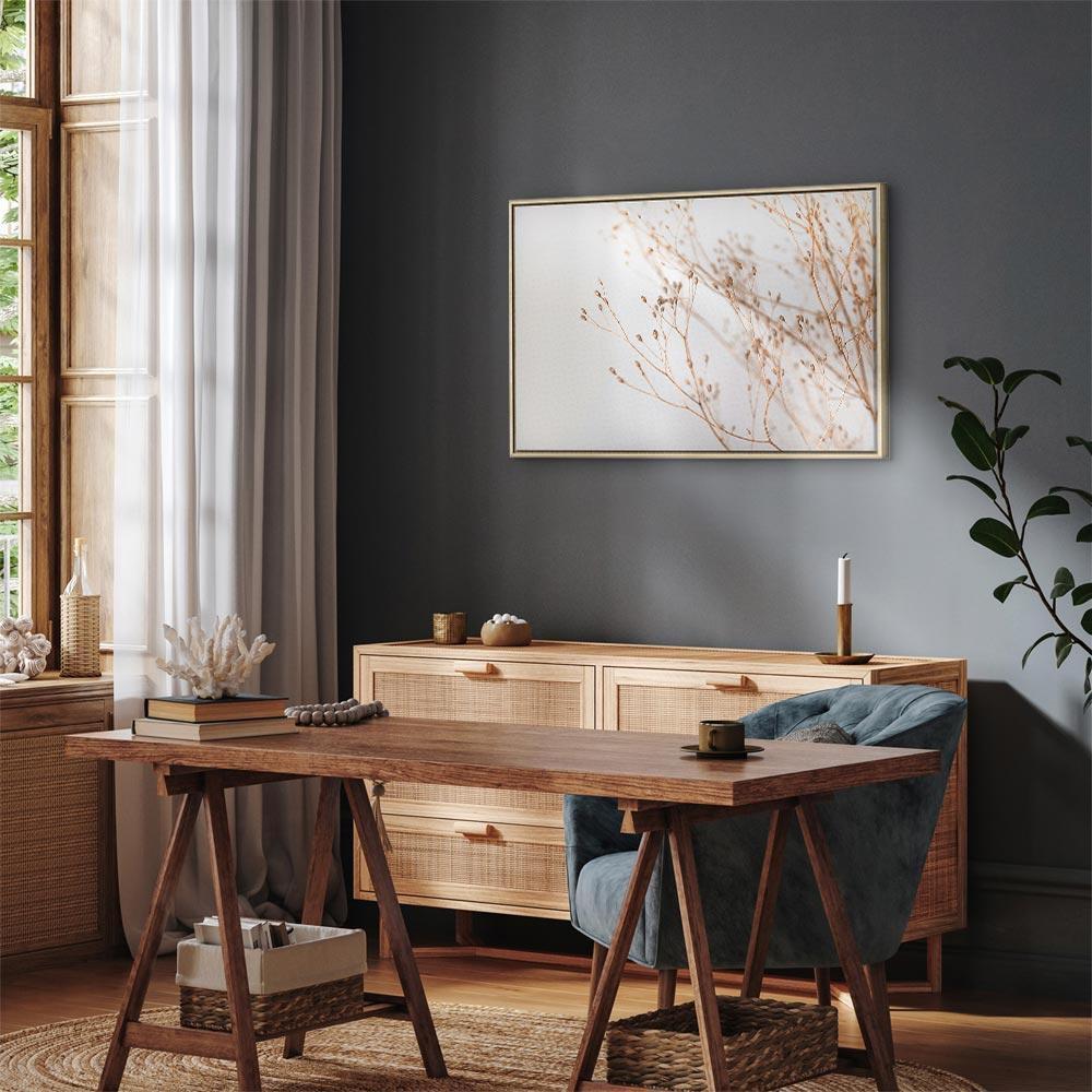 Unsere Bilder sind sicher und geruchsneutral und eignen sich daher ideal für Kinderzimmer. Die Größe wird Ihr Kind sicher beeindrucken! Bilder für Schlafzimmer sind ein echter Blickfang, genauso wie Bilder Wohnzimmer. Dekorieren Sie die Wände in Ihrem privaten Bereich mit einem Bild "Leinwandbild - Minimalist Twig (1 Part) Wide". Wir empfehlen Bilder für Schlafzimmer , die Sie beruhigen und in eine erholsame Stimmung versetzen. Bilder aus unserer Kollektion werden Ihrem Interieur eine außergewöhnliche Atmosphäre verleihen. Unabhängig vom Raum schaffen auch Kunst Bilder eine gemütliche Atmosphäre für die Gäste. Massive Holzrahmen unterstreichen den einzigartigen Charakter der Schlafzimmerbilder, und ein schneller und sicherer Versand ist ein weiterer Vorteil, der für diese Wanddekorationen spricht Leinwandbilder sind in fünf Varianten erhältlich, sodass jeder Kunde die perfekte Option für seine Bedürfnisse findet.Die Variante auf Strukturleinwand (Standard) ist eine universelle Dekoration, die das Haushaltsbudget nicht belastet.Für Liebhaber edler Materialien ist ein Druck auf italienischer Leinwand aus 100 % Baumwolle die ideale Wahl.Und für Fans der Malerei? Hier überzeugt die außergewöhnliche Premium-Print-Technik – ein Bild, das auf Strukturleinwand gedruckt und von Hand mit einer Schicht transparenten Gels überzogen wird, die die Pinselstriche eines Künstlers imitiert – ein „wie gemalt“-Effekt, aber zu einem günstigeren Preis.Die Variante im soliden Holzrahmen des Typs American Box mit Tiefeneffekt (zwei Rahmenfarben zur Auswahl, Motiv auf Strukturleinwand gedruckt) bietet eine klassische Lösung in neuer Form.Das Akustikbild (Druck auf Strukturleinwand mit einer zusätzlichen Schicht schallabsorbierendem Schaumstoff) ist dagegen ein Volltreffer für alle, die Ästhetik mit Funktionalität verbinden möchten.Zwar sind die beiden letzten Optionen nur für bestimmte Größen von einteiligen Bildern verfügbar, doch bei allen Varianten legen wir GRATIS die erforderliche Anzahl an Haken und Nägeln zur Montage bei.