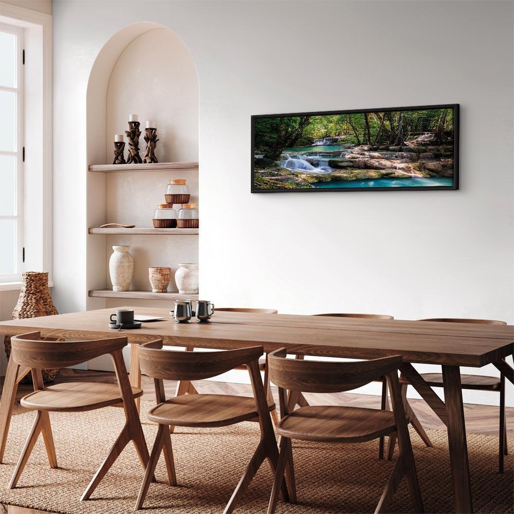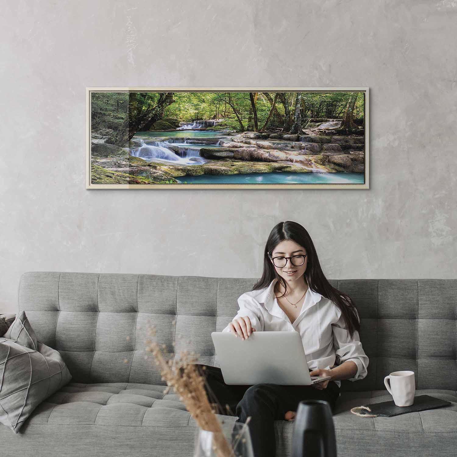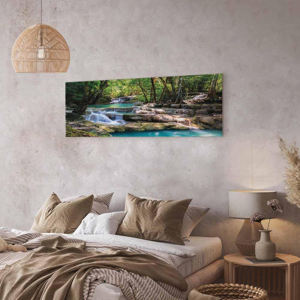 Unsere Bilder sind sicher und geruchsneutral und eignen sich daher ideal für Kinderzimmer. Die Größe wird Ihr Kind sicher beeindrucken! Bilder für Schlafzimmer sind ein echter Blickfang, genauso wie Bilder Wohnzimmer. Dekorieren Sie die Wände in Ihrem privaten Bereich mit einem Bild "Leinwandbild - Nature: Forest Waterfall". Wir empfehlen Bilder für Schlafzimmer , die Sie beruhigen und in eine erholsame Stimmung versetzen. Bilder aus unserer Kollektion werden Ihrem Interieur eine außergewöhnliche Atmosphäre verleihen. Unabhängig vom Raum schaffen auch Kunst Bilder eine gemütliche Atmosphäre für die Gäste. Massive Holzrahmen unterstreichen den einzigartigen Charakter der Schlafzimmerbilder, und ein schneller und sicherer Versand ist ein weiterer Vorteil, der für diese Wanddekorationen spricht Leinwandbilder sind in fünf Varianten erhältlich, sodass jeder Kunde die perfekte Option für seine Bedürfnisse findet.Die Variante auf Strukturleinwand (Standard) ist eine universelle Dekoration, die das Haushaltsbudget nicht belastet.Für Liebhaber edler Materialien ist ein Druck auf italienischer Leinwand aus 100 % Baumwolle die ideale Wahl.Und für Fans der Malerei? Hier überzeugt die außergewöhnliche Premium-Print-Technik – ein Bild, das auf Strukturleinwand gedruckt und von Hand mit einer Schicht transparenten Gels überzogen wird, die die Pinselstriche eines Künstlers imitiert – ein „wie gemalt“-Effekt, aber zu einem günstigeren Preis.Die Variante im soliden Holzrahmen des Typs American Box mit Tiefeneffekt (zwei Rahmenfarben zur Auswahl, Motiv auf Strukturleinwand gedruckt) bietet eine klassische Lösung in neuer Form.Das Akustikbild (Druck auf Strukturleinwand mit einer zusätzlichen Schicht schallabsorbierendem Schaumstoff) ist dagegen ein Volltreffer für alle, die Ästhetik mit Funktionalität verbinden möchten.Zwar sind die beiden letzten Optionen nur für bestimmte Größen von einteiligen Bildern verfügbar, doch bei allen Varianten legen wir GRATIS die erforderliche Anzahl an Haken und Nägeln zur Montage bei.