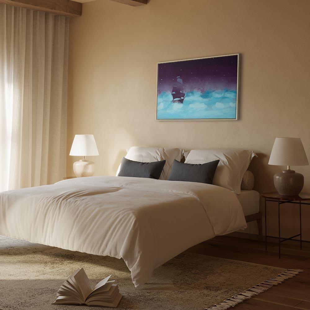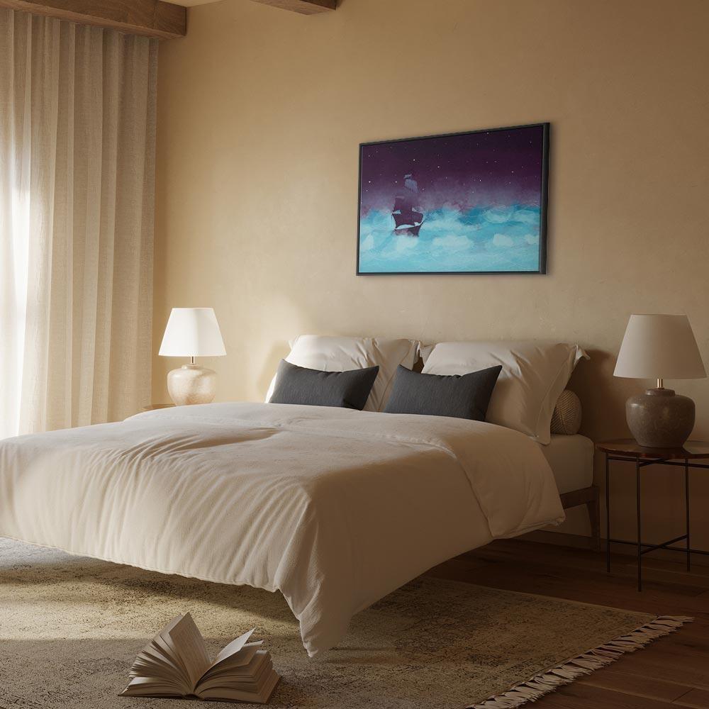 Unsere Bilder sind sicher und geruchsneutral und eignen sich daher ideal für Kinderzimmer. Die Größe wird Ihr Kind sicher beeindrucken! Bilder für Schlafzimmer sind ein echter Blickfang, genauso wie Bilder Wohnzimmer. Dekorieren Sie die Wände in Ihrem privaten Bereich mit einem Bild "Leinwandbild - Night Waves (1 Part) Wide - Third Variant". Wir empfehlen Bilder für Schlafzimmer , die Sie beruhigen und in eine erholsame Stimmung versetzen. Bilder aus unserer Kollektion werden Ihrem Interieur eine außergewöhnliche Atmosphäre verleihen. Unabhängig vom Raum schaffen auch Kunst Bilder eine gemütliche Atmosphäre für die Gäste. Massive Holzrahmen unterstreichen den einzigartigen Charakter der Schlafzimmerbilder, und ein schneller und sicherer Versand ist ein weiterer Vorteil, der für diese Wanddekorationen spricht Leinwandbilder sind in fünf Varianten erhältlich, sodass jeder Kunde die perfekte Option für seine Bedürfnisse findet.Die Variante auf Strukturleinwand (Standard) ist eine universelle Dekoration, die das Haushaltsbudget nicht belastet.Für Liebhaber edler Materialien ist ein Druck auf italienischer Leinwand aus 100 % Baumwolle die ideale Wahl.Und für Fans der Malerei? Hier überzeugt die außergewöhnliche Premium-Print-Technik – ein Bild, das auf Strukturleinwand gedruckt und von Hand mit einer Schicht transparenten Gels überzogen wird, die die Pinselstriche eines Künstlers imitiert – ein „wie gemalt“-Effekt, aber zu einem günstigeren Preis.Die Variante im soliden Holzrahmen des Typs American Box mit Tiefeneffekt (zwei Rahmenfarben zur Auswahl, Motiv auf Strukturleinwand gedruckt) bietet eine klassische Lösung in neuer Form.Das Akustikbild (Druck auf Strukturleinwand mit einer zusätzlichen Schicht schallabsorbierendem Schaumstoff) ist dagegen ein Volltreffer für alle, die Ästhetik mit Funktionalität verbinden möchten.Zwar sind die beiden letzten Optionen nur für bestimmte Größen von einteiligen Bildern verfügbar, doch bei allen Varianten legen wir GRATIS die erforderliche Anzahl an Haken und Nägeln zur Montage bei.