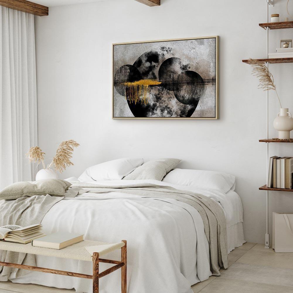 Unsere Bilder sind sicher und geruchsneutral und eignen sich daher ideal für Kinderzimmer. Die Größe wird Ihr Kind sicher beeindrucken! Bilder für Schlafzimmer sind ein echter Blickfang, genauso wie Bilder Wohnzimmer. Dekorieren Sie die Wände in Ihrem privaten Bereich mit einem Bild "Leinwandbild - Noble Moon (1 Part) Wide". Wir empfehlen Bilder für Schlafzimmer , die Sie beruhigen und in eine erholsame Stimmung versetzen. Bilder aus unserer Kollektion werden Ihrem Interieur eine außergewöhnliche Atmosphäre verleihen. Unabhängig vom Raum schaffen auch Kunst Bilder eine gemütliche Atmosphäre für die Gäste. Massive Holzrahmen unterstreichen den einzigartigen Charakter der Schlafzimmerbilder, und ein schneller und sicherer Versand ist ein weiterer Vorteil, der für diese Wanddekorationen spricht Leinwandbilder sind in fünf Varianten erhältlich, sodass jeder Kunde die perfekte Option für seine Bedürfnisse findet.Die Variante auf Strukturleinwand (Standard) ist eine universelle Dekoration, die das Haushaltsbudget nicht belastet.Für Liebhaber edler Materialien ist ein Druck auf italienischer Leinwand aus 100 % Baumwolle die ideale Wahl.Und für Fans der Malerei? Hier überzeugt die außergewöhnliche Premium-Print-Technik – ein Bild, das auf Strukturleinwand gedruckt und von Hand mit einer Schicht transparenten Gels überzogen wird, die die Pinselstriche eines Künstlers imitiert – ein „wie gemalt“-Effekt, aber zu einem günstigeren Preis.Die Variante im soliden Holzrahmen des Typs American Box mit Tiefeneffekt (zwei Rahmenfarben zur Auswahl, Motiv auf Strukturleinwand gedruckt) bietet eine klassische Lösung in neuer Form.Das Akustikbild (Druck auf Strukturleinwand mit einer zusätzlichen Schicht schallabsorbierendem Schaumstoff) ist dagegen ein Volltreffer für alle, die Ästhetik mit Funktionalität verbinden möchten.Zwar sind die beiden letzten Optionen nur für bestimmte Größen von einteiligen Bildern verfügbar, doch bei allen Varianten legen wir GRATIS die erforderliche Anzahl an Haken und Nägeln zur Montage bei.