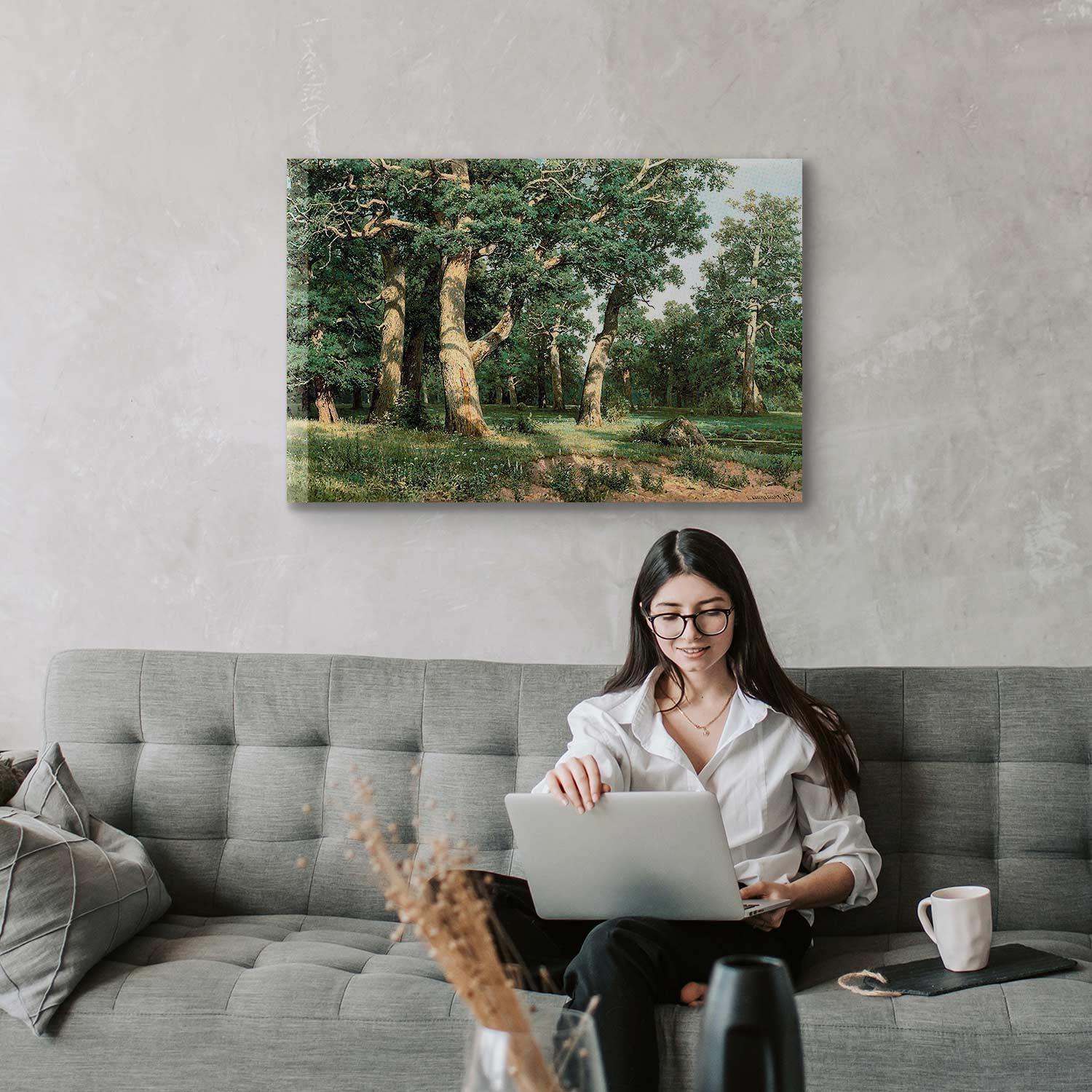Unsere Bilder sind sicher und geruchsneutral und eignen sich daher ideal für Kinderzimmer. Die Größe wird Ihr Kind sicher beeindrucken! Bilder für Schlafzimmer sind ein echter Blickfang, genauso wie Bilder Wohnzimmer. Dekorieren Sie die Wände in Ihrem privaten Bereich mit einem Bild "Leinwandbild - Ivan Shishkin – Oak Forest". Wir empfehlen Bilder für Schlafzimmer , die Sie beruhigen und in eine erholsame Stimmung versetzen. Bilder aus unserer Kollektion werden Ihrem Interieur eine außergewöhnliche Atmosphäre verleihen. Unabhängig vom Raum schaffen auch Kunst Bilder eine gemütliche Atmosphäre für die Gäste. Massive Holzrahmen unterstreichen den einzigartigen Charakter der Schlafzimmerbilder, und ein schneller und sicherer Versand ist ein weiterer Vorteil, der für diese Wanddekorationen spricht Leinwandbilder sind in fünf Varianten erhältlich, sodass jeder Kunde die perfekte Option für seine Bedürfnisse findet.Die Variante auf Strukturleinwand (Standard) ist eine universelle Dekoration, die das Haushaltsbudget nicht belastet.Für Liebhaber edler Materialien ist ein Druck auf italienischer Leinwand aus 100 % Baumwolle die ideale Wahl.Und für Fans der Malerei? Hier überzeugt die außergewöhnliche Premium-Print-Technik – ein Bild, das auf Strukturleinwand gedruckt und von Hand mit einer Schicht transparenten Gels überzogen wird, die die Pinselstriche eines Künstlers imitiert – ein „wie gemalt“-Effekt, aber zu einem günstigeren Preis.Die Variante im soliden Holzrahmen des Typs American Box mit Tiefeneffekt (zwei Rahmenfarben zur Auswahl, Motiv auf Strukturleinwand gedruckt) bietet eine klassische Lösung in neuer Form.Das Akustikbild (Druck auf Strukturleinwand mit einer zusätzlichen Schicht schallabsorbierendem Schaumstoff) ist dagegen ein Volltreffer für alle, die Ästhetik mit Funktionalität verbinden möchten.Zwar sind die beiden letzten Optionen nur für bestimmte Größen von einteiligen Bildern verfügbar, doch bei allen Varianten legen wir GRATIS die erforderliche Anzahl an Haken und Nägeln zur Montage bei.