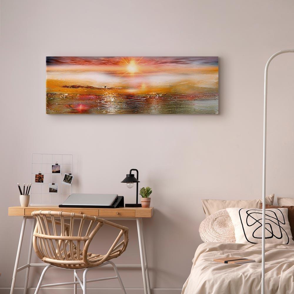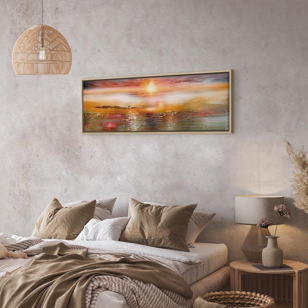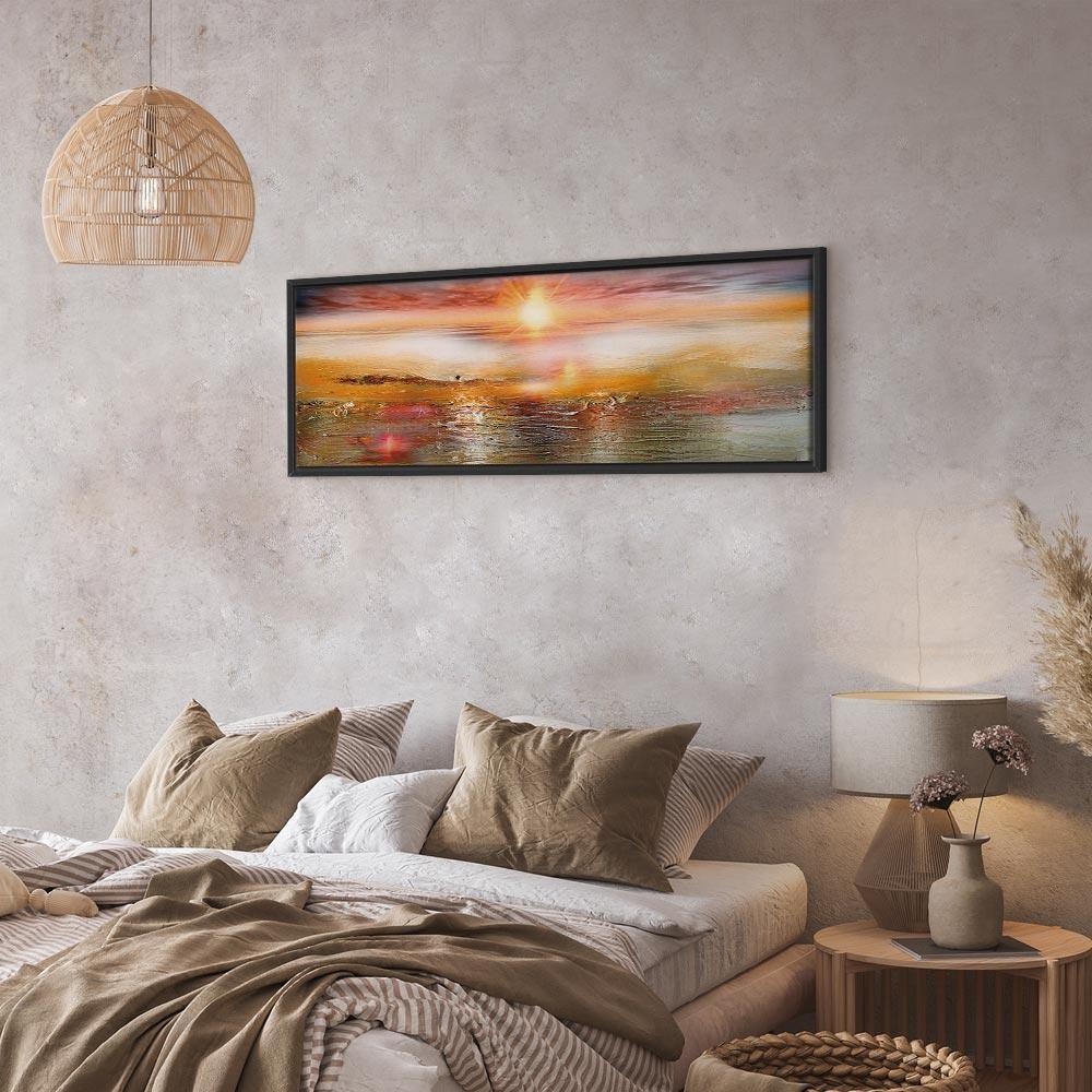 Unsere Bilder sind sicher und geruchsneutral und eignen sich daher ideal für Kinderzimmer. Die Größe wird Ihr Kind sicher beeindrucken! Bilder für Schlafzimmer sind ein echter Blickfang, genauso wie Bilder Wohnzimmer. Dekorieren Sie die Wände in Ihrem privaten Bereich mit einem Bild "Leinwandbild - Orange Sea". Wir empfehlen Bilder für Schlafzimmer , die Sie beruhigen und in eine erholsame Stimmung versetzen. Bilder aus unserer Kollektion werden Ihrem Interieur eine außergewöhnliche Atmosphäre verleihen. Unabhängig vom Raum schaffen auch Kunst Bilder eine gemütliche Atmosphäre für die Gäste. Massive Holzrahmen unterstreichen den einzigartigen Charakter der Schlafzimmerbilder, und ein schneller und sicherer Versand ist ein weiterer Vorteil, der für diese Wanddekorationen spricht Leinwandbilder sind in fünf Varianten erhältlich, sodass jeder Kunde die perfekte Option für seine Bedürfnisse findet.Die Variante auf Strukturleinwand (Standard) ist eine universelle Dekoration, die das Haushaltsbudget nicht belastet.Für Liebhaber edler Materialien ist ein Druck auf italienischer Leinwand aus 100 % Baumwolle die ideale Wahl.Und für Fans der Malerei? Hier überzeugt die außergewöhnliche Premium-Print-Technik – ein Bild, das auf Strukturleinwand gedruckt und von Hand mit einer Schicht transparenten Gels überzogen wird, die die Pinselstriche eines Künstlers imitiert – ein „wie gemalt“-Effekt, aber zu einem günstigeren Preis.Die Variante im soliden Holzrahmen des Typs American Box mit Tiefeneffekt (zwei Rahmenfarben zur Auswahl, Motiv auf Strukturleinwand gedruckt) bietet eine klassische Lösung in neuer Form.Das Akustikbild (Druck auf Strukturleinwand mit einer zusätzlichen Schicht schallabsorbierendem Schaumstoff) ist dagegen ein Volltreffer für alle, die Ästhetik mit Funktionalität verbinden möchten.Zwar sind die beiden letzten Optionen nur für bestimmte Größen von einteiligen Bildern verfügbar, doch bei allen Varianten legen wir GRATIS die erforderliche Anzahl an Haken und Nägeln zur Montage bei.