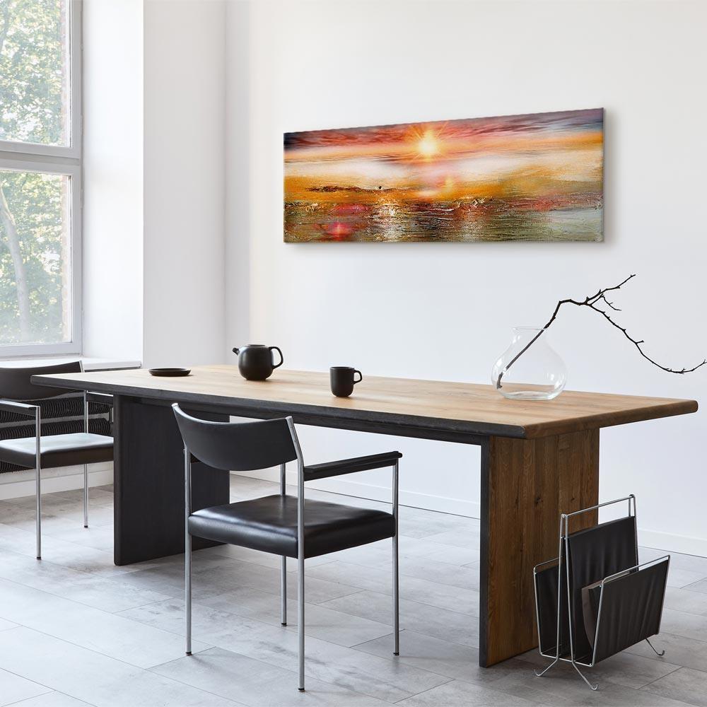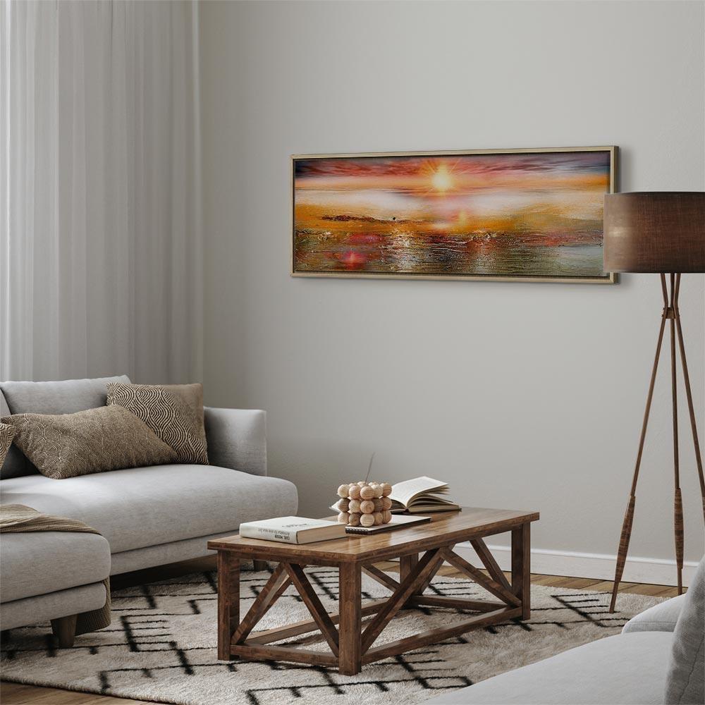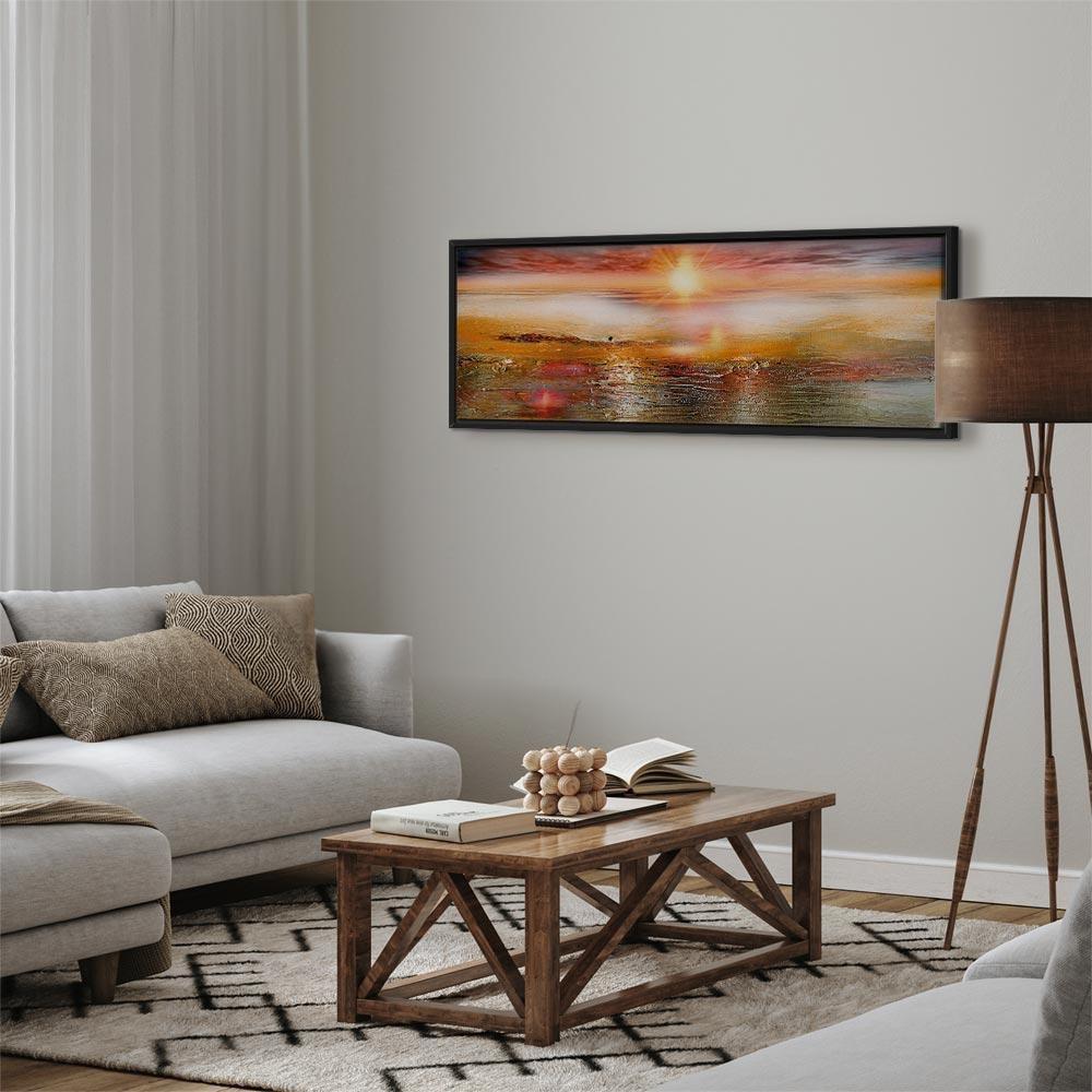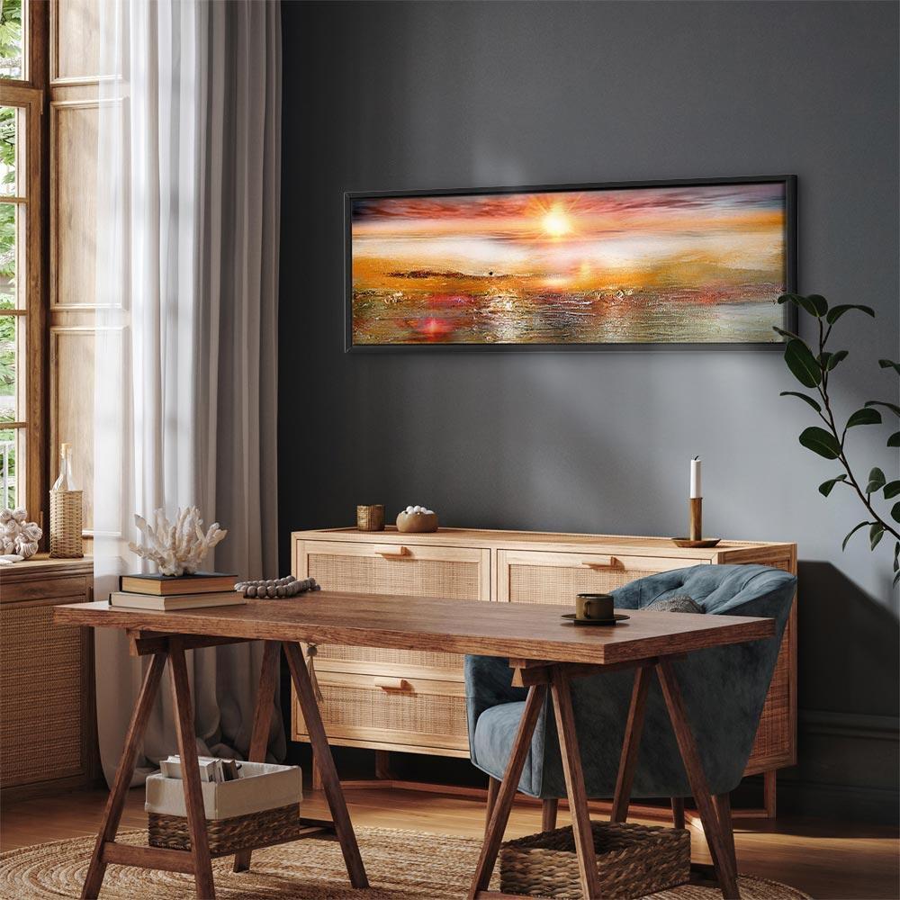 Unsere Bilder sind sicher und geruchsneutral und eignen sich daher ideal für Kinderzimmer. Die Größe wird Ihr Kind sicher beeindrucken! Bilder für Schlafzimmer sind ein echter Blickfang, genauso wie Bilder Wohnzimmer. Dekorieren Sie die Wände in Ihrem privaten Bereich mit einem Bild "Leinwandbild - Orange Sea". Wir empfehlen Bilder für Schlafzimmer , die Sie beruhigen und in eine erholsame Stimmung versetzen. Bilder aus unserer Kollektion werden Ihrem Interieur eine außergewöhnliche Atmosphäre verleihen. Unabhängig vom Raum schaffen auch Kunst Bilder eine gemütliche Atmosphäre für die Gäste. Massive Holzrahmen unterstreichen den einzigartigen Charakter der Schlafzimmerbilder, und ein schneller und sicherer Versand ist ein weiterer Vorteil, der für diese Wanddekorationen spricht Leinwandbilder sind in fünf Varianten erhältlich, sodass jeder Kunde die perfekte Option für seine Bedürfnisse findet.Die Variante auf Strukturleinwand (Standard) ist eine universelle Dekoration, die das Haushaltsbudget nicht belastet.Für Liebhaber edler Materialien ist ein Druck auf italienischer Leinwand aus 100 % Baumwolle die ideale Wahl.Und für Fans der Malerei? Hier überzeugt die außergewöhnliche Premium-Print-Technik – ein Bild, das auf Strukturleinwand gedruckt und von Hand mit einer Schicht transparenten Gels überzogen wird, die die Pinselstriche eines Künstlers imitiert – ein „wie gemalt“-Effekt, aber zu einem günstigeren Preis.Die Variante im soliden Holzrahmen des Typs American Box mit Tiefeneffekt (zwei Rahmenfarben zur Auswahl, Motiv auf Strukturleinwand gedruckt) bietet eine klassische Lösung in neuer Form.Das Akustikbild (Druck auf Strukturleinwand mit einer zusätzlichen Schicht schallabsorbierendem Schaumstoff) ist dagegen ein Volltreffer für alle, die Ästhetik mit Funktionalität verbinden möchten.Zwar sind die beiden letzten Optionen nur für bestimmte Größen von einteiligen Bildern verfügbar, doch bei allen Varianten legen wir GRATIS die erforderliche Anzahl an Haken und Nägeln zur Montage bei.