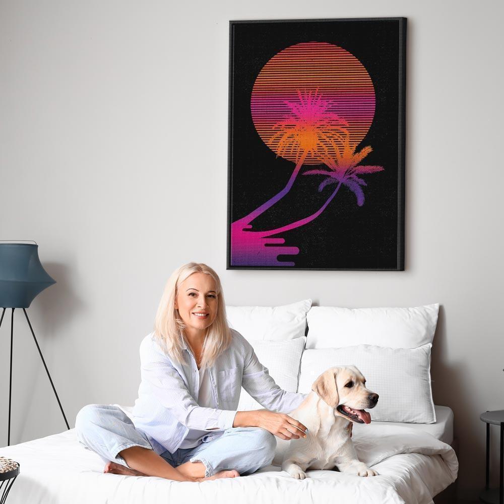 Unsere Bilder sind sicher und geruchsneutral und eignen sich daher ideal für Kinderzimmer. Die Größe wird Ihr Kind sicher beeindrucken! Bilder für Schlafzimmer sind ein echter Blickfang, genauso wie Bilder Wohnzimmer. Dekorieren Sie die Wände in Ihrem privaten Bereich mit einem Bild "Leinwandbild - Palm at Sunrise (1 Part) Vertical". Wir empfehlen Bilder für Schlafzimmer , die Sie beruhigen und in eine erholsame Stimmung versetzen. Bilder aus unserer Kollektion werden Ihrem Interieur eine außergewöhnliche Atmosphäre verleihen. Unabhängig vom Raum schaffen auch Kunst Bilder eine gemütliche Atmosphäre für die Gäste. Massive Holzrahmen unterstreichen den einzigartigen Charakter der Schlafzimmerbilder, und ein schneller und sicherer Versand ist ein weiterer Vorteil, der für diese Wanddekorationen spricht Leinwandbilder sind in fünf Varianten erhältlich, sodass jeder Kunde die perfekte Option für seine Bedürfnisse findet.Die Variante auf Strukturleinwand (Standard) ist eine universelle Dekoration, die das Haushaltsbudget nicht belastet.Für Liebhaber edler Materialien ist ein Druck auf italienischer Leinwand aus 100 % Baumwolle die ideale Wahl.Und für Fans der Malerei? Hier überzeugt die außergewöhnliche Premium-Print-Technik – ein Bild, das auf Strukturleinwand gedruckt und von Hand mit einer Schicht transparenten Gels überzogen wird, die die Pinselstriche eines Künstlers imitiert – ein „wie gemalt“-Effekt, aber zu einem günstigeren Preis.Die Variante im soliden Holzrahmen des Typs American Box mit Tiefeneffekt (zwei Rahmenfarben zur Auswahl, Motiv auf Strukturleinwand gedruckt) bietet eine klassische Lösung in neuer Form.Das Akustikbild (Druck auf Strukturleinwand mit einer zusätzlichen Schicht schallabsorbierendem Schaumstoff) ist dagegen ein Volltreffer für alle, die Ästhetik mit Funktionalität verbinden möchten.Zwar sind die beiden letzten Optionen nur für bestimmte Größen von einteiligen Bildern verfügbar, doch bei allen Varianten legen wir GRATIS die erforderliche Anzahl an Haken und Nägeln zur Montage bei.