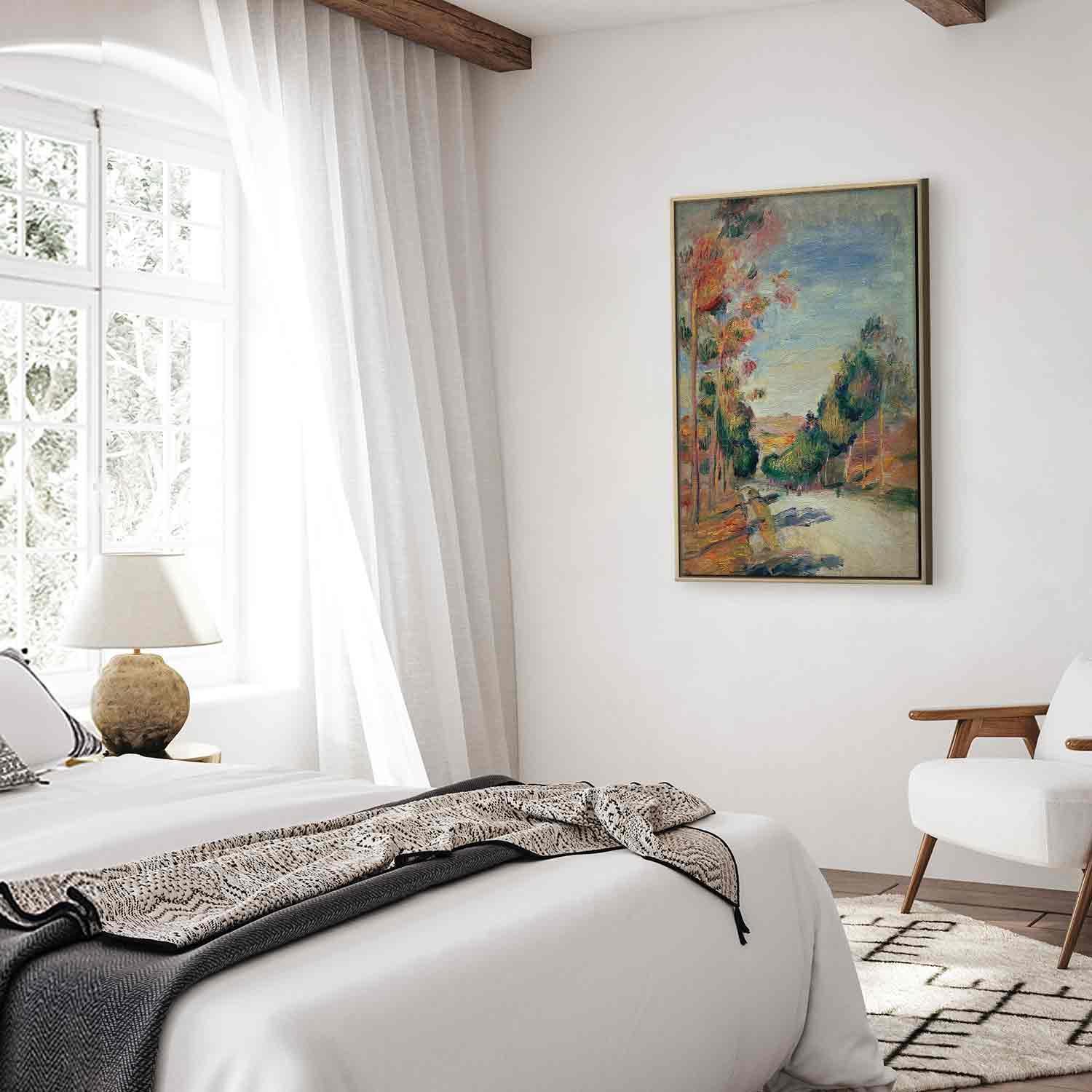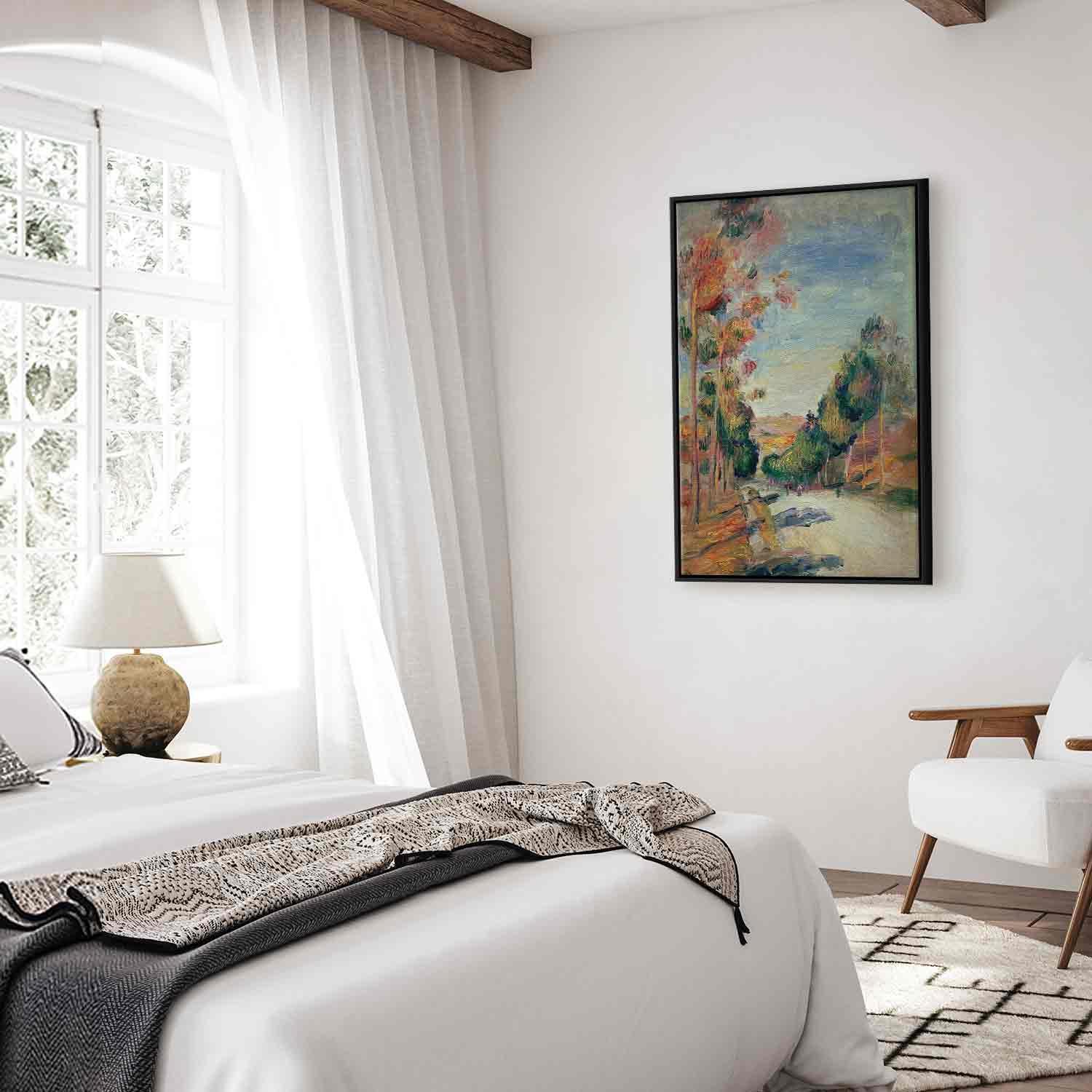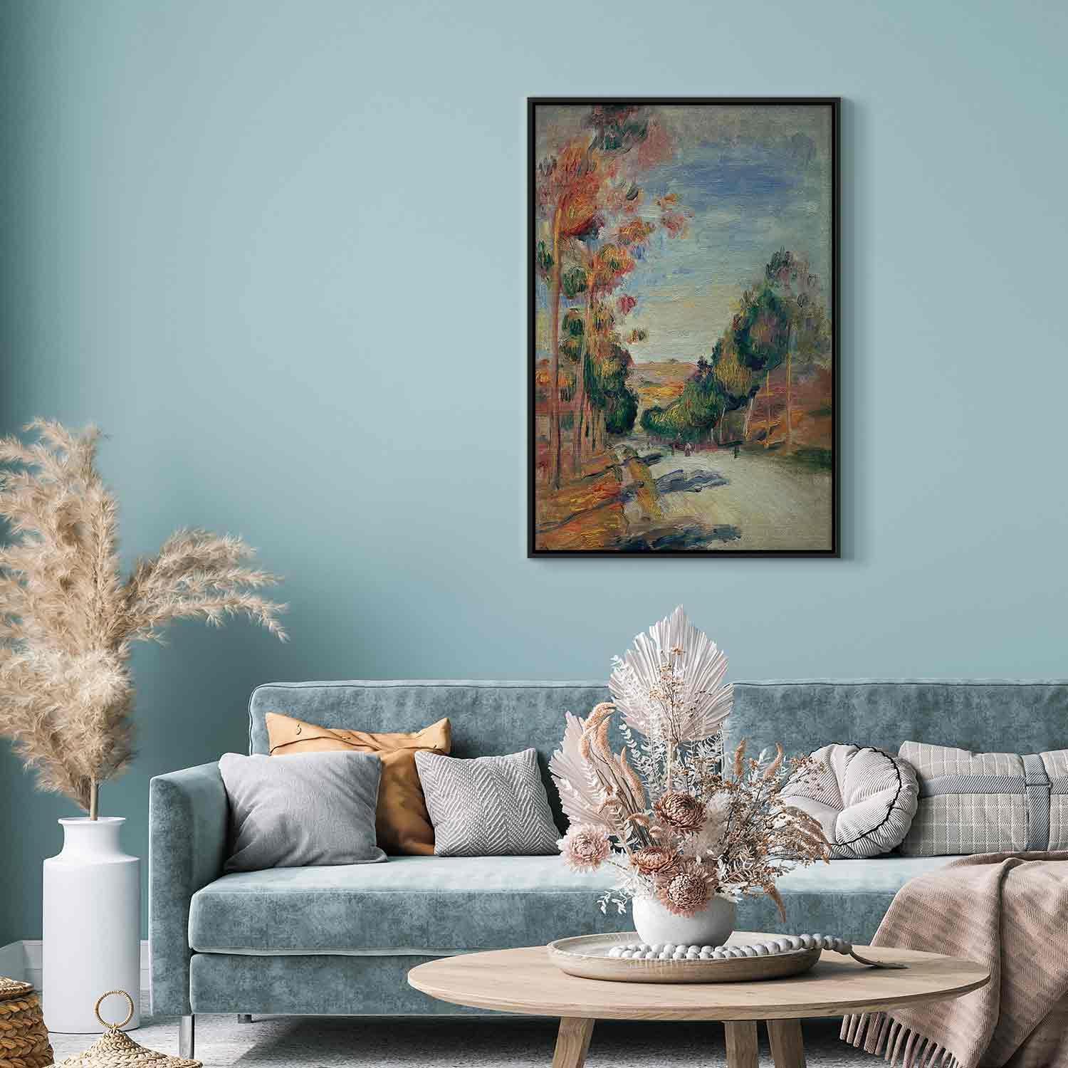 Unsere Bilder sind sicher und geruchsneutral und eignen sich daher ideal für Kinderzimmer. Die Größe wird Ihr Kind sicher beeindrucken! Bilder für Schlafzimmer sind ein echter Blickfang, genauso wie Bilder Wohnzimmer. Dekorieren Sie die Wände in Ihrem privaten Bereich mit einem Bild "Leinwandbild - Pierre-Auguste Renoir – Paysage d'Essoyes". Wir empfehlen Bilder für Schlafzimmer , die Sie beruhigen und in eine erholsame Stimmung versetzen. Bilder aus unserer Kollektion werden Ihrem Interieur eine außergewöhnliche Atmosphäre verleihen. Unabhängig vom Raum schaffen auch Kunst Bilder eine gemütliche Atmosphäre für die Gäste. Massive Holzrahmen unterstreichen den einzigartigen Charakter der Schlafzimmerbilder, und ein schneller und sicherer Versand ist ein weiterer Vorteil, der für diese Wanddekorationen spricht Leinwandbilder sind in fünf Varianten erhältlich, sodass jeder Kunde die perfekte Option für seine Bedürfnisse findet.Die Variante auf Strukturleinwand (Standard) ist eine universelle Dekoration, die das Haushaltsbudget nicht belastet.Für Liebhaber edler Materialien ist ein Druck auf italienischer Leinwand aus 100 % Baumwolle die ideale Wahl.Und für Fans der Malerei? Hier überzeugt die außergewöhnliche Premium-Print-Technik – ein Bild, das auf Strukturleinwand gedruckt und von Hand mit einer Schicht transparenten Gels überzogen wird, die die Pinselstriche eines Künstlers imitiert – ein „wie gemalt“-Effekt, aber zu einem günstigeren Preis.Die Variante im soliden Holzrahmen des Typs American Box mit Tiefeneffekt (zwei Rahmenfarben zur Auswahl, Motiv auf Strukturleinwand gedruckt) bietet eine klassische Lösung in neuer Form.Das Akustikbild (Druck auf Strukturleinwand mit einer zusätzlichen Schicht schallabsorbierendem Schaumstoff) ist dagegen ein Volltreffer für alle, die Ästhetik mit Funktionalität verbinden möchten.Zwar sind die beiden letzten Optionen nur für bestimmte Größen von einteiligen Bildern verfügbar, doch bei allen Varianten legen wir GRATIS die erforderliche Anzahl an Haken und Nägeln zur Montage bei.