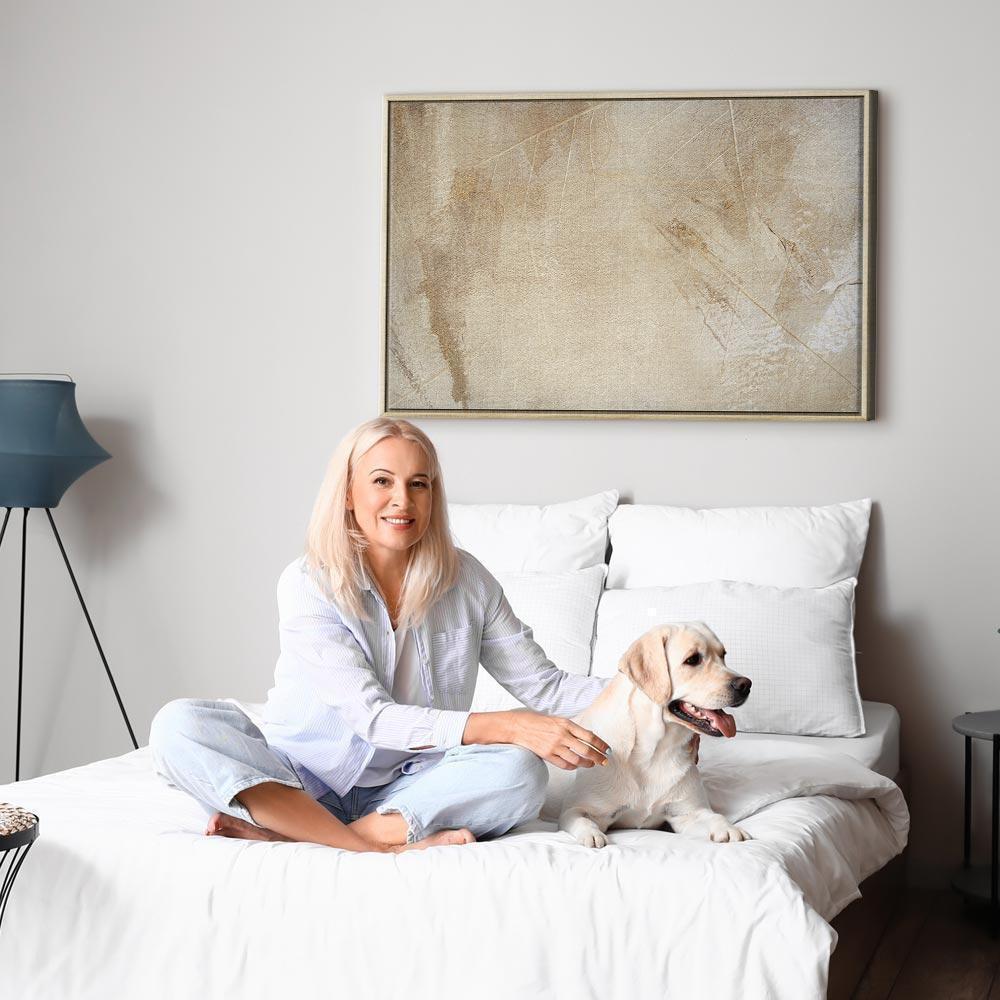 Unsere Bilder sind sicher und geruchsneutral und eignen sich daher ideal für Kinderzimmer. Die Größe wird Ihr Kind sicher beeindrucken! Bilder für Schlafzimmer sind ein echter Blickfang, genauso wie Bilder Wohnzimmer. Dekorieren Sie die Wände in Ihrem privaten Bereich mit einem Bild "Leinwandbild - Peaceful Story (1 Part) Wide". Wir empfehlen Bilder für Schlafzimmer , die Sie beruhigen und in eine erholsame Stimmung versetzen. Bilder aus unserer Kollektion werden Ihrem Interieur eine außergewöhnliche Atmosphäre verleihen. Unabhängig vom Raum schaffen auch Kunst Bilder eine gemütliche Atmosphäre für die Gäste. Massive Holzrahmen unterstreichen den einzigartigen Charakter der Schlafzimmerbilder, und ein schneller und sicherer Versand ist ein weiterer Vorteil, der für diese Wanddekorationen spricht Leinwandbilder sind in fünf Varianten erhältlich, sodass jeder Kunde die perfekte Option für seine Bedürfnisse findet.Die Variante auf Strukturleinwand (Standard) ist eine universelle Dekoration, die das Haushaltsbudget nicht belastet.Für Liebhaber edler Materialien ist ein Druck auf italienischer Leinwand aus 100 % Baumwolle die ideale Wahl.Und für Fans der Malerei? Hier überzeugt die außergewöhnliche Premium-Print-Technik – ein Bild, das auf Strukturleinwand gedruckt und von Hand mit einer Schicht transparenten Gels überzogen wird, die die Pinselstriche eines Künstlers imitiert – ein „wie gemalt“-Effekt, aber zu einem günstigeren Preis.Die Variante im soliden Holzrahmen des Typs American Box mit Tiefeneffekt (zwei Rahmenfarben zur Auswahl, Motiv auf Strukturleinwand gedruckt) bietet eine klassische Lösung in neuer Form.Das Akustikbild (Druck auf Strukturleinwand mit einer zusätzlichen Schicht schallabsorbierendem Schaumstoff) ist dagegen ein Volltreffer für alle, die Ästhetik mit Funktionalität verbinden möchten.Zwar sind die beiden letzten Optionen nur für bestimmte Größen von einteiligen Bildern verfügbar, doch bei allen Varianten legen wir GRATIS die erforderliche Anzahl an Haken und Nägeln zur Montage bei.