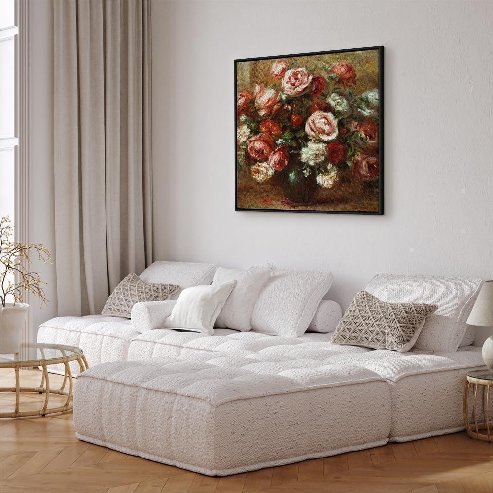 Unsere Bilder sind sicher und geruchsneutral und eignen sich daher ideal für Kinderzimmer. Die Größe wird Ihr Kind sicher beeindrucken! Bilder für Schlafzimmer sind ein echter Blickfang, genauso wie Bilder Wohnzimmer. Dekorieren Sie die Wände in Ihrem privaten Bereich mit einem Bild "Leinwandbild - Pierre-Auguste Renoir – Still Life with Roses". Wir empfehlen Bilder für Schlafzimmer , die Sie beruhigen und in eine erholsame Stimmung versetzen. Bilder aus unserer Kollektion werden Ihrem Interieur eine außergewöhnliche Atmosphäre verleihen. Unabhängig vom Raum schaffen auch Kunst Bilder eine gemütliche Atmosphäre für die Gäste. Massive Holzrahmen unterstreichen den einzigartigen Charakter der Schlafzimmerbilder, und ein schneller und sicherer Versand ist ein weiterer Vorteil, der für diese Wanddekorationen spricht Leinwandbilder sind in fünf Varianten erhältlich, sodass jeder Kunde die perfekte Option für seine Bedürfnisse findet.Die Variante auf Strukturleinwand (Standard) ist eine universelle Dekoration, die das Haushaltsbudget nicht belastet.Für Liebhaber edler Materialien ist ein Druck auf italienischer Leinwand aus 100 % Baumwolle die ideale Wahl.Und für Fans der Malerei? Hier überzeugt die außergewöhnliche Premium-Print-Technik – ein Bild, das auf Strukturleinwand gedruckt und von Hand mit einer Schicht transparenten Gels überzogen wird, die die Pinselstriche eines Künstlers imitiert – ein „wie gemalt“-Effekt, aber zu einem günstigeren Preis.Die Variante im soliden Holzrahmen des Typs American Box mit Tiefeneffekt (zwei Rahmenfarben zur Auswahl, Motiv auf Strukturleinwand gedruckt) bietet eine klassische Lösung in neuer Form.Das Akustikbild (Druck auf Strukturleinwand mit einer zusätzlichen Schicht schallabsorbierendem Schaumstoff) ist dagegen ein Volltreffer für alle, die Ästhetik mit Funktionalität verbinden möchten.Zwar sind die beiden letzten Optionen nur für bestimmte Größen von einteiligen Bildern verfügbar, doch bei allen Varianten legen wir GRATIS die erforderliche Anzahl an Haken und Nägeln zur Montage bei.