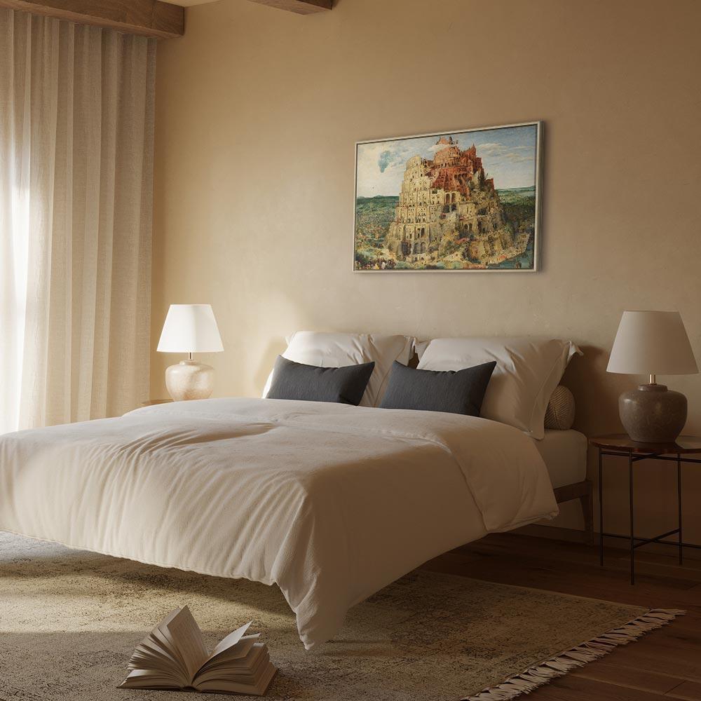 Unsere Bilder sind sicher und geruchsneutral und eignen sich daher ideal für Kinderzimmer. Die Größe wird Ihr Kind sicher beeindrucken! Bilder für Schlafzimmer sind ein echter Blickfang, genauso wie Bilder Wohnzimmer. Dekorieren Sie die Wände in Ihrem privaten Bereich mit einem Bild "Leinwandbild - Pieter Bruegel the Elder – The Tower of Babel". Wir empfehlen Bilder für Schlafzimmer , die Sie beruhigen und in eine erholsame Stimmung versetzen. Bilder aus unserer Kollektion werden Ihrem Interieur eine außergewöhnliche Atmosphäre verleihen. Unabhängig vom Raum schaffen auch Kunst Bilder eine gemütliche Atmosphäre für die Gäste. Massive Holzrahmen unterstreichen den einzigartigen Charakter der Schlafzimmerbilder, und ein schneller und sicherer Versand ist ein weiterer Vorteil, der für diese Wanddekorationen spricht Leinwandbilder sind in fünf Varianten erhältlich, sodass jeder Kunde die perfekte Option für seine Bedürfnisse findet.Die Variante auf Strukturleinwand (Standard) ist eine universelle Dekoration, die das Haushaltsbudget nicht belastet.Für Liebhaber edler Materialien ist ein Druck auf italienischer Leinwand aus 100 % Baumwolle die ideale Wahl.Und für Fans der Malerei? Hier überzeugt die außergewöhnliche Premium-Print-Technik – ein Bild, das auf Strukturleinwand gedruckt und von Hand mit einer Schicht transparenten Gels überzogen wird, die die Pinselstriche eines Künstlers imitiert – ein „wie gemalt“-Effekt, aber zu einem günstigeren Preis.Die Variante im soliden Holzrahmen des Typs American Box mit Tiefeneffekt (zwei Rahmenfarben zur Auswahl, Motiv auf Strukturleinwand gedruckt) bietet eine klassische Lösung in neuer Form.Das Akustikbild (Druck auf Strukturleinwand mit einer zusätzlichen Schicht schallabsorbierendem Schaumstoff) ist dagegen ein Volltreffer für alle, die Ästhetik mit Funktionalität verbinden möchten.Zwar sind die beiden letzten Optionen nur für bestimmte Größen von einteiligen Bildern verfügbar, doch bei allen Varianten legen wir GRATIS die erforderliche Anzahl an Haken und Nägeln zur Montage bei.