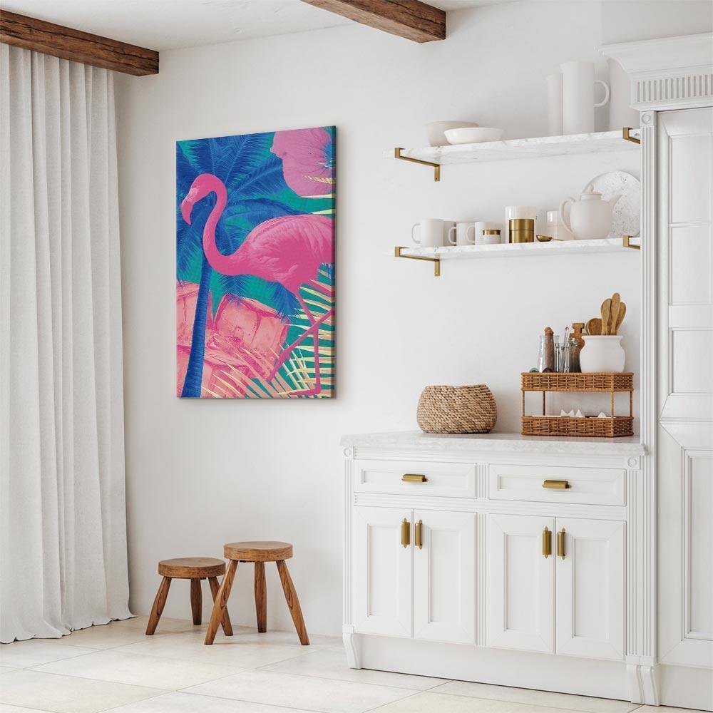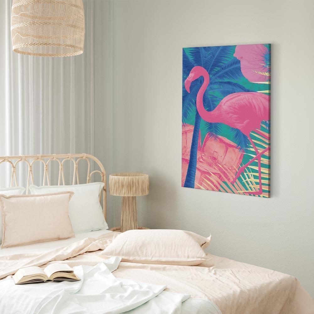 Unsere Bilder sind sicher und geruchsneutral und eignen sich daher ideal für Kinderzimmer. Die Größe wird Ihr Kind sicher beeindrucken! Bilder für Schlafzimmer sind ein echter Blickfang, genauso wie Bilder Wohnzimmer. Dekorieren Sie die Wände in Ihrem privaten Bereich mit einem Bild "Leinwandbild - Pink Flamingo - Abstract Flamingo Against Palms and Ice Cubes". Wir empfehlen Bilder für Schlafzimmer , die Sie beruhigen und in eine erholsame Stimmung versetzen. Bilder aus unserer Kollektion werden Ihrem Interieur eine außergewöhnliche Atmosphäre verleihen. Unabhängig vom Raum schaffen auch Kunst Bilder eine gemütliche Atmosphäre für die Gäste. Massive Holzrahmen unterstreichen den einzigartigen Charakter der Schlafzimmerbilder, und ein schneller und sicherer Versand ist ein weiterer Vorteil, der für diese Wanddekorationen spricht Leinwandbilder sind in fünf Varianten erhältlich, sodass jeder Kunde die perfekte Option für seine Bedürfnisse findet.Die Variante auf Strukturleinwand (Standard) ist eine universelle Dekoration, die das Haushaltsbudget nicht belastet.Für Liebhaber edler Materialien ist ein Druck auf italienischer Leinwand aus 100 % Baumwolle die ideale Wahl.Und für Fans der Malerei? Hier überzeugt die außergewöhnliche Premium-Print-Technik – ein Bild, das auf Strukturleinwand gedruckt und von Hand mit einer Schicht transparenten Gels überzogen wird, die die Pinselstriche eines Künstlers imitiert – ein „wie gemalt“-Effekt, aber zu einem günstigeren Preis.Die Variante im soliden Holzrahmen des Typs American Box mit Tiefeneffekt (zwei Rahmenfarben zur Auswahl, Motiv auf Strukturleinwand gedruckt) bietet eine klassische Lösung in neuer Form.Das Akustikbild (Druck auf Strukturleinwand mit einer zusätzlichen Schicht schallabsorbierendem Schaumstoff) ist dagegen ein Volltreffer für alle, die Ästhetik mit Funktionalität verbinden möchten.Zwar sind die beiden letzten Optionen nur für bestimmte Größen von einteiligen Bildern verfügbar, doch bei allen Varianten legen wir GRATIS die erforderliche Anzahl an Haken und Nägeln zur Montage bei.