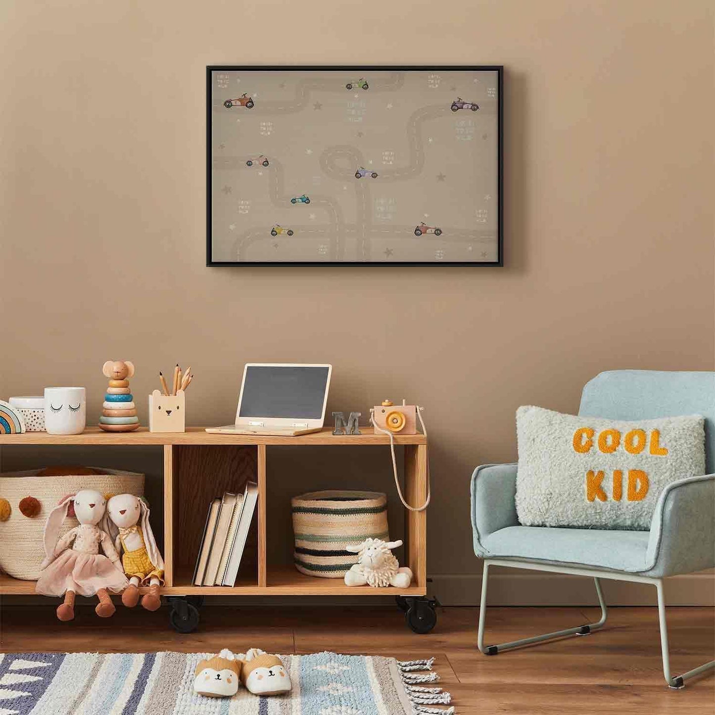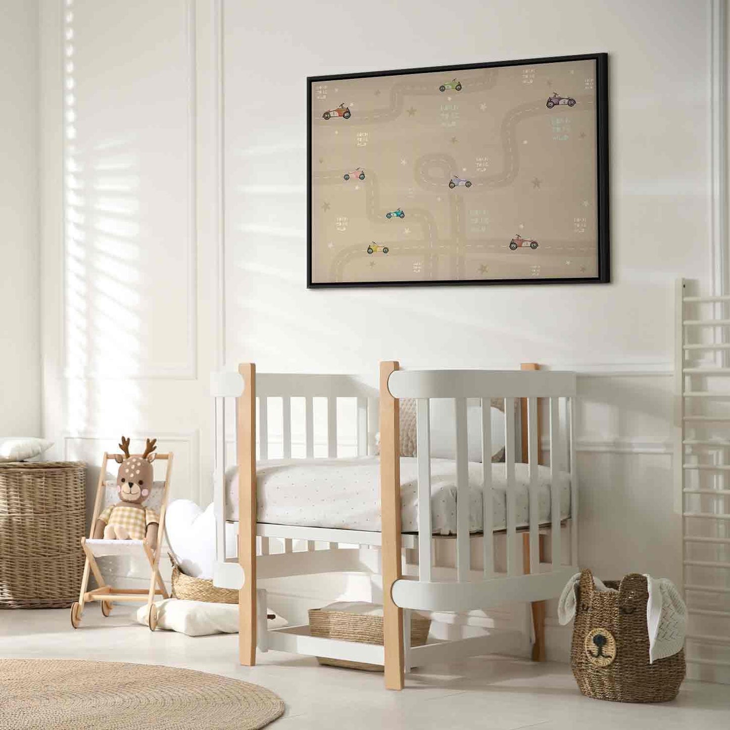 Unsere Bilder sind sicher und geruchsneutral und eignen sich daher ideal für Kinderzimmer. Die Größe wird Ihr Kind sicher beeindrucken! Bilder für Schlafzimmer sind ein echter Blickfang, genauso wie Bilder Wohnzimmer. Dekorieren Sie die Wände in Ihrem privaten Bereich mit einem Bild "Leinwandbild - Race - Colorful Cars on a Road on a Beige Background with Inscriptions". Wir empfehlen Bilder für Schlafzimmer, die Sie beruhigen und in eine erholsame Stimmung versetzen. Bilder aus unserer Kollektion werden Ihrem Interieur eine außergewöhnliche Atmosphäre verleihen. Unabhängig vom Raum schaffen auch Kunst Bilder eine gemütliche Atmosphäre für die Gäste. Massive Holzrahmen unterstreichen den einzigartigen Charakter der Schlafzimmerbilder, und ein schneller und sicherer Versand ist ein weiterer Vorteil, der für diese Wanddekorationen spricht. Bilder auf Leinwand sind in vier Versionen erhältlich, aus denen jeder Kunde die perfekte Option für seine Bedürfnisse finden wird. Das Angebot umfasst eine Version auf Vliesleinwand (Standard), auf italienischer Leinwand, Premium Print (ein Bild, das auf italienischer Leinwand gedruckt und von Hand mit einer Schicht transparentem Gel überzogen ist, das die Pinselstriche des Künstlers imitiert) sowie in einem soliden, hölzernen American-Box-Rahmen (zwei Rahmenfarben zur Auswahl, Muster gedruckt auf italienischer Leinwand).