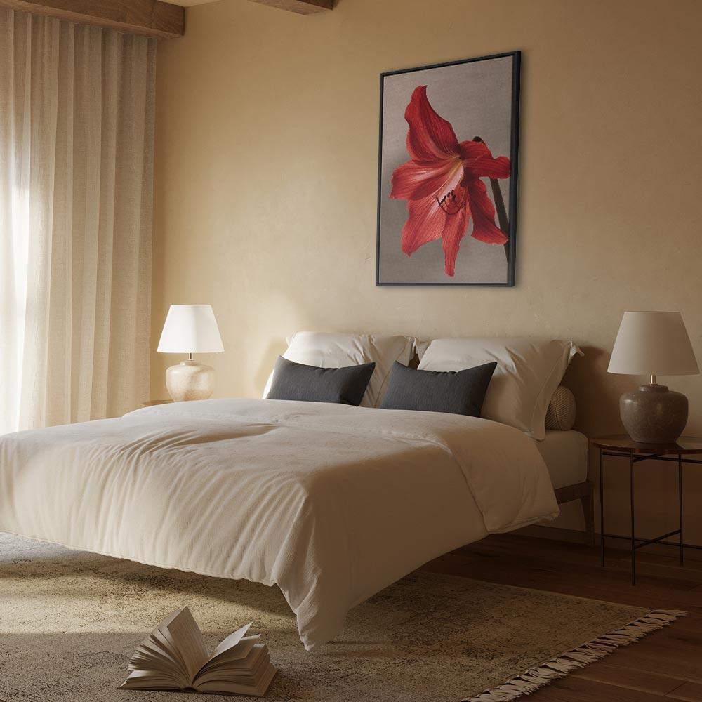 Unsere Bilder sind sicher und geruchsneutral und eignen sich daher ideal für Kinderzimmer. Die Größe wird Ihr Kind sicher beeindrucken! Bilder für Schlafzimmer sind ein echter Blickfang, genauso wie Bilder Wohnzimmer. Dekorieren Sie die Wände in Ihrem privaten Bereich mit einem Bild "Leinwandbild - Red Flower (1 Part) Vertical". Wir empfehlen Bilder für Schlafzimmer , die Sie beruhigen und in eine erholsame Stimmung versetzen. Bilder aus unserer Kollektion werden Ihrem Interieur eine außergewöhnliche Atmosphäre verleihen. Unabhängig vom Raum schaffen auch Kunst Bilder eine gemütliche Atmosphäre für die Gäste. Massive Holzrahmen unterstreichen den einzigartigen Charakter der Schlafzimmerbilder, und ein schneller und sicherer Versand ist ein weiterer Vorteil, der für diese Wanddekorationen spricht Leinwandbilder sind in fünf Varianten erhältlich, sodass jeder Kunde die perfekte Option für seine Bedürfnisse findet.Die Variante auf Strukturleinwand (Standard) ist eine universelle Dekoration, die das Haushaltsbudget nicht belastet.Für Liebhaber edler Materialien ist ein Druck auf italienischer Leinwand aus 100 % Baumwolle die ideale Wahl.Und für Fans der Malerei? Hier überzeugt die außergewöhnliche Premium-Print-Technik – ein Bild, das auf Strukturleinwand gedruckt und von Hand mit einer Schicht transparenten Gels überzogen wird, die die Pinselstriche eines Künstlers imitiert – ein „wie gemalt“-Effekt, aber zu einem günstigeren Preis.Die Variante im soliden Holzrahmen des Typs American Box mit Tiefeneffekt (zwei Rahmenfarben zur Auswahl, Motiv auf Strukturleinwand gedruckt) bietet eine klassische Lösung in neuer Form.Das Akustikbild (Druck auf Strukturleinwand mit einer zusätzlichen Schicht schallabsorbierendem Schaumstoff) ist dagegen ein Volltreffer für alle, die Ästhetik mit Funktionalität verbinden möchten.Zwar sind die beiden letzten Optionen nur für bestimmte Größen von einteiligen Bildern verfügbar, doch bei allen Varianten legen wir GRATIS die erforderliche Anzahl an Haken und Nägeln zur Montage bei.