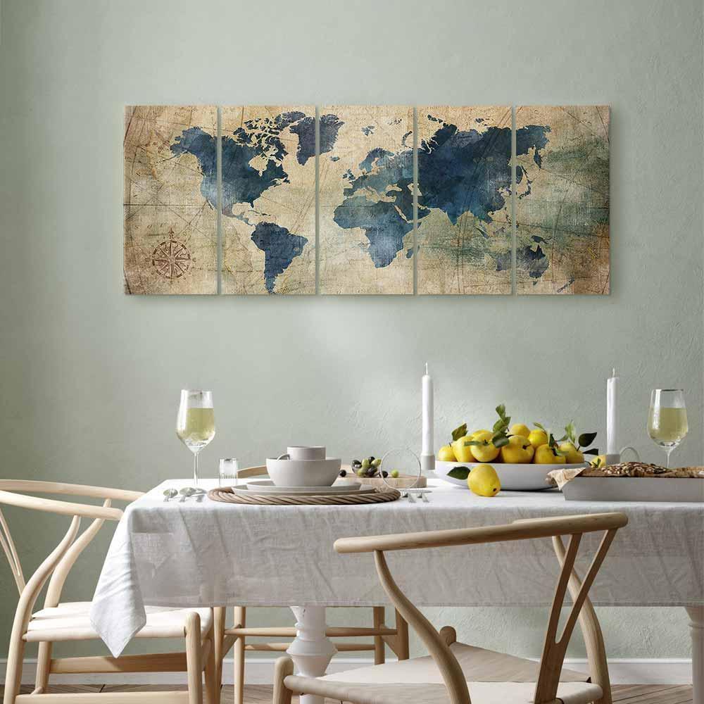 Leinwandbild - Retro Map (5 Parts) Narrow