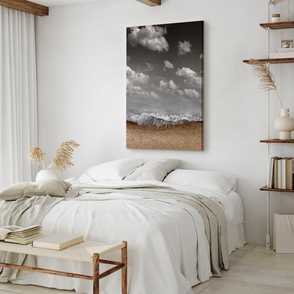 Unsere Bilder sind sicher und geruchsneutral und eignen sich daher ideal für Kinderzimmer. Die Größe wird Ihr Kind sicher beeindrucken! Bilder für Schlafzimmer sind ein echter Blickfang, genauso wie Bilder Wohnzimmer. Dekorieren Sie die Wände in Ihrem privaten Bereich mit einem Bild "Leinwandbild - Sky Wave (1 Part) Vertical". Wir empfehlen Bilder für Schlafzimmer , die Sie beruhigen und in eine erholsame Stimmung versetzen. Bilder aus unserer Kollektion werden Ihrem Interieur eine außergewöhnliche Atmosphäre verleihen. Unabhängig vom Raum schaffen auch Kunst Bilder eine gemütliche Atmosphäre für die Gäste. Massive Holzrahmen unterstreichen den einzigartigen Charakter der Schlafzimmerbilder, und ein schneller und sicherer Versand ist ein weiterer Vorteil, der für diese Wanddekorationen spricht Leinwandbilder sind in fünf Varianten erhältlich, sodass jeder Kunde die perfekte Option für seine Bedürfnisse findet.Die Variante auf Strukturleinwand (Standard) ist eine universelle Dekoration, die das Haushaltsbudget nicht belastet.Für Liebhaber edler Materialien ist ein Druck auf italienischer Leinwand aus 100 % Baumwolle die ideale Wahl.Und für Fans der Malerei? Hier überzeugt die außergewöhnliche Premium-Print-Technik – ein Bild, das auf Strukturleinwand gedruckt und von Hand mit einer Schicht transparenten Gels überzogen wird, die die Pinselstriche eines Künstlers imitiert – ein „wie gemalt“-Effekt, aber zu einem günstigeren Preis.Die Variante im soliden Holzrahmen des Typs American Box mit Tiefeneffekt (zwei Rahmenfarben zur Auswahl, Motiv auf Strukturleinwand gedruckt) bietet eine klassische Lösung in neuer Form.Das Akustikbild (Druck auf Strukturleinwand mit einer zusätzlichen Schicht schallabsorbierendem Schaumstoff) ist dagegen ein Volltreffer für alle, die Ästhetik mit Funktionalität verbinden möchten.Zwar sind die beiden letzten Optionen nur für bestimmte Größen von einteiligen Bildern verfügbar, doch bei allen Varianten legen wir GRATIS die erforderliche Anzahl an Haken und Nägeln zur Montage bei.
