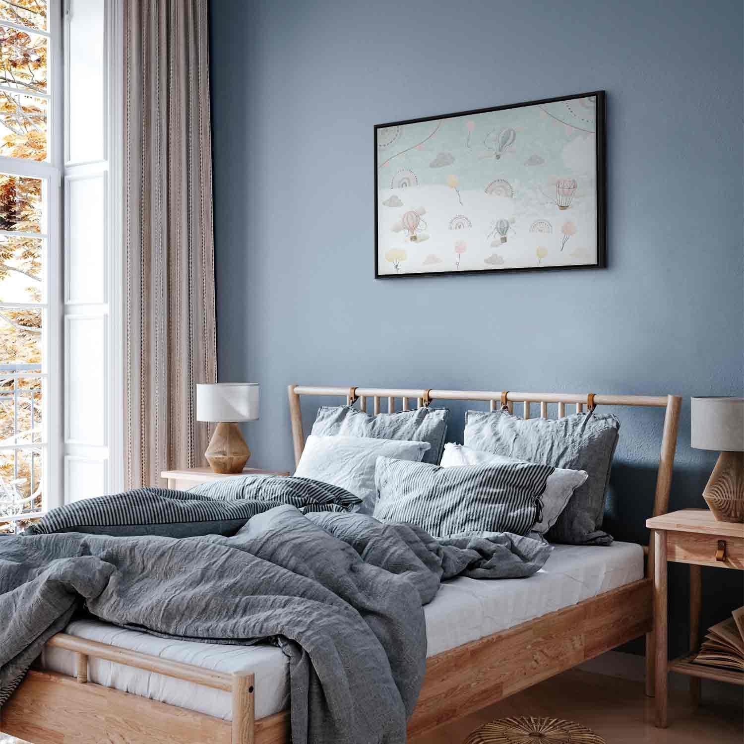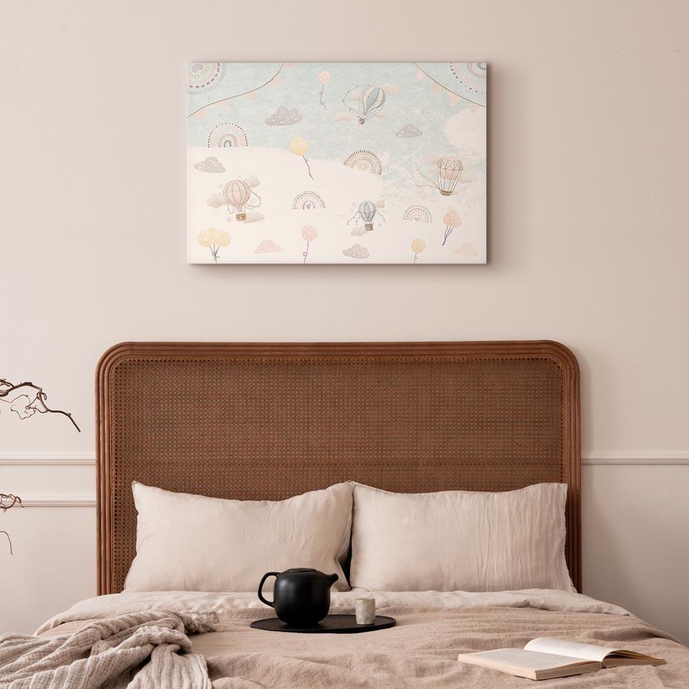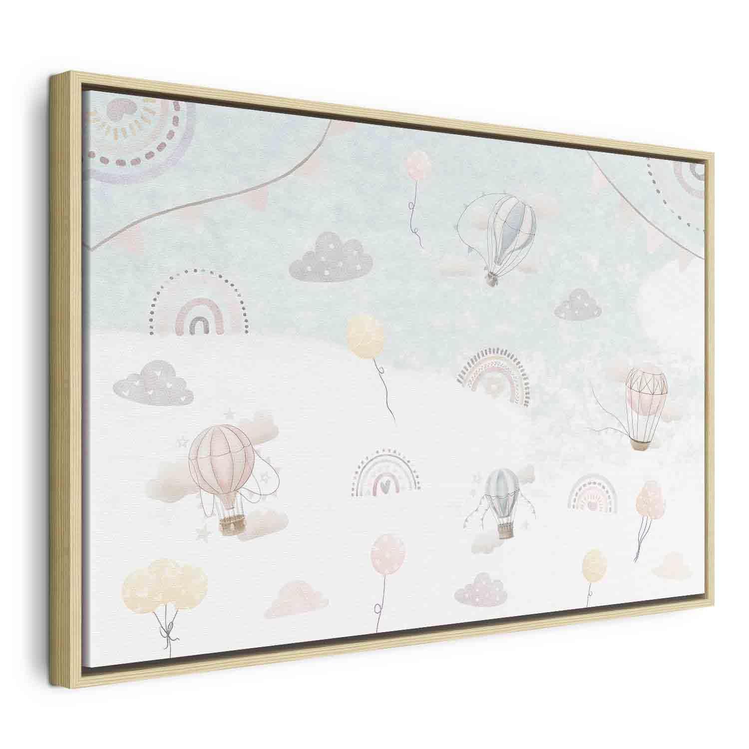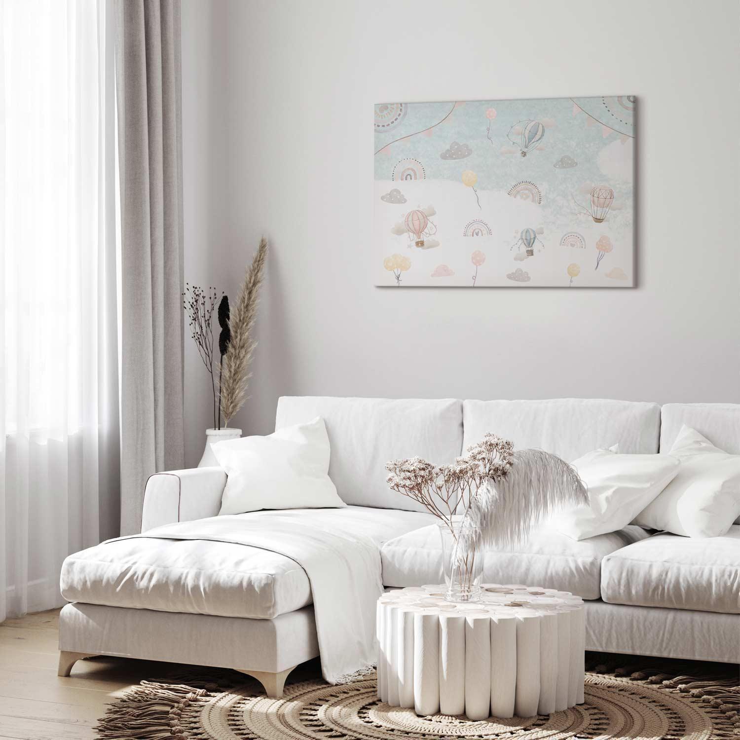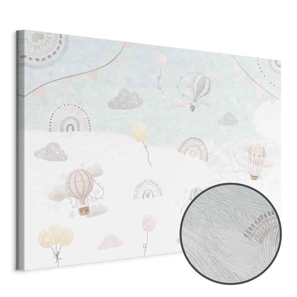 Unsere Bilder sind sicher und geruchsneutral und eignen sich daher ideal für Kinderzimmer. Die Größe wird Ihr Kind sicher beeindrucken! Bilder für Schlafzimmer sind ein echter Blickfang, genauso wie Bilder Wohnzimmer. Dekorieren Sie die Wände in Ihrem privaten Bereich mit einem Bild "Leinwandbild - Sky with Balloons - Balloons in Subdued Colors Flying in the Sky Among Clouds Rainbows and Stars". Wir empfehlen Bilder für Schlafzimmer , die Sie beruhigen und in eine erholsame Stimmung versetzen. Bilder aus unserer Kollektion werden Ihrem Interieur eine außergewöhnliche Atmosphäre verleihen. Unabhängig vom Raum schaffen auch Kunst Bilder eine gemütliche Atmosphäre für die Gäste. Massive Holzrahmen unterstreichen den einzigartigen Charakter der Schlafzimmerbilder, und ein schneller und sicherer Versand ist ein weiterer Vorteil, der für diese Wanddekorationen spricht Leinwandbilder sind in fünf Varianten erhältlich, sodass jeder Kunde die perfekte Option für seine Bedürfnisse findet.Die Variante auf Strukturleinwand (Standard) ist eine universelle Dekoration, die das Haushaltsbudget nicht belastet.Für Liebhaber edler Materialien ist ein Druck auf italienischer Leinwand aus 100 % Baumwolle die ideale Wahl.Und für Fans der Malerei? Hier überzeugt die außergewöhnliche Premium-Print-Technik – ein Bild, das auf Strukturleinwand gedruckt und von Hand mit einer Schicht transparenten Gels überzogen wird, die die Pinselstriche eines Künstlers imitiert – ein „wie gemalt“-Effekt, aber zu einem günstigeren Preis.Die Variante im soliden Holzrahmen des Typs American Box mit Tiefeneffekt (zwei Rahmenfarben zur Auswahl, Motiv auf Strukturleinwand gedruckt) bietet eine klassische Lösung in neuer Form.Das Akustikbild (Druck auf Strukturleinwand mit einer zusätzlichen Schicht schallabsorbierendem Schaumstoff) ist dagegen ein Volltreffer für alle, die Ästhetik mit Funktionalität verbinden möchten.Zwar sind die beiden letzten Optionen nur für bestimmte Größen von einteiligen Bildern verfügbar, doch bei allen Varianten legen wir GRATIS die erforderliche Anzahl an Haken und Nägeln zur Montage bei.
