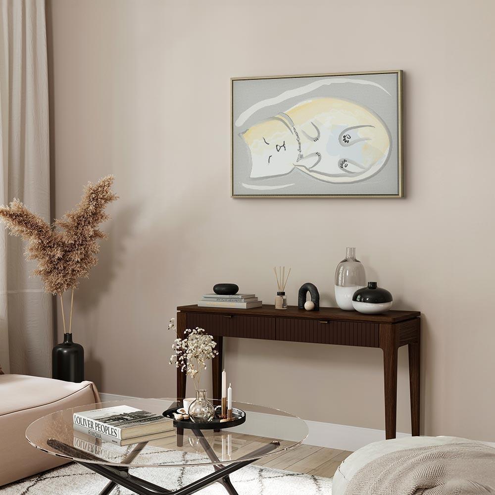 Unsere Bilder sind sicher und geruchsneutral und eignen sich daher ideal für Kinderzimmer. Die Größe wird Ihr Kind sicher beeindrucken! Bilder für Schlafzimmer sind ein echter Blickfang, genauso wie Bilder Wohnzimmer. Dekorieren Sie die Wände in Ihrem privaten Bereich mit einem Bild "Leinwandbild - Sleepy Kitty (1 Part) Vertical". Wir empfehlen Bilder für Schlafzimmer , die Sie beruhigen und in eine erholsame Stimmung versetzen. Bilder aus unserer Kollektion werden Ihrem Interieur eine außergewöhnliche Atmosphäre verleihen. Unabhängig vom Raum schaffen auch Kunst Bilder eine gemütliche Atmosphäre für die Gäste. Massive Holzrahmen unterstreichen den einzigartigen Charakter der Schlafzimmerbilder, und ein schneller und sicherer Versand ist ein weiterer Vorteil, der für diese Wanddekorationen spricht Leinwandbilder sind in fünf Varianten erhältlich, sodass jeder Kunde die perfekte Option für seine Bedürfnisse findet.Die Variante auf Strukturleinwand (Standard) ist eine universelle Dekoration, die das Haushaltsbudget nicht belastet.Für Liebhaber edler Materialien ist ein Druck auf italienischer Leinwand aus 100 % Baumwolle die ideale Wahl.Und für Fans der Malerei? Hier überzeugt die außergewöhnliche Premium-Print-Technik – ein Bild, das auf Strukturleinwand gedruckt und von Hand mit einer Schicht transparenten Gels überzogen wird, die die Pinselstriche eines Künstlers imitiert – ein „wie gemalt“-Effekt, aber zu einem günstigeren Preis.Die Variante im soliden Holzrahmen des Typs American Box mit Tiefeneffekt (zwei Rahmenfarben zur Auswahl, Motiv auf Strukturleinwand gedruckt) bietet eine klassische Lösung in neuer Form.Das Akustikbild (Druck auf Strukturleinwand mit einer zusätzlichen Schicht schallabsorbierendem Schaumstoff) ist dagegen ein Volltreffer für alle, die Ästhetik mit Funktionalität verbinden möchten.Zwar sind die beiden letzten Optionen nur für bestimmte Größen von einteiligen Bildern verfügbar, doch bei allen Varianten legen wir GRATIS die erforderliche Anzahl an Haken und Nägeln zur Montage bei.