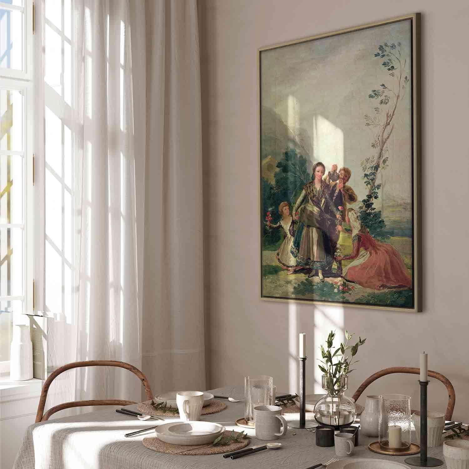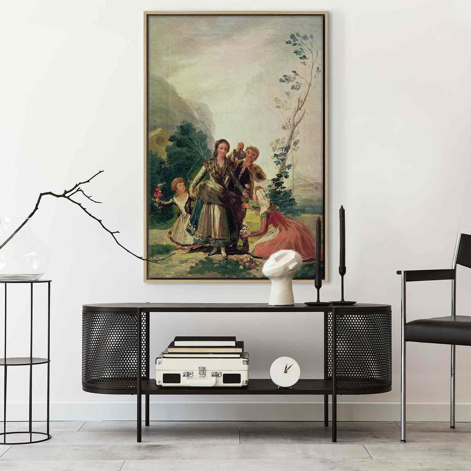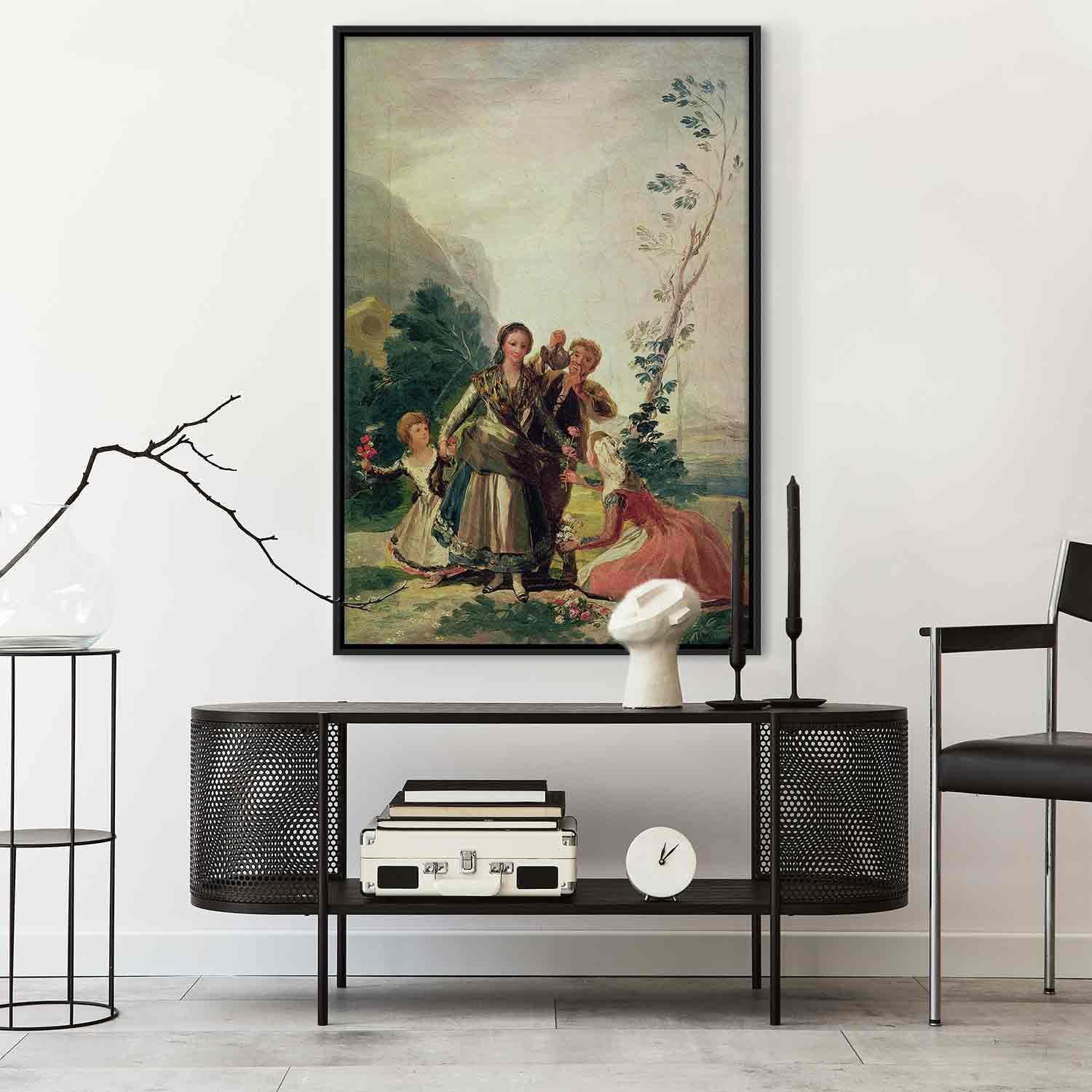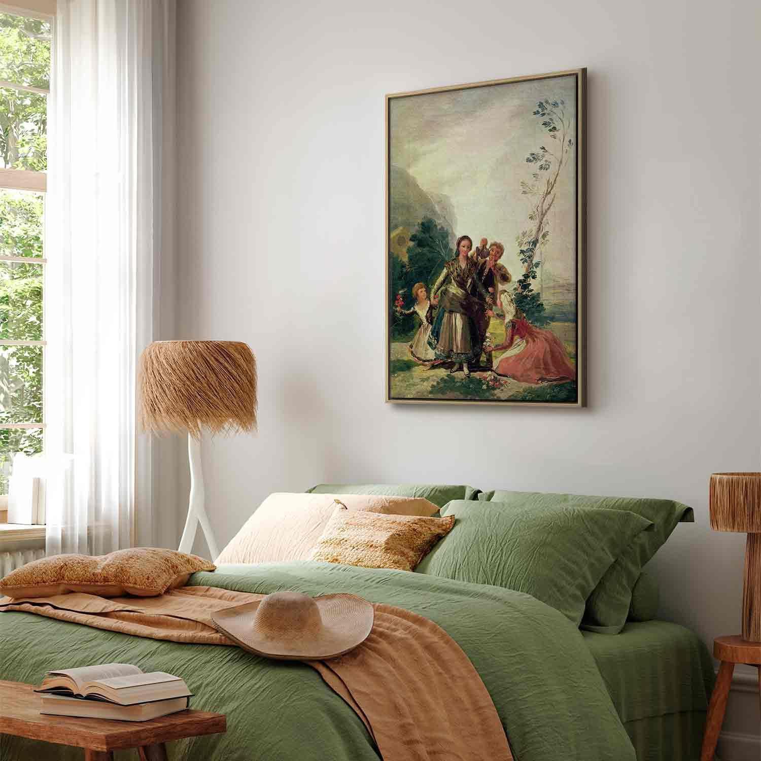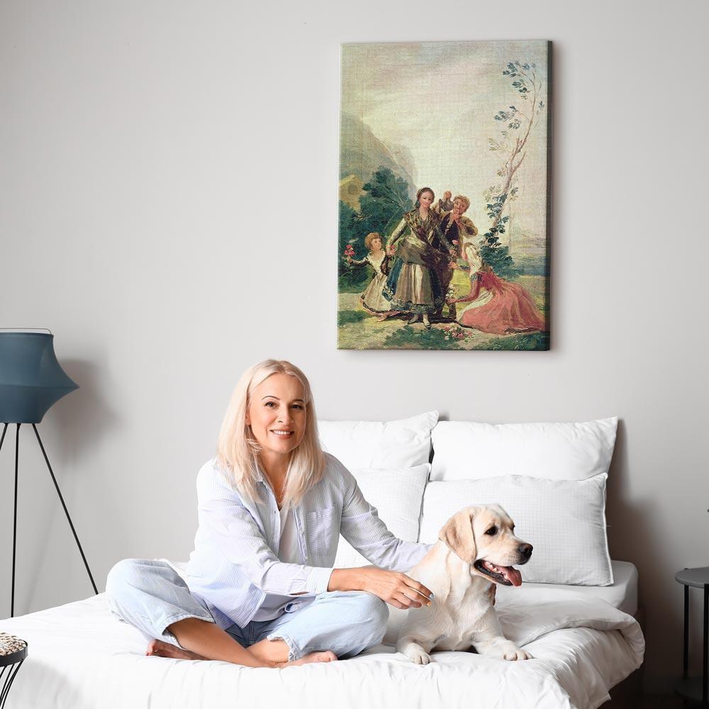 Unsere Bilder sind sicher und geruchsneutral und eignen sich daher ideal für Kinderzimmer. Die Größe wird Ihr Kind sicher beeindrucken! Bilder für Schlafzimmer sind ein echter Blickfang, genauso wie Bilder Wohnzimmer. Dekorieren Sie die Wände in Ihrem privaten Bereich mit einem Bild "Leinwandbild - Francisco Goya – Spring or the Flower Seller". Wir empfehlen Bilder für Schlafzimmer , die Sie beruhigen und in eine erholsame Stimmung versetzen. Bilder aus unserer Kollektion werden Ihrem Interieur eine außergewöhnliche Atmosphäre verleihen. Unabhängig vom Raum schaffen auch Kunst Bilder eine gemütliche Atmosphäre für die Gäste. Massive Holzrahmen unterstreichen den einzigartigen Charakter der Schlafzimmerbilder, und ein schneller und sicherer Versand ist ein weiterer Vorteil, der für diese Wanddekorationen spricht Leinwandbilder sind in fünf Varianten erhältlich, sodass jeder Kunde die perfekte Option für seine Bedürfnisse findet.Die Variante auf Strukturleinwand (Standard) ist eine universelle Dekoration, die das Haushaltsbudget nicht belastet.Für Liebhaber edler Materialien ist ein Druck auf italienischer Leinwand aus 100 % Baumwolle die ideale Wahl.Und für Fans der Malerei? Hier überzeugt die außergewöhnliche Premium-Print-Technik – ein Bild, das auf Strukturleinwand gedruckt und von Hand mit einer Schicht transparenten Gels überzogen wird, die die Pinselstriche eines Künstlers imitiert – ein „wie gemalt“-Effekt, aber zu einem günstigeren Preis.Die Variante im soliden Holzrahmen des Typs American Box mit Tiefeneffekt (zwei Rahmenfarben zur Auswahl, Motiv auf Strukturleinwand gedruckt) bietet eine klassische Lösung in neuer Form.Das Akustikbild (Druck auf Strukturleinwand mit einer zusätzlichen Schicht schallabsorbierendem Schaumstoff) ist dagegen ein Volltreffer für alle, die Ästhetik mit Funktionalität verbinden möchten.Zwar sind die beiden letzten Optionen nur für bestimmte Größen von einteiligen Bildern verfügbar, doch bei allen Varianten legen wir GRATIS die erforderliche Anzahl an Haken und Nägeln zur Montage bei.
