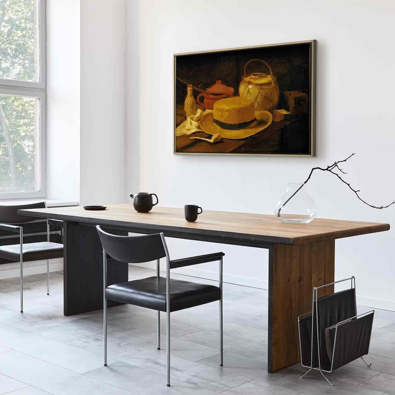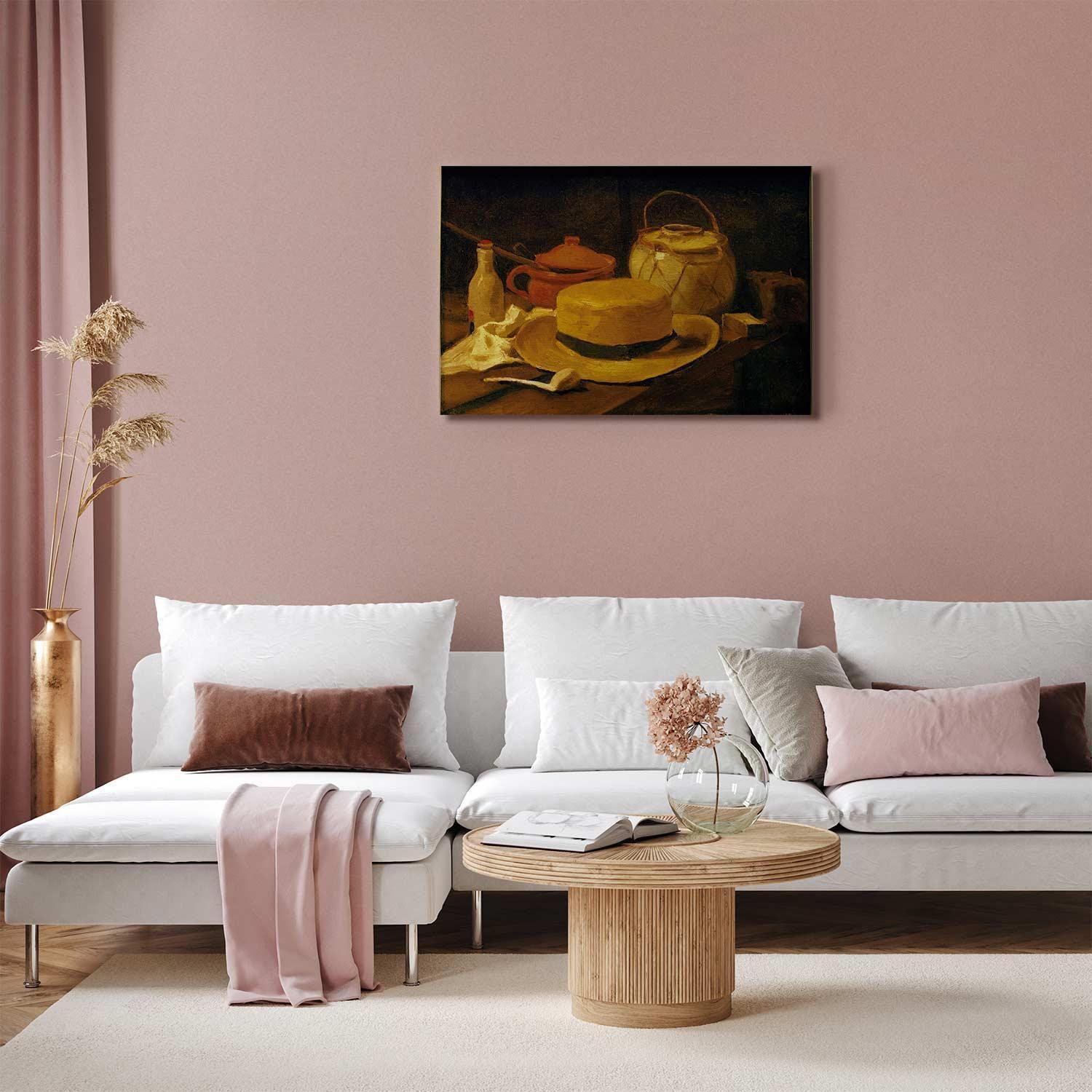 Unsere Bilder sind sicher und geruchsneutral und eignen sich daher ideal für Kinderzimmer. Die Größe wird Ihr Kind sicher beeindrucken! Bilder für Schlafzimmer sind ein echter Blickfang, genauso wie Bilder Wohnzimmer. Dekorieren Sie die Wände in Ihrem privaten Bereich mit einem Bild "Leinwandbild - Vincent Van Gogh – Still life with yellow straw hat". Wir empfehlen Bilder für Schlafzimmer , die Sie beruhigen und in eine erholsame Stimmung versetzen. Bilder aus unserer Kollektion werden Ihrem Interieur eine außergewöhnliche Atmosphäre verleihen. Unabhängig vom Raum schaffen auch Kunst Bilder eine gemütliche Atmosphäre für die Gäste. Massive Holzrahmen unterstreichen den einzigartigen Charakter der Schlafzimmerbilder, und ein schneller und sicherer Versand ist ein weiterer Vorteil, der für diese Wanddekorationen spricht Leinwandbilder sind in fünf Varianten erhältlich, sodass jeder Kunde die perfekte Option für seine Bedürfnisse findet.Die Variante auf Strukturleinwand (Standard) ist eine universelle Dekoration, die das Haushaltsbudget nicht belastet.Für Liebhaber edler Materialien ist ein Druck auf italienischer Leinwand aus 100 % Baumwolle die ideale Wahl.Und für Fans der Malerei? Hier überzeugt die außergewöhnliche Premium-Print-Technik – ein Bild, das auf Strukturleinwand gedruckt und von Hand mit einer Schicht transparenten Gels überzogen wird, die die Pinselstriche eines Künstlers imitiert – ein „wie gemalt“-Effekt, aber zu einem günstigeren Preis.Die Variante im soliden Holzrahmen des Typs American Box mit Tiefeneffekt (zwei Rahmenfarben zur Auswahl, Motiv auf Strukturleinwand gedruckt) bietet eine klassische Lösung in neuer Form.Das Akustikbild (Druck auf Strukturleinwand mit einer zusätzlichen Schicht schallabsorbierendem Schaumstoff) ist dagegen ein Volltreffer für alle, die Ästhetik mit Funktionalität verbinden möchten.Zwar sind die beiden letzten Optionen nur für bestimmte Größen von einteiligen Bildern verfügbar, doch bei allen Varianten legen wir GRATIS die erforderliche Anzahl an Haken und Nägeln zur Montage bei.