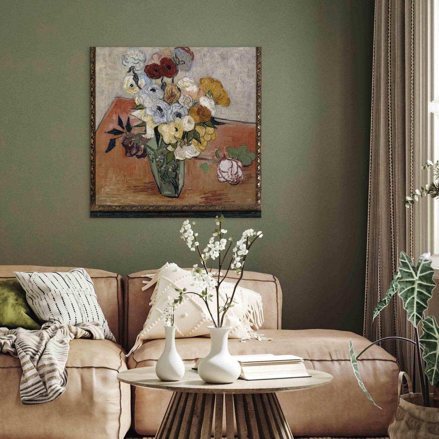 Leinwandbild - Stilllife with Japanese vase, roses and anemones (Vincent Van Gogh)