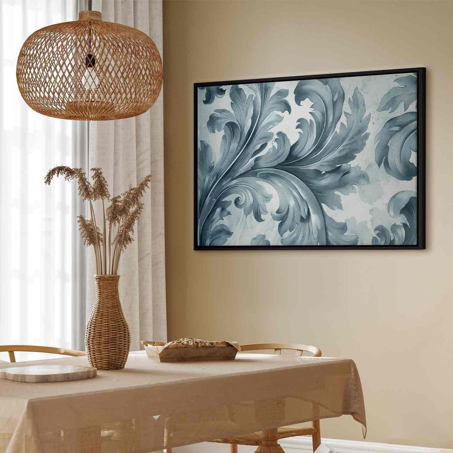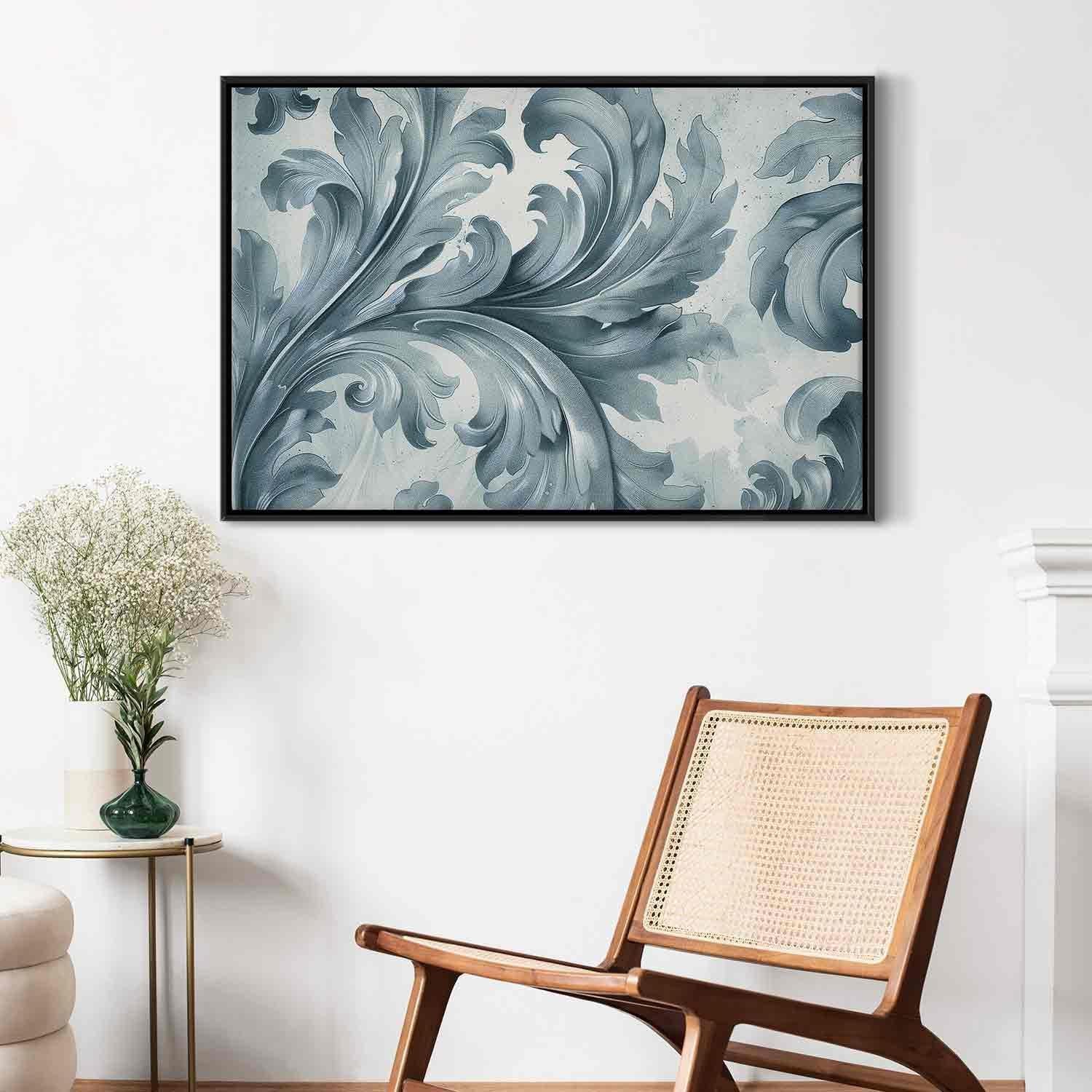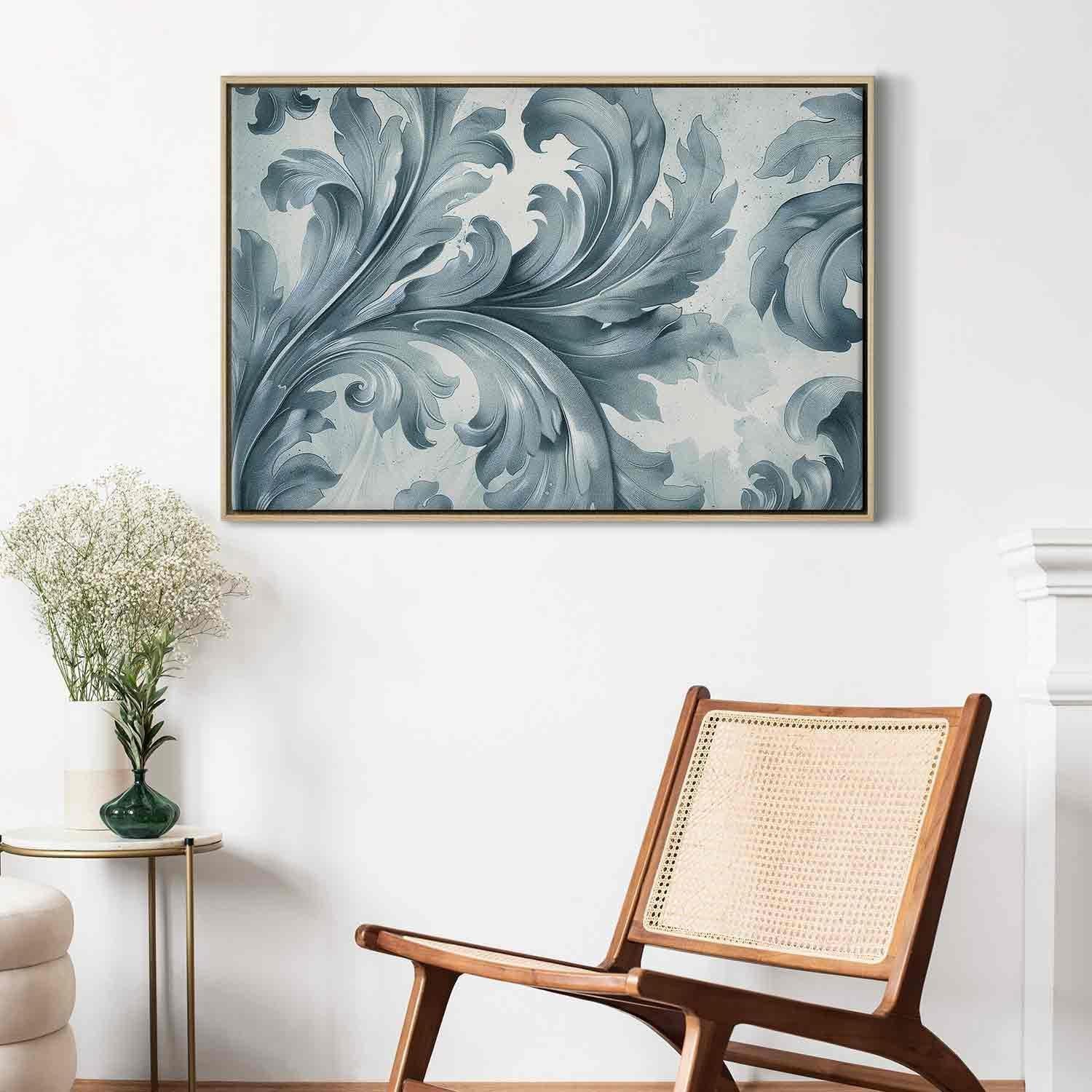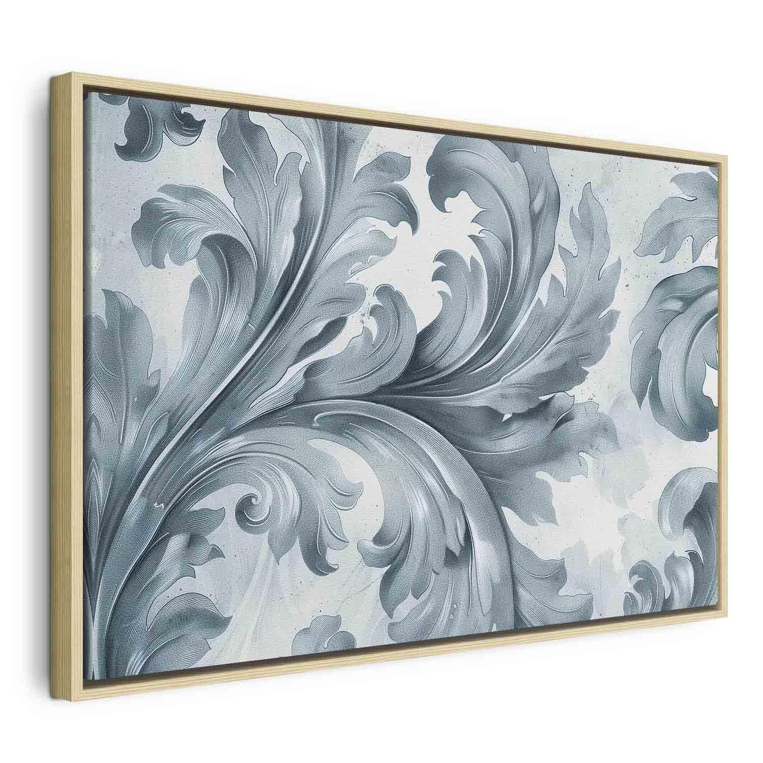 Leinwandbild - Stone Baroque Ornaments in Light Shades of Gray-Blue