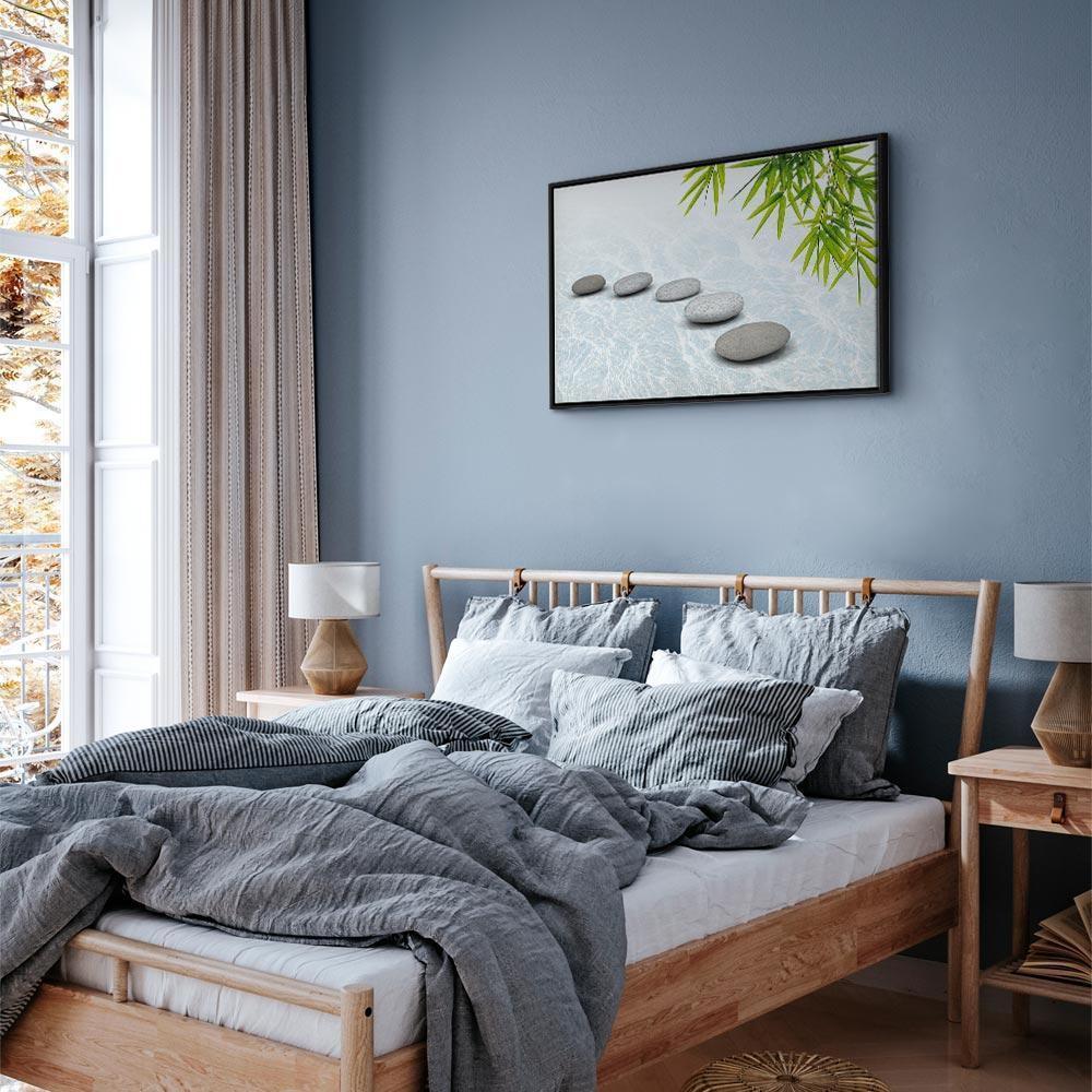 Unsere Bilder sind sicher und geruchsneutral und eignen sich daher ideal für Kinderzimmer. Die Größe wird Ihr Kind sicher beeindrucken! Bilder für Schlafzimmer sind ein echter Blickfang, genauso wie Bilder Wohnzimmer. Dekorieren Sie die Wände in Ihrem privaten Bereich mit einem Bild "Leinwandbild - Stone Peace (1 Part) Wide". Wir empfehlen Bilder für Schlafzimmer , die Sie beruhigen und in eine erholsame Stimmung versetzen. Bilder aus unserer Kollektion werden Ihrem Interieur eine außergewöhnliche Atmosphäre verleihen. Unabhängig vom Raum schaffen auch Kunst Bilder eine gemütliche Atmosphäre für die Gäste. Massive Holzrahmen unterstreichen den einzigartigen Charakter der Schlafzimmerbilder, und ein schneller und sicherer Versand ist ein weiterer Vorteil, der für diese Wanddekorationen spricht Leinwandbilder sind in fünf Varianten erhältlich, sodass jeder Kunde die perfekte Option für seine Bedürfnisse findet.Die Variante auf Strukturleinwand (Standard) ist eine universelle Dekoration, die das Haushaltsbudget nicht belastet.Für Liebhaber edler Materialien ist ein Druck auf italienischer Leinwand aus 100 % Baumwolle die ideale Wahl.Und für Fans der Malerei? Hier überzeugt die außergewöhnliche Premium-Print-Technik – ein Bild, das auf Strukturleinwand gedruckt und von Hand mit einer Schicht transparenten Gels überzogen wird, die die Pinselstriche eines Künstlers imitiert – ein „wie gemalt“-Effekt, aber zu einem günstigeren Preis.Die Variante im soliden Holzrahmen des Typs American Box mit Tiefeneffekt (zwei Rahmenfarben zur Auswahl, Motiv auf Strukturleinwand gedruckt) bietet eine klassische Lösung in neuer Form.Das Akustikbild (Druck auf Strukturleinwand mit einer zusätzlichen Schicht schallabsorbierendem Schaumstoff) ist dagegen ein Volltreffer für alle, die Ästhetik mit Funktionalität verbinden möchten.Zwar sind die beiden letzten Optionen nur für bestimmte Größen von einteiligen Bildern verfügbar, doch bei allen Varianten legen wir GRATIS die erforderliche Anzahl an Haken und Nägeln zur Montage bei.