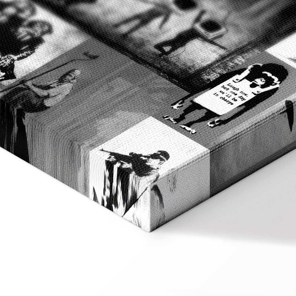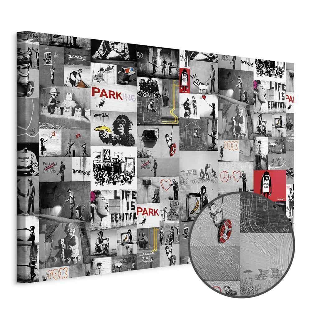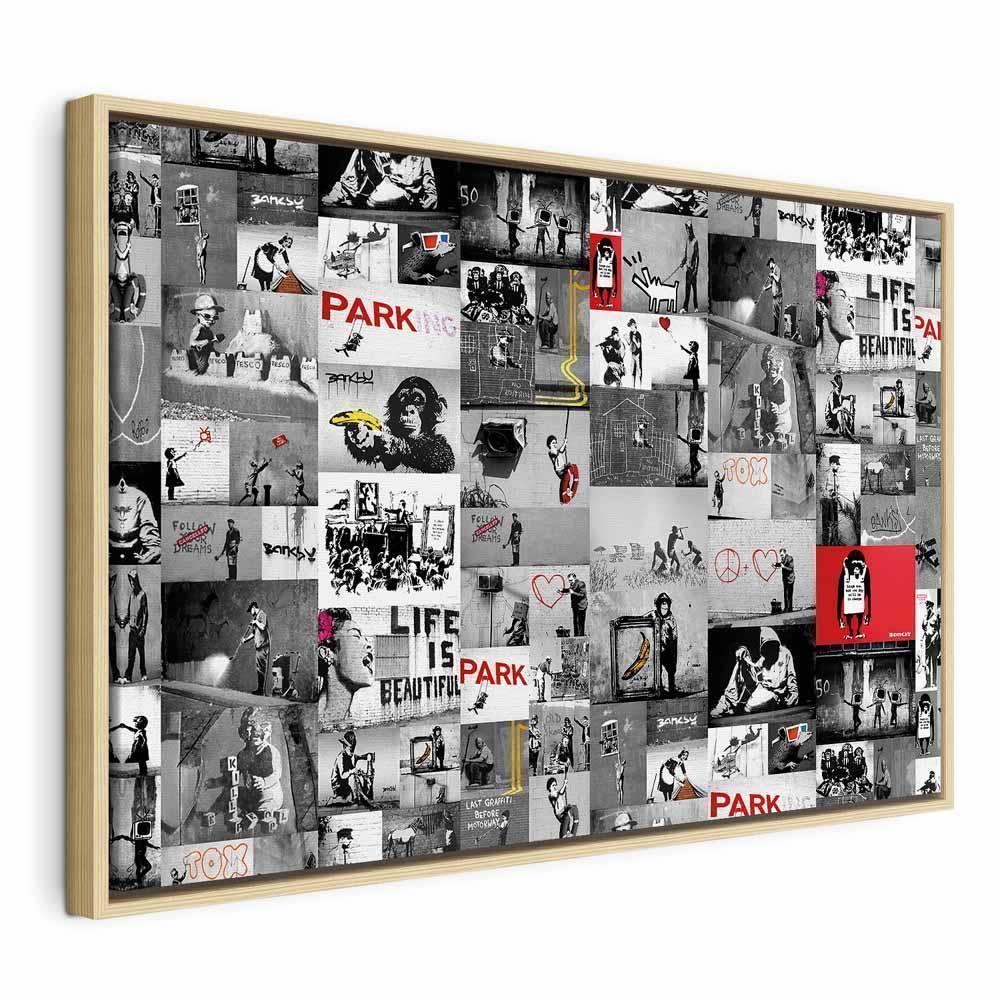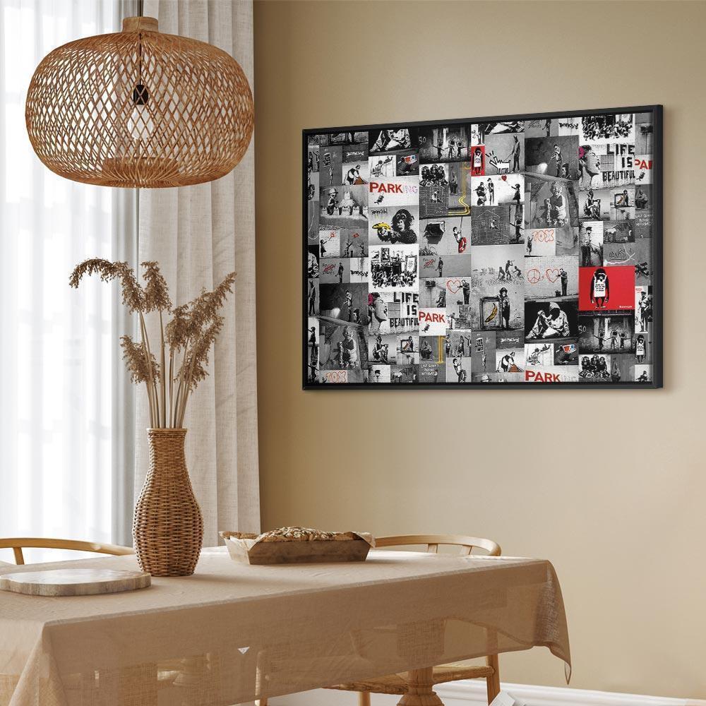 Unsere Bilder sind sicher und geruchsneutral und eignen sich daher ideal für Kinderzimmer. Die Größe wird Ihr Kind sicher beeindrucken! Bilder für Schlafzimmer sind ein echter Blickfang, genauso wie Bilder Wohnzimmer. Dekorieren Sie die Wände in Ihrem privaten Bereich mit einem Bild "Leinwandbild - Street Art: Banksy". Wir empfehlen Bilder für Schlafzimmer , die Sie beruhigen und in eine erholsame Stimmung versetzen. Bilder aus unserer Kollektion werden Ihrem Interieur eine außergewöhnliche Atmosphäre verleihen. Unabhängig vom Raum schaffen auch Kunst Bilder eine gemütliche Atmosphäre für die Gäste. Massive Holzrahmen unterstreichen den einzigartigen Charakter der Schlafzimmerbilder, und ein schneller und sicherer Versand ist ein weiterer Vorteil, der für diese Wanddekorationen spricht Leinwandbilder sind in fünf Varianten erhältlich, sodass jeder Kunde die perfekte Option für seine Bedürfnisse findet.Die Variante auf Strukturleinwand (Standard) ist eine universelle Dekoration, die das Haushaltsbudget nicht belastet.Für Liebhaber edler Materialien ist ein Druck auf italienischer Leinwand aus 100 % Baumwolle die ideale Wahl.Und für Fans der Malerei? Hier überzeugt die außergewöhnliche Premium-Print-Technik – ein Bild, das auf Strukturleinwand gedruckt und von Hand mit einer Schicht transparenten Gels überzogen wird, die die Pinselstriche eines Künstlers imitiert – ein „wie gemalt“-Effekt, aber zu einem günstigeren Preis.Die Variante im soliden Holzrahmen des Typs American Box mit Tiefeneffekt (zwei Rahmenfarben zur Auswahl, Motiv auf Strukturleinwand gedruckt) bietet eine klassische Lösung in neuer Form.Das Akustikbild (Druck auf Strukturleinwand mit einer zusätzlichen Schicht schallabsorbierendem Schaumstoff) ist dagegen ein Volltreffer für alle, die Ästhetik mit Funktionalität verbinden möchten.Zwar sind die beiden letzten Optionen nur für bestimmte Größen von einteiligen Bildern verfügbar, doch bei allen Varianten legen wir GRATIS die erforderliche Anzahl an Haken und Nägeln zur Montage bei.