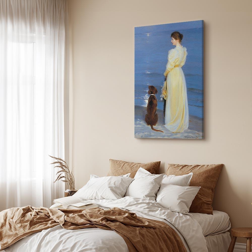 Unsere Bilder sind sicher und geruchsneutral und eignen sich daher ideal für Kinderzimmer. Die Größe wird Ihr Kind sicher beeindrucken! Bilder für Schlafzimmer sind ein echter Blickfang, genauso wie Bilder Wohnzimmer. Dekorieren Sie die Wände in Ihrem privaten Bereich mit einem Bild "Leinwandbild - Peder Severin Kroyer – Summer Evening in Skagen". Wir empfehlen Bilder für Schlafzimmer , die Sie beruhigen und in eine erholsame Stimmung versetzen. Bilder aus unserer Kollektion werden Ihrem Interieur eine außergewöhnliche Atmosphäre verleihen. Unabhängig vom Raum schaffen auch Kunst Bilder eine gemütliche Atmosphäre für die Gäste. Massive Holzrahmen unterstreichen den einzigartigen Charakter der Schlafzimmerbilder, und ein schneller und sicherer Versand ist ein weiterer Vorteil, der für diese Wanddekorationen spricht Leinwandbilder sind in fünf Varianten erhältlich, sodass jeder Kunde die perfekte Option für seine Bedürfnisse findet.Die Variante auf Strukturleinwand (Standard) ist eine universelle Dekoration, die das Haushaltsbudget nicht belastet.Für Liebhaber edler Materialien ist ein Druck auf italienischer Leinwand aus 100 % Baumwolle die ideale Wahl.Und für Fans der Malerei? Hier überzeugt die außergewöhnliche Premium-Print-Technik – ein Bild, das auf Strukturleinwand gedruckt und von Hand mit einer Schicht transparenten Gels überzogen wird, die die Pinselstriche eines Künstlers imitiert – ein „wie gemalt“-Effekt, aber zu einem günstigeren Preis.Die Variante im soliden Holzrahmen des Typs American Box mit Tiefeneffekt (zwei Rahmenfarben zur Auswahl, Motiv auf Strukturleinwand gedruckt) bietet eine klassische Lösung in neuer Form.Das Akustikbild (Druck auf Strukturleinwand mit einer zusätzlichen Schicht schallabsorbierendem Schaumstoff) ist dagegen ein Volltreffer für alle, die Ästhetik mit Funktionalität verbinden möchten.Zwar sind die beiden letzten Optionen nur für bestimmte Größen von einteiligen Bildern verfügbar, doch bei allen Varianten legen wir GRATIS die erforderliche Anzahl an Haken und Nägeln zur Montage bei.