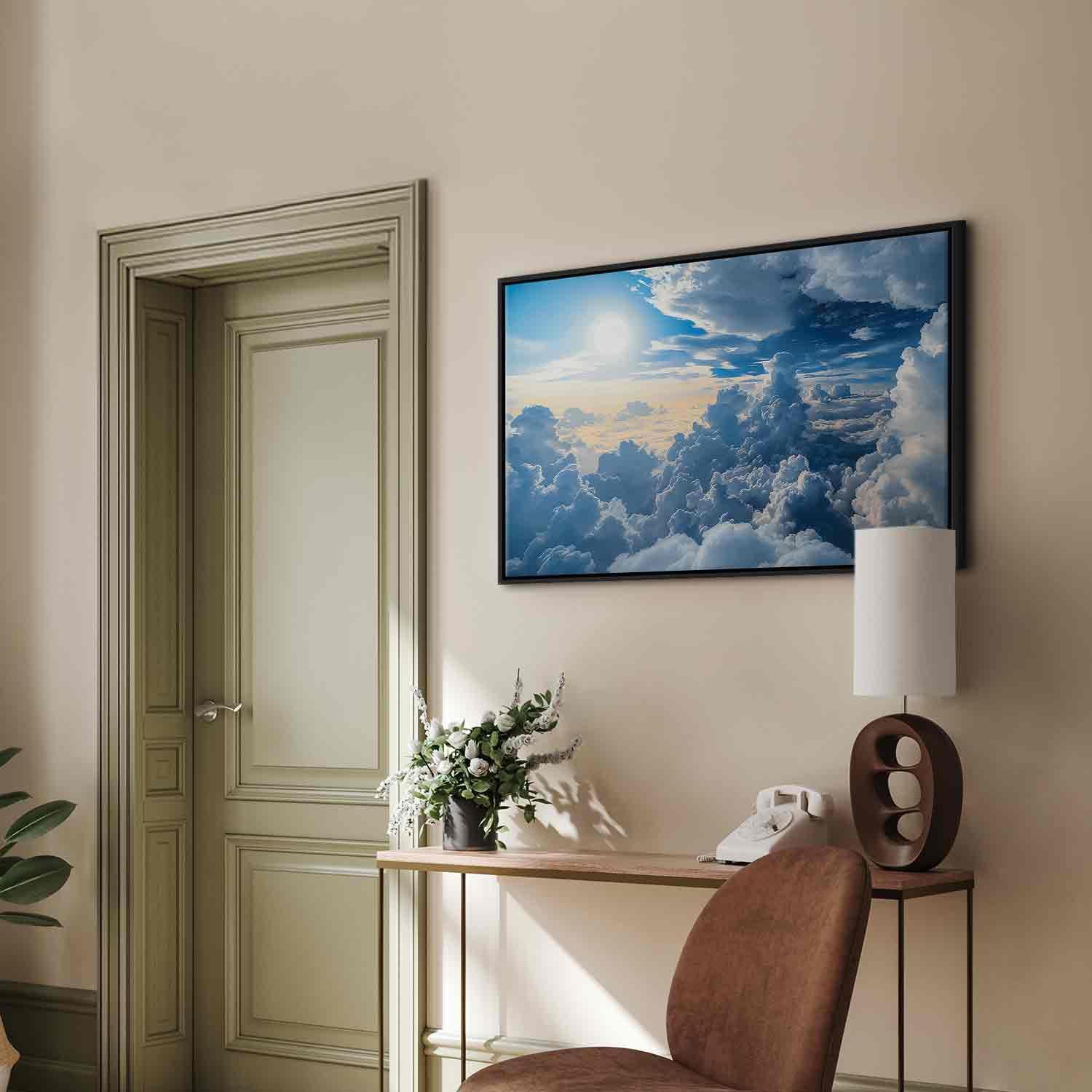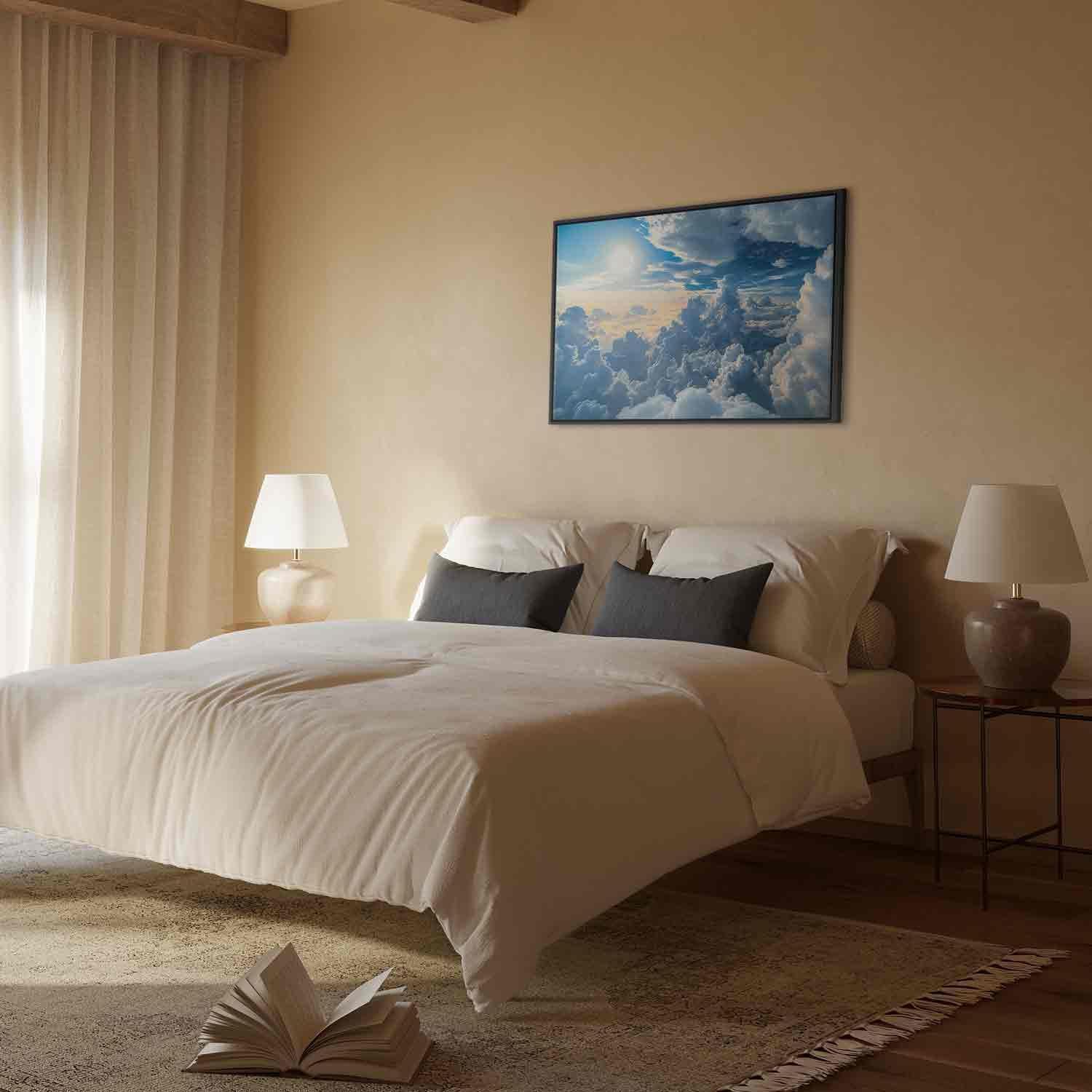 Unsere Bilder sind sicher und geruchsneutral und eignen sich daher ideal für Kinderzimmer. Die Größe wird Ihr Kind sicher beeindrucken! Bilder für Schlafzimmer sind ein echter Blickfang, genauso wie Bilder Wohnzimmer. Dekorieren Sie die Wände in Ihrem privaten Bereich mit einem Bild "Leinwandbild - Symphony of Light: Sun and Clouds Collaborating on a Beautiful Sky". Wir empfehlen Bilder für Schlafzimmer , die Sie beruhigen und in eine erholsame Stimmung versetzen. Bilder aus unserer Kollektion werden Ihrem Interieur eine außergewöhnliche Atmosphäre verleihen. Unabhängig vom Raum schaffen auch Kunst Bilder eine gemütliche Atmosphäre für die Gäste. Massive Holzrahmen unterstreichen den einzigartigen Charakter der Schlafzimmerbilder, und ein schneller und sicherer Versand ist ein weiterer Vorteil, der für diese Wanddekorationen spricht Leinwandbilder sind in fünf Varianten erhältlich, sodass jeder Kunde die perfekte Option für seine Bedürfnisse findet.Die Variante auf Strukturleinwand (Standard) ist eine universelle Dekoration, die das Haushaltsbudget nicht belastet.Für Liebhaber edler Materialien ist ein Druck auf italienischer Leinwand aus 100 % Baumwolle die ideale Wahl.Und für Fans der Malerei? Hier überzeugt die außergewöhnliche Premium-Print-Technik – ein Bild, das auf Strukturleinwand gedruckt und von Hand mit einer Schicht transparenten Gels überzogen wird, die die Pinselstriche eines Künstlers imitiert – ein „wie gemalt“-Effekt, aber zu einem günstigeren Preis.Die Variante im soliden Holzrahmen des Typs American Box mit Tiefeneffekt (zwei Rahmenfarben zur Auswahl, Motiv auf Strukturleinwand gedruckt) bietet eine klassische Lösung in neuer Form.Das Akustikbild (Druck auf Strukturleinwand mit einer zusätzlichen Schicht schallabsorbierendem Schaumstoff) ist dagegen ein Volltreffer für alle, die Ästhetik mit Funktionalität verbinden möchten.Zwar sind die beiden letzten Optionen nur für bestimmte Größen von einteiligen Bildern verfügbar, doch bei allen Varianten legen wir GRATIS die erforderliche Anzahl an Haken und Nägeln zur Montage bei.