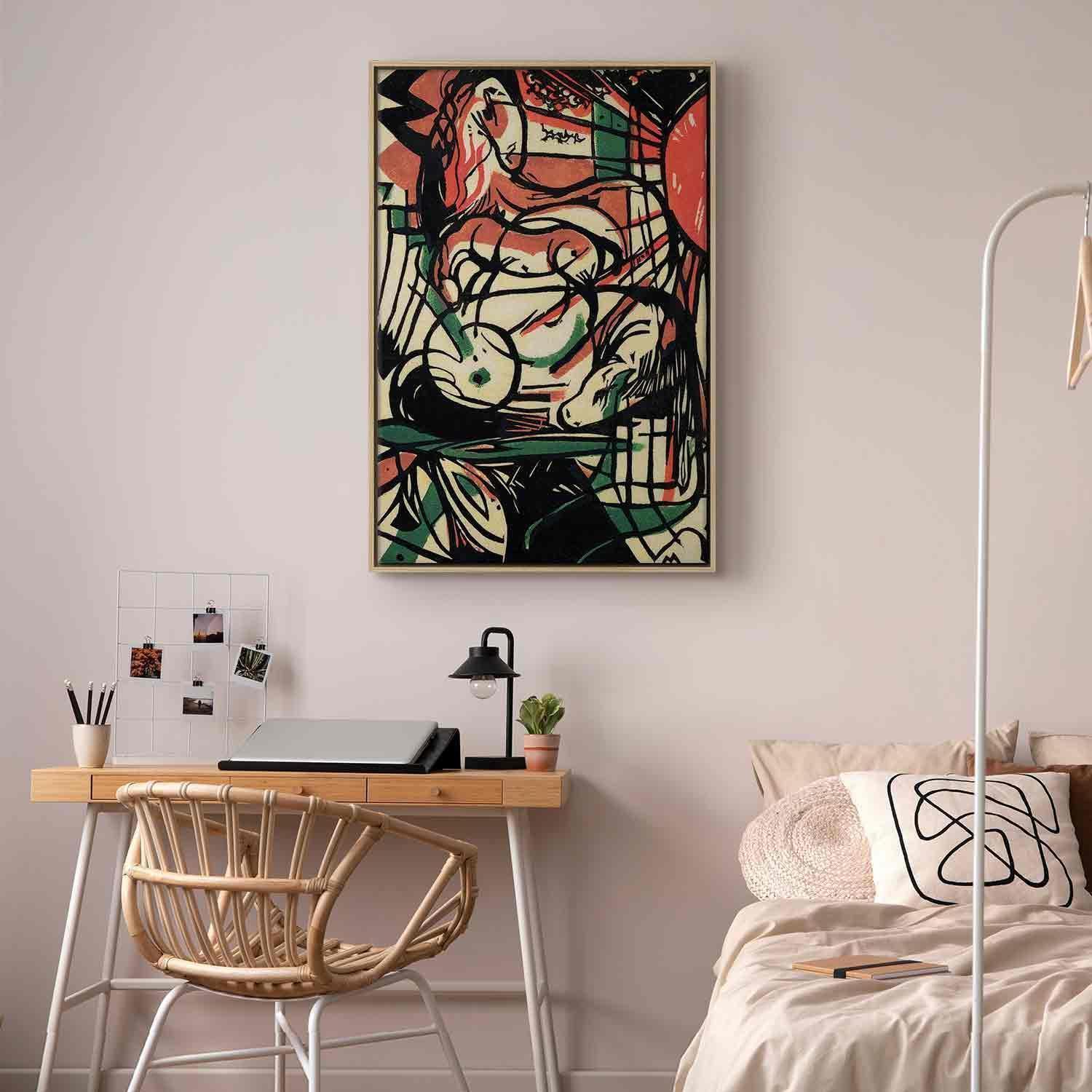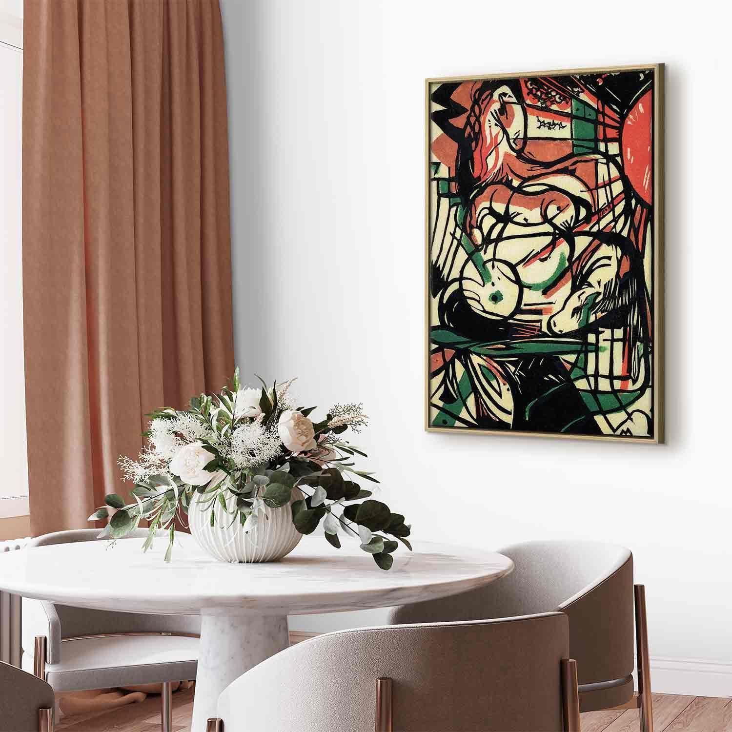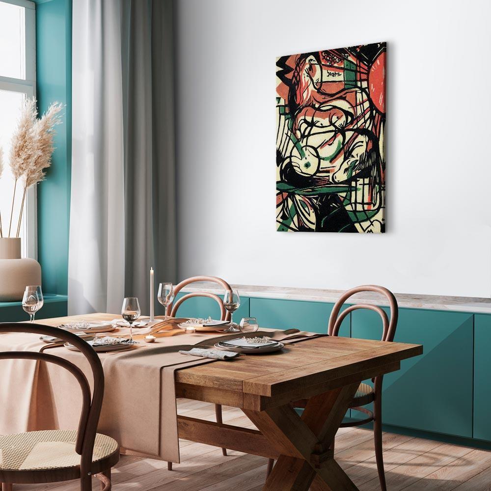 Unsere Bilder sind sicher und geruchsneutral und eignen sich daher ideal für Kinderzimmer. Die Größe wird Ihr Kind sicher beeindrucken! Bilder für Schlafzimmer sind ein echter Blickfang, genauso wie Bilder Wohnzimmer. Dekorieren Sie die Wände in Ihrem privaten Bereich mit einem Bild "Leinwandbild - Franz Marc – The Birth of the Horse". Wir empfehlen Bilder für Schlafzimmer , die Sie beruhigen und in eine erholsame Stimmung versetzen. Bilder aus unserer Kollektion werden Ihrem Interieur eine außergewöhnliche Atmosphäre verleihen. Unabhängig vom Raum schaffen auch Kunst Bilder eine gemütliche Atmosphäre für die Gäste. Massive Holzrahmen unterstreichen den einzigartigen Charakter der Schlafzimmerbilder, und ein schneller und sicherer Versand ist ein weiterer Vorteil, der für diese Wanddekorationen spricht Leinwandbilder sind in fünf Varianten erhältlich, sodass jeder Kunde die perfekte Option für seine Bedürfnisse findet.Die Variante auf Strukturleinwand (Standard) ist eine universelle Dekoration, die das Haushaltsbudget nicht belastet.Für Liebhaber edler Materialien ist ein Druck auf italienischer Leinwand aus 100 % Baumwolle die ideale Wahl.Und für Fans der Malerei? Hier überzeugt die außergewöhnliche Premium-Print-Technik – ein Bild, das auf Strukturleinwand gedruckt und von Hand mit einer Schicht transparenten Gels überzogen wird, die die Pinselstriche eines Künstlers imitiert – ein „wie gemalt“-Effekt, aber zu einem günstigeren Preis.Die Variante im soliden Holzrahmen des Typs American Box mit Tiefeneffekt (zwei Rahmenfarben zur Auswahl, Motiv auf Strukturleinwand gedruckt) bietet eine klassische Lösung in neuer Form.Das Akustikbild (Druck auf Strukturleinwand mit einer zusätzlichen Schicht schallabsorbierendem Schaumstoff) ist dagegen ein Volltreffer für alle, die Ästhetik mit Funktionalität verbinden möchten.Zwar sind die beiden letzten Optionen nur für bestimmte Größen von einteiligen Bildern verfügbar, doch bei allen Varianten legen wir GRATIS die erforderliche Anzahl an Haken und Nägeln zur Montage bei.