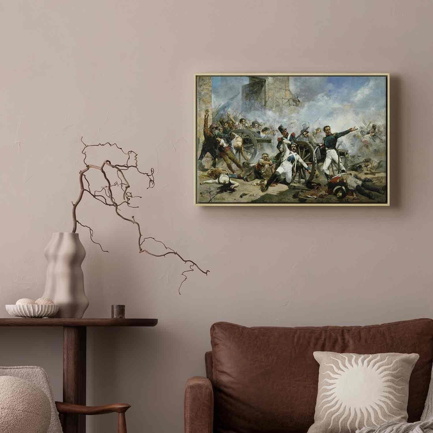 Unsere Bilder sind sicher und geruchsneutral und eignen sich daher ideal für Kinderzimmer. Die Größe wird Ihr Kind sicher beeindrucken! Bilder für Schlafzimmer sind ein echter Blickfang, genauso wie Bilder Wohnzimmer. Dekorieren Sie die Wände in Ihrem privaten Bereich mit einem Bild "Leinwandbild - Joaquín Sorolla y Bastida – The death of Pedro Velarde y Santillán during the defence of the Monteleon Artillery Barracks". Wir empfehlen Bilder für Schlafzimmer , die Sie beruhigen und in eine erholsame Stimmung versetzen. Bilder aus unserer Kollektion werden Ihrem Interieur eine außergewöhnliche Atmosphäre verleihen. Unabhängig vom Raum schaffen auch Kunst Bilder eine gemütliche Atmosphäre für die Gäste. Massive Holzrahmen unterstreichen den einzigartigen Charakter der Schlafzimmerbilder, und ein schneller und sicherer Versand ist ein weiterer Vorteil, der für diese Wanddekorationen spricht Leinwandbilder sind in fünf Varianten erhältlich, sodass jeder Kunde die perfekte Option für seine Bedürfnisse findet.Die Variante auf Strukturleinwand (Standard) ist eine universelle Dekoration, die das Haushaltsbudget nicht belastet.Für Liebhaber edler Materialien ist ein Druck auf italienischer Leinwand aus 100 % Baumwolle die ideale Wahl.Und für Fans der Malerei? Hier überzeugt die außergewöhnliche Premium-Print-Technik – ein Bild, das auf Strukturleinwand gedruckt und von Hand mit einer Schicht transparenten Gels überzogen wird, die die Pinselstriche eines Künstlers imitiert – ein „wie gemalt“-Effekt, aber zu einem günstigeren Preis.Die Variante im soliden Holzrahmen des Typs American Box mit Tiefeneffekt (zwei Rahmenfarben zur Auswahl, Motiv auf Strukturleinwand gedruckt) bietet eine klassische Lösung in neuer Form.Das Akustikbild (Druck auf Strukturleinwand mit einer zusätzlichen Schicht schallabsorbierendem Schaumstoff) ist dagegen ein Volltreffer für alle, die Ästhetik mit Funktionalität verbinden möchten.Zwar sind die beiden letzten Optionen nur für bestimmte Größen von einteiligen Bildern verfügbar, doch bei allen Varianten legen wir GRATIS die erforderliche Anzahl an Haken und Nägeln zur Montage bei.