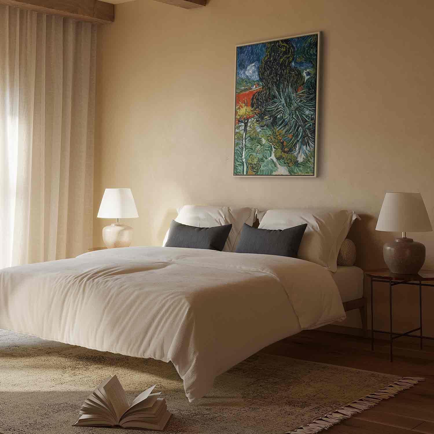 Unsere Bilder sind sicher und geruchsneutral und eignen sich daher ideal für Kinderzimmer. Die Größe wird Ihr Kind sicher beeindrucken! Bilder für Schlafzimmer sind ein echter Blickfang, genauso wie Bilder Wohnzimmer. Dekorieren Sie die Wände in Ihrem privaten Bereich mit einem Bild "Leinwandbild - Vincent Van Gogh – The Garden of Dr. Gachet in Auvers". Wir empfehlen Bilder für Schlafzimmer , die Sie beruhigen und in eine erholsame Stimmung versetzen. Bilder aus unserer Kollektion werden Ihrem Interieur eine außergewöhnliche Atmosphäre verleihen. Unabhängig vom Raum schaffen auch Kunst Bilder eine gemütliche Atmosphäre für die Gäste. Massive Holzrahmen unterstreichen den einzigartigen Charakter der Schlafzimmerbilder, und ein schneller und sicherer Versand ist ein weiterer Vorteil, der für diese Wanddekorationen spricht Leinwandbilder sind in fünf Varianten erhältlich, sodass jeder Kunde die perfekte Option für seine Bedürfnisse findet.Die Variante auf Strukturleinwand (Standard) ist eine universelle Dekoration, die das Haushaltsbudget nicht belastet.Für Liebhaber edler Materialien ist ein Druck auf italienischer Leinwand aus 100 % Baumwolle die ideale Wahl.Und für Fans der Malerei? Hier überzeugt die außergewöhnliche Premium-Print-Technik – ein Bild, das auf Strukturleinwand gedruckt und von Hand mit einer Schicht transparenten Gels überzogen wird, die die Pinselstriche eines Künstlers imitiert – ein „wie gemalt“-Effekt, aber zu einem günstigeren Preis.Die Variante im soliden Holzrahmen des Typs American Box mit Tiefeneffekt (zwei Rahmenfarben zur Auswahl, Motiv auf Strukturleinwand gedruckt) bietet eine klassische Lösung in neuer Form.Das Akustikbild (Druck auf Strukturleinwand mit einer zusätzlichen Schicht schallabsorbierendem Schaumstoff) ist dagegen ein Volltreffer für alle, die Ästhetik mit Funktionalität verbinden möchten.Zwar sind die beiden letzten Optionen nur für bestimmte Größen von einteiligen Bildern verfügbar, doch bei allen Varianten legen wir GRATIS die erforderliche Anzahl an Haken und Nägeln zur Montage bei.