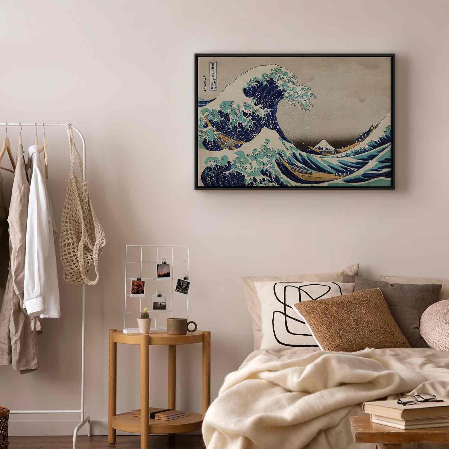 Unsere Bilder sind sicher und geruchsneutral und eignen sich daher ideal für Kinderzimmer. Die Größe wird Ihr Kind sicher beeindrucken! Bilder für Schlafzimmer sind ein echter Blickfang, genauso wie Bilder Wohnzimmer. Dekorieren Sie die Wände in Ihrem privaten Bereich mit einem Bild "Leinwandbild - Hokusai Katsushika – The Great Wave off Kanagawa". Wir empfehlen Bilder für Schlafzimmer , die Sie beruhigen und in eine erholsame Stimmung versetzen. Bilder aus unserer Kollektion werden Ihrem Interieur eine außergewöhnliche Atmosphäre verleihen. Unabhängig vom Raum schaffen auch Kunst Bilder eine gemütliche Atmosphäre für die Gäste. Massive Holzrahmen unterstreichen den einzigartigen Charakter der Schlafzimmerbilder, und ein schneller und sicherer Versand ist ein weiterer Vorteil, der für diese Wanddekorationen spricht Leinwandbilder sind in fünf Varianten erhältlich, sodass jeder Kunde die perfekte Option für seine Bedürfnisse findet.Die Variante auf Strukturleinwand (Standard) ist eine universelle Dekoration, die das Haushaltsbudget nicht belastet.Für Liebhaber edler Materialien ist ein Druck auf italienischer Leinwand aus 100 % Baumwolle die ideale Wahl.Und für Fans der Malerei? Hier überzeugt die außergewöhnliche Premium-Print-Technik – ein Bild, das auf Strukturleinwand gedruckt und von Hand mit einer Schicht transparenten Gels überzogen wird, die die Pinselstriche eines Künstlers imitiert – ein „wie gemalt“-Effekt, aber zu einem günstigeren Preis.Die Variante im soliden Holzrahmen des Typs American Box mit Tiefeneffekt (zwei Rahmenfarben zur Auswahl, Motiv auf Strukturleinwand gedruckt) bietet eine klassische Lösung in neuer Form.Das Akustikbild (Druck auf Strukturleinwand mit einer zusätzlichen Schicht schallabsorbierendem Schaumstoff) ist dagegen ein Volltreffer für alle, die Ästhetik mit Funktionalität verbinden möchten.Zwar sind die beiden letzten Optionen nur für bestimmte Größen von einteiligen Bildern verfügbar, doch bei allen Varianten legen wir GRATIS die erforderliche Anzahl an Haken und Nägeln zur Montage bei.