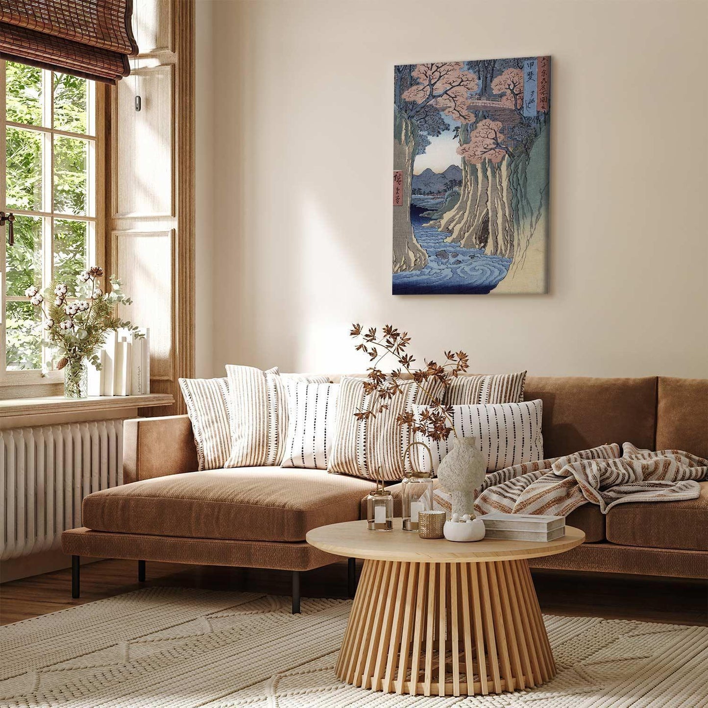Unsere Bilder sind sicher und geruchsneutral und eignen sich daher ideal für Kinderzimmer. Die Größe wird Ihr Kind sicher beeindrucken! Bilder für Schlafzimmer sind ein echter Blickfang, genauso wie Bilder Wohnzimmer. Dekorieren Sie die Wände in Ihrem privaten Bereich mit einem Bild "Leinwandbild - The monkey bridge in the Kai province from the series 'Rokuju-yoshu Meisho zue' (Utagawa Hiroshige)". Wir empfehlen Bilder für Schlafzimmer, die Sie beruhigen und in eine erholsame Stimmung versetzen. Bilder aus unserer Kollektion werden Ihrem Interieur eine außergewöhnliche Atmosphäre verleihen. Unabhängig vom Raum schaffen auch Kunst Bilder eine gemütliche Atmosphäre für die Gäste. Massive Holzrahmen unterstreichen den einzigartigen Charakter der Schlafzimmerbilder, und ein schneller und sicherer Versand ist ein weiterer Vorteil, der für diese Wanddekorationen spricht. Bilder auf Leinwand sind in vier Versionen erhältlich, aus denen jeder Kunde die perfekte Option für seine Bedürfnisse finden wird. Das Angebot umfasst eine Version auf Vliesleinwand (Standard), auf italienischer Leinwand, Premium Print (ein Bild, das auf italienischer Leinwand gedruckt und von Hand mit einer Schicht transparentem Gel überzogen ist, das die Pinselstriche des Künstlers imitiert) sowie in einem soliden, hölzernen American-Box-Rahmen (zwei Rahmenfarben zur Auswahl, Muster gedruckt auf italienischer Leinwand).