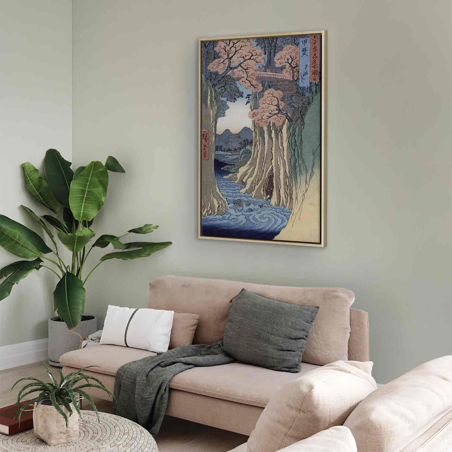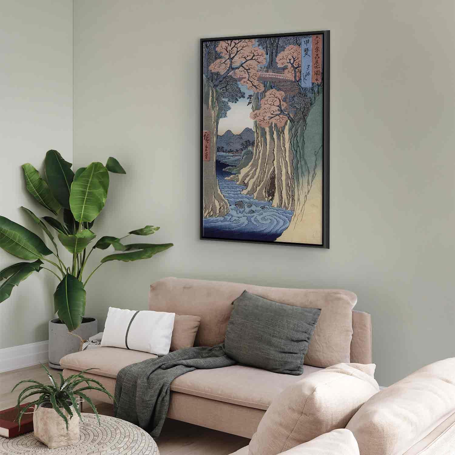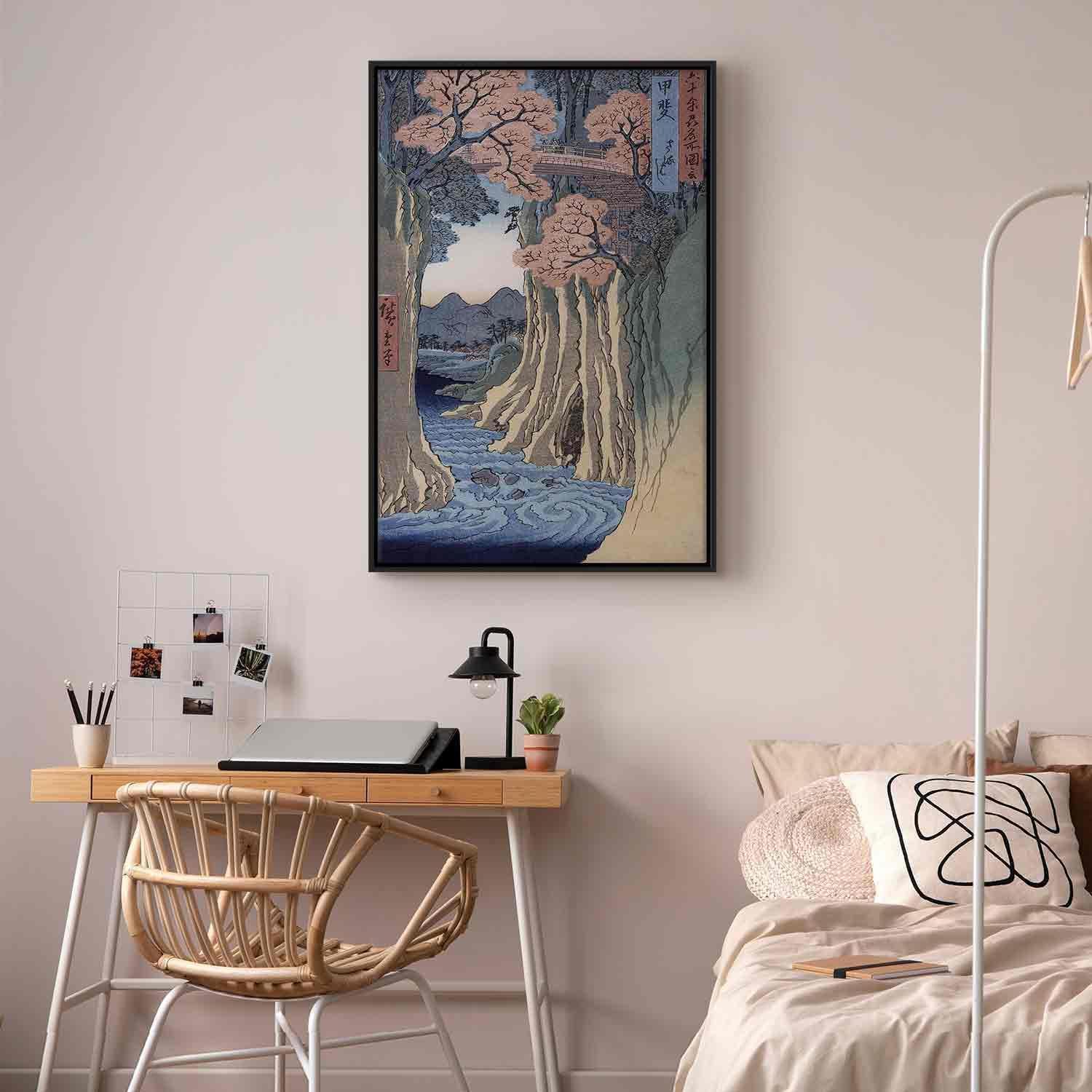 Unsere Bilder sind sicher und geruchsneutral und eignen sich daher ideal für Kinderzimmer. Die Größe wird Ihr Kind sicher beeindrucken! Bilder für Schlafzimmer sind ein echter Blickfang, genauso wie Bilder Wohnzimmer. Dekorieren Sie die Wände in Ihrem privaten Bereich mit einem Bild "Leinwandbild - Utagawa Hiroshige – The monkey bridge in the Kai province". Wir empfehlen Bilder für Schlafzimmer , die Sie beruhigen und in eine erholsame Stimmung versetzen. Bilder aus unserer Kollektion werden Ihrem Interieur eine außergewöhnliche Atmosphäre verleihen. Unabhängig vom Raum schaffen auch Kunst Bilder eine gemütliche Atmosphäre für die Gäste. Massive Holzrahmen unterstreichen den einzigartigen Charakter der Schlafzimmerbilder, und ein schneller und sicherer Versand ist ein weiterer Vorteil, der für diese Wanddekorationen spricht Leinwandbilder sind in fünf Varianten erhältlich, sodass jeder Kunde die perfekte Option für seine Bedürfnisse findet.Die Variante auf Strukturleinwand (Standard) ist eine universelle Dekoration, die das Haushaltsbudget nicht belastet.Für Liebhaber edler Materialien ist ein Druck auf italienischer Leinwand aus 100 % Baumwolle die ideale Wahl.Und für Fans der Malerei? Hier überzeugt die außergewöhnliche Premium-Print-Technik – ein Bild, das auf Strukturleinwand gedruckt und von Hand mit einer Schicht transparenten Gels überzogen wird, die die Pinselstriche eines Künstlers imitiert – ein „wie gemalt“-Effekt, aber zu einem günstigeren Preis.Die Variante im soliden Holzrahmen des Typs American Box mit Tiefeneffekt (zwei Rahmenfarben zur Auswahl, Motiv auf Strukturleinwand gedruckt) bietet eine klassische Lösung in neuer Form.Das Akustikbild (Druck auf Strukturleinwand mit einer zusätzlichen Schicht schallabsorbierendem Schaumstoff) ist dagegen ein Volltreffer für alle, die Ästhetik mit Funktionalität verbinden möchten.Zwar sind die beiden letzten Optionen nur für bestimmte Größen von einteiligen Bildern verfügbar, doch bei allen Varianten legen wir GRATIS die erforderliche Anzahl an Haken und Nägeln zur Montage bei.