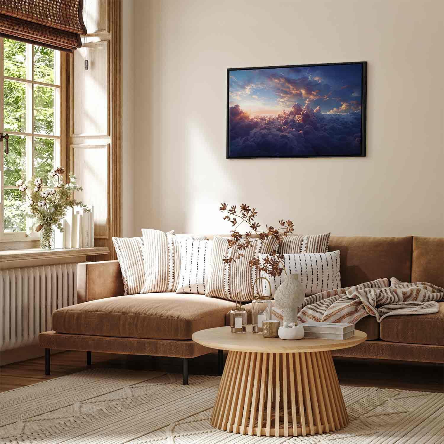 Unsere Bilder sind sicher und geruchsneutral und eignen sich daher ideal für Kinderzimmer. Die Größe wird Ihr Kind sicher beeindrucken! Bilder für Schlafzimmer sind ein echter Blickfang, genauso wie Bilder Wohnzimmer. Dekorieren Sie die Wände in Ihrem privaten Bereich mit einem Bild "Leinwandbild - The Sun in Hiding: The Golden Face of the Sky Over a Cloudy Sea". Wir empfehlen Bilder für Schlafzimmer , die Sie beruhigen und in eine erholsame Stimmung versetzen. Bilder aus unserer Kollektion werden Ihrem Interieur eine außergewöhnliche Atmosphäre verleihen. Unabhängig vom Raum schaffen auch Kunst Bilder eine gemütliche Atmosphäre für die Gäste. Massive Holzrahmen unterstreichen den einzigartigen Charakter der Schlafzimmerbilder, und ein schneller und sicherer Versand ist ein weiterer Vorteil, der für diese Wanddekorationen spricht Leinwandbilder sind in fünf Varianten erhältlich, sodass jeder Kunde die perfekte Option für seine Bedürfnisse findet.Die Variante auf Strukturleinwand (Standard) ist eine universelle Dekoration, die das Haushaltsbudget nicht belastet.Für Liebhaber edler Materialien ist ein Druck auf italienischer Leinwand aus 100 % Baumwolle die ideale Wahl.Und für Fans der Malerei? Hier überzeugt die außergewöhnliche Premium-Print-Technik – ein Bild, das auf Strukturleinwand gedruckt und von Hand mit einer Schicht transparenten Gels überzogen wird, die die Pinselstriche eines Künstlers imitiert – ein „wie gemalt“-Effekt, aber zu einem günstigeren Preis.Die Variante im soliden Holzrahmen des Typs American Box mit Tiefeneffekt (zwei Rahmenfarben zur Auswahl, Motiv auf Strukturleinwand gedruckt) bietet eine klassische Lösung in neuer Form.Das Akustikbild (Druck auf Strukturleinwand mit einer zusätzlichen Schicht schallabsorbierendem Schaumstoff) ist dagegen ein Volltreffer für alle, die Ästhetik mit Funktionalität verbinden möchten.Zwar sind die beiden letzten Optionen nur für bestimmte Größen von einteiligen Bildern verfügbar, doch bei allen Varianten legen wir GRATIS die erforderliche Anzahl an Haken und Nägeln zur Montage bei.