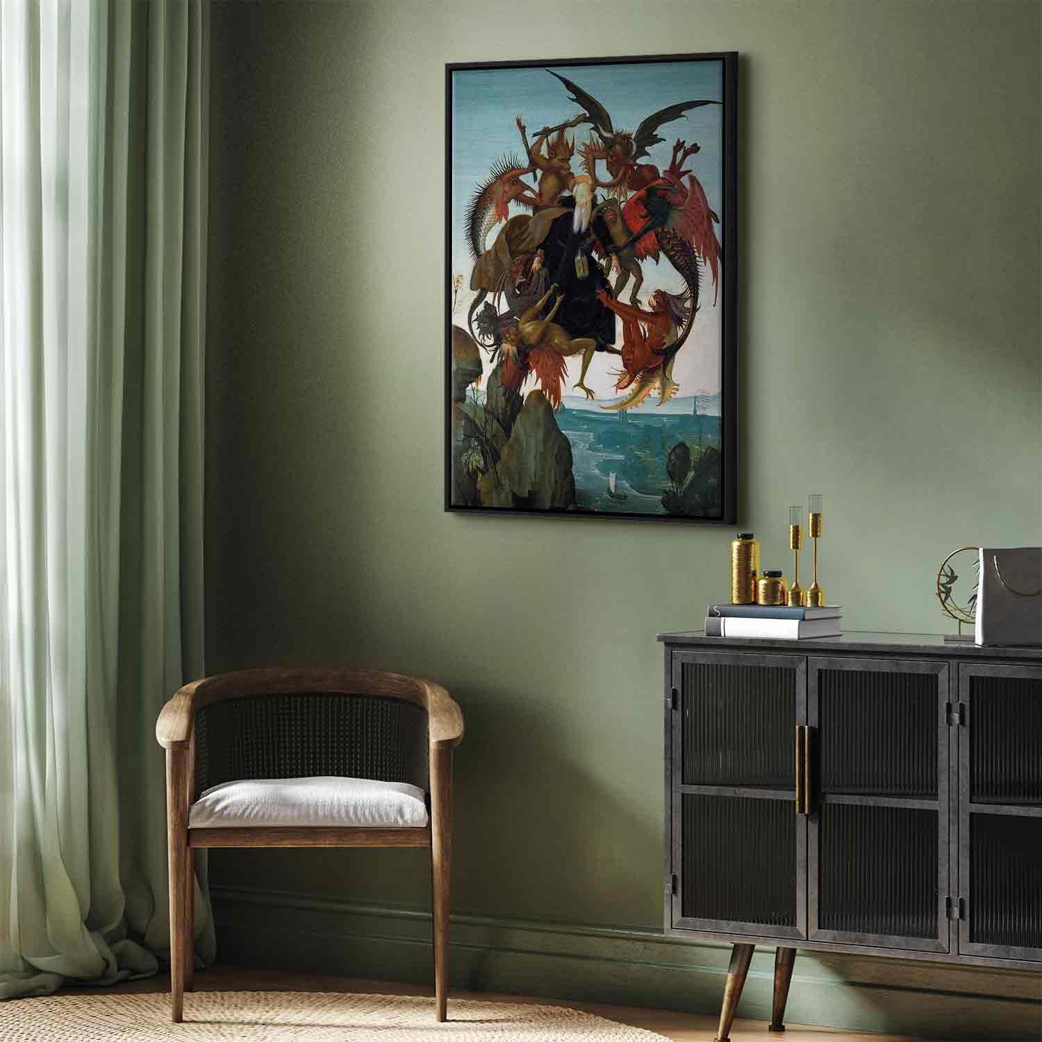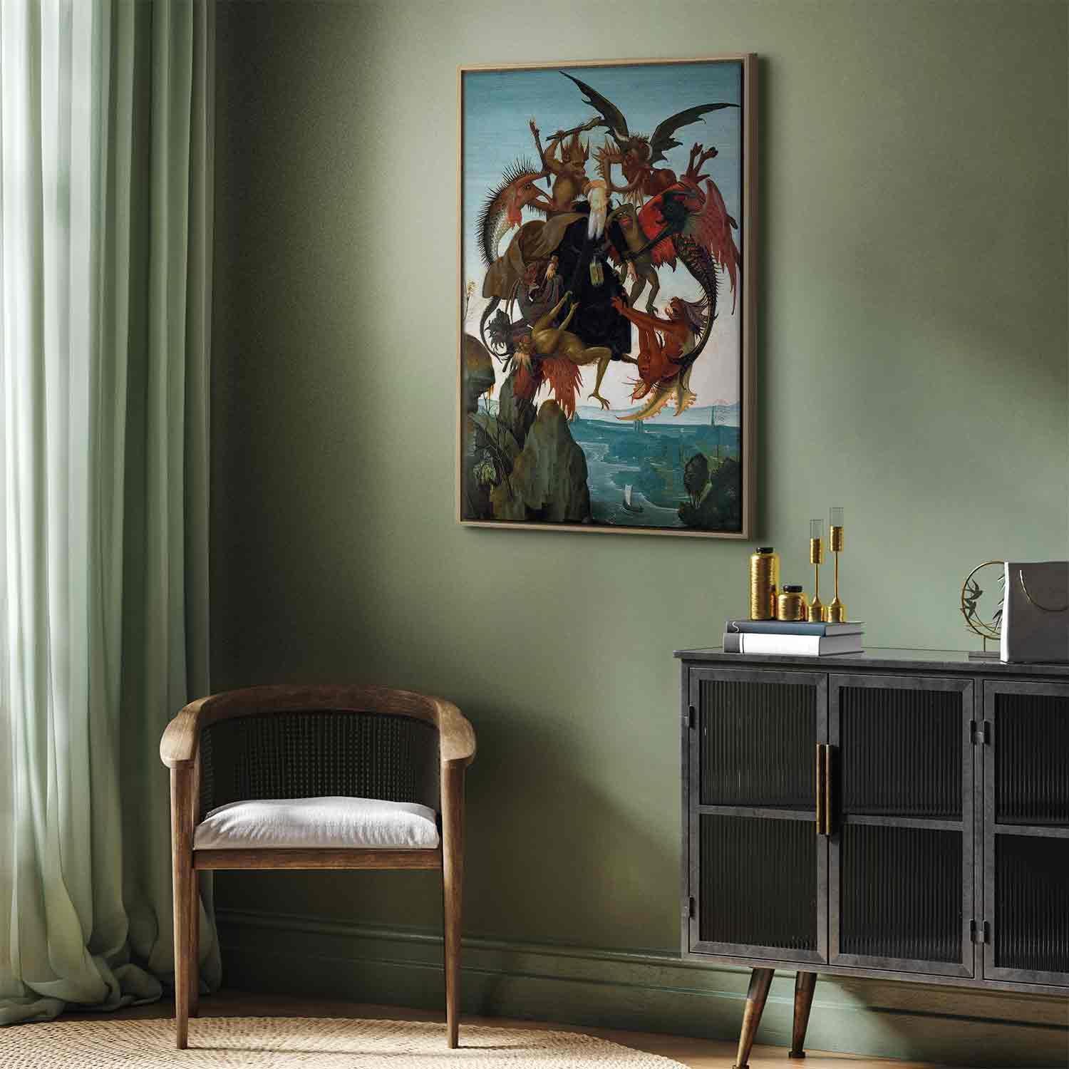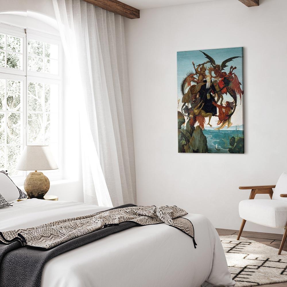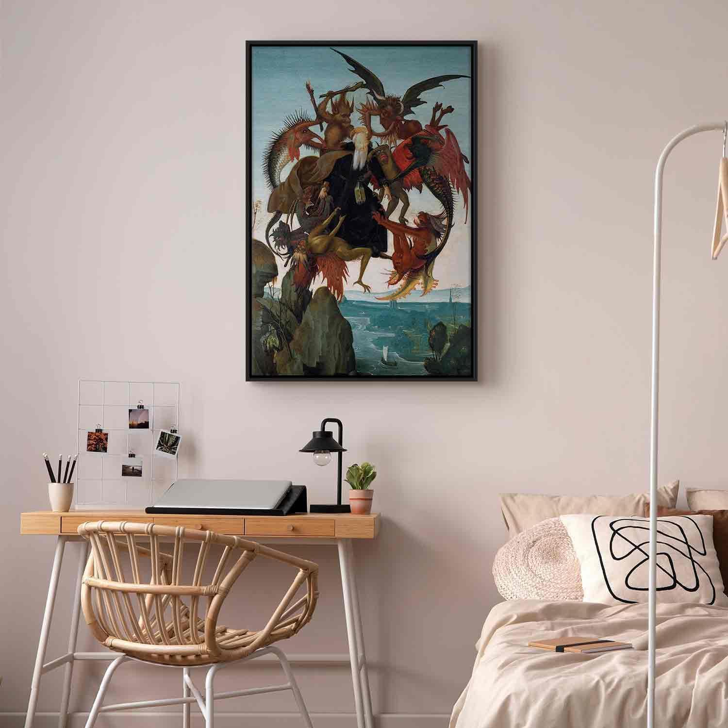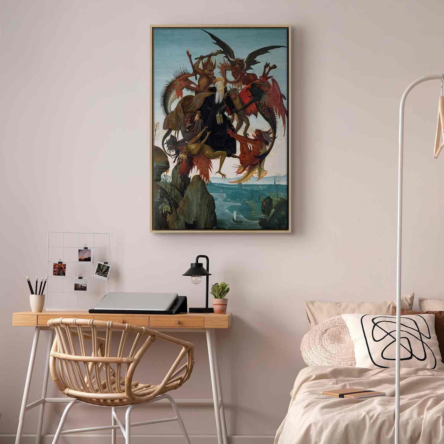 Unsere Bilder sind sicher und geruchsneutral und eignen sich daher ideal für Kinderzimmer. Die Größe wird Ihr Kind sicher beeindrucken! Bilder für Schlafzimmer sind ein echter Blickfang, genauso wie Bilder Wohnzimmer. Dekorieren Sie die Wände in Ihrem privaten Bereich mit einem Bild "Leinwandbild - Michelangelo – The Torment of Saint Anthony". Wir empfehlen Bilder für Schlafzimmer , die Sie beruhigen und in eine erholsame Stimmung versetzen. Bilder aus unserer Kollektion werden Ihrem Interieur eine außergewöhnliche Atmosphäre verleihen. Unabhängig vom Raum schaffen auch Kunst Bilder eine gemütliche Atmosphäre für die Gäste. Massive Holzrahmen unterstreichen den einzigartigen Charakter der Schlafzimmerbilder, und ein schneller und sicherer Versand ist ein weiterer Vorteil, der für diese Wanddekorationen spricht Leinwandbilder sind in fünf Varianten erhältlich, sodass jeder Kunde die perfekte Option für seine Bedürfnisse findet.Die Variante auf Strukturleinwand (Standard) ist eine universelle Dekoration, die das Haushaltsbudget nicht belastet.Für Liebhaber edler Materialien ist ein Druck auf italienischer Leinwand aus 100 % Baumwolle die ideale Wahl.Und für Fans der Malerei? Hier überzeugt die außergewöhnliche Premium-Print-Technik – ein Bild, das auf Strukturleinwand gedruckt und von Hand mit einer Schicht transparenten Gels überzogen wird, die die Pinselstriche eines Künstlers imitiert – ein „wie gemalt“-Effekt, aber zu einem günstigeren Preis.Die Variante im soliden Holzrahmen des Typs American Box mit Tiefeneffekt (zwei Rahmenfarben zur Auswahl, Motiv auf Strukturleinwand gedruckt) bietet eine klassische Lösung in neuer Form.Das Akustikbild (Druck auf Strukturleinwand mit einer zusätzlichen Schicht schallabsorbierendem Schaumstoff) ist dagegen ein Volltreffer für alle, die Ästhetik mit Funktionalität verbinden möchten.Zwar sind die beiden letzten Optionen nur für bestimmte Größen von einteiligen Bildern verfügbar, doch bei allen Varianten legen wir GRATIS die erforderliche Anzahl an Haken und Nägeln zur Montage bei.