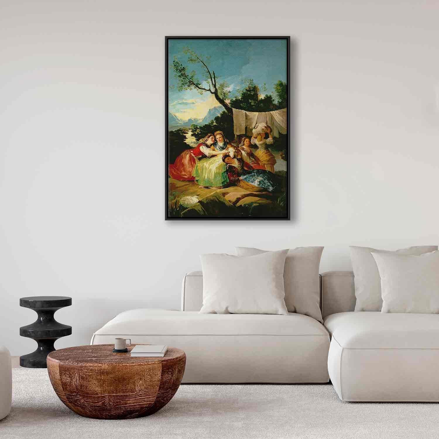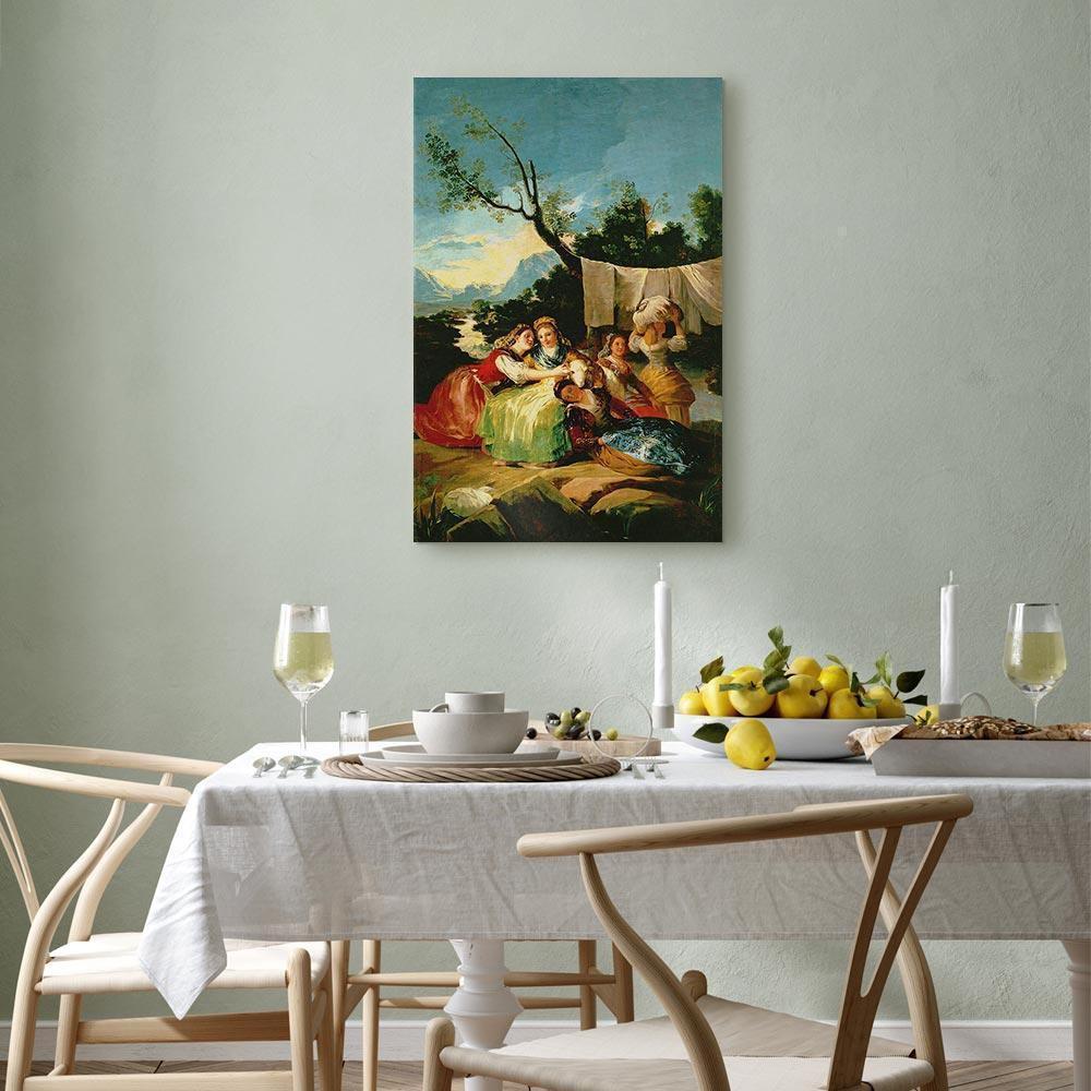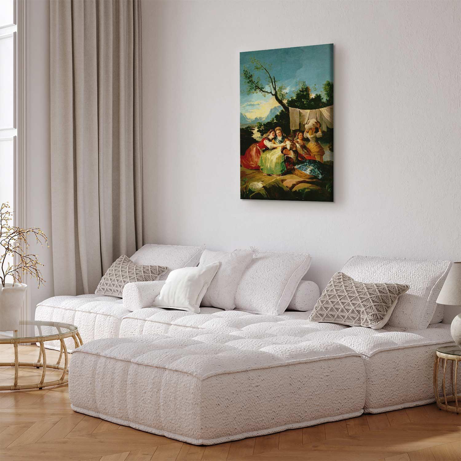 Unsere Bilder sind sicher und geruchsneutral und eignen sich daher ideal für Kinderzimmer. Die Größe wird Ihr Kind sicher beeindrucken! Bilder für Schlafzimmer sind ein echter Blickfang, genauso wie Bilder Wohnzimmer. Dekorieren Sie die Wände in Ihrem privaten Bereich mit einem Bild "Leinwandbild - Francisco Goya – The Washerwomen". Wir empfehlen Bilder für Schlafzimmer , die Sie beruhigen und in eine erholsame Stimmung versetzen. Bilder aus unserer Kollektion werden Ihrem Interieur eine außergewöhnliche Atmosphäre verleihen. Unabhängig vom Raum schaffen auch Kunst Bilder eine gemütliche Atmosphäre für die Gäste. Massive Holzrahmen unterstreichen den einzigartigen Charakter der Schlafzimmerbilder, und ein schneller und sicherer Versand ist ein weiterer Vorteil, der für diese Wanddekorationen spricht Leinwandbilder sind in fünf Varianten erhältlich, sodass jeder Kunde die perfekte Option für seine Bedürfnisse findet.Die Variante auf Strukturleinwand (Standard) ist eine universelle Dekoration, die das Haushaltsbudget nicht belastet.Für Liebhaber edler Materialien ist ein Druck auf italienischer Leinwand aus 100 % Baumwolle die ideale Wahl.Und für Fans der Malerei? Hier überzeugt die außergewöhnliche Premium-Print-Technik – ein Bild, das auf Strukturleinwand gedruckt und von Hand mit einer Schicht transparenten Gels überzogen wird, die die Pinselstriche eines Künstlers imitiert – ein „wie gemalt“-Effekt, aber zu einem günstigeren Preis.Die Variante im soliden Holzrahmen des Typs American Box mit Tiefeneffekt (zwei Rahmenfarben zur Auswahl, Motiv auf Strukturleinwand gedruckt) bietet eine klassische Lösung in neuer Form.Das Akustikbild (Druck auf Strukturleinwand mit einer zusätzlichen Schicht schallabsorbierendem Schaumstoff) ist dagegen ein Volltreffer für alle, die Ästhetik mit Funktionalität verbinden möchten.Zwar sind die beiden letzten Optionen nur für bestimmte Größen von einteiligen Bildern verfügbar, doch bei allen Varianten legen wir GRATIS die erforderliche Anzahl an Haken und Nägeln zur Montage bei.