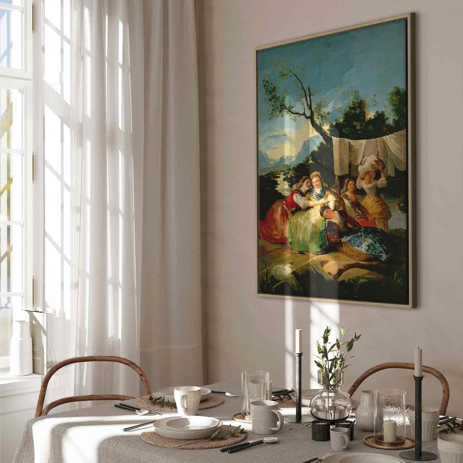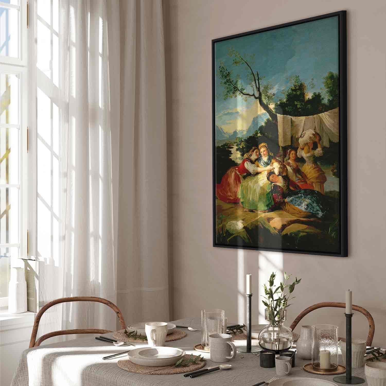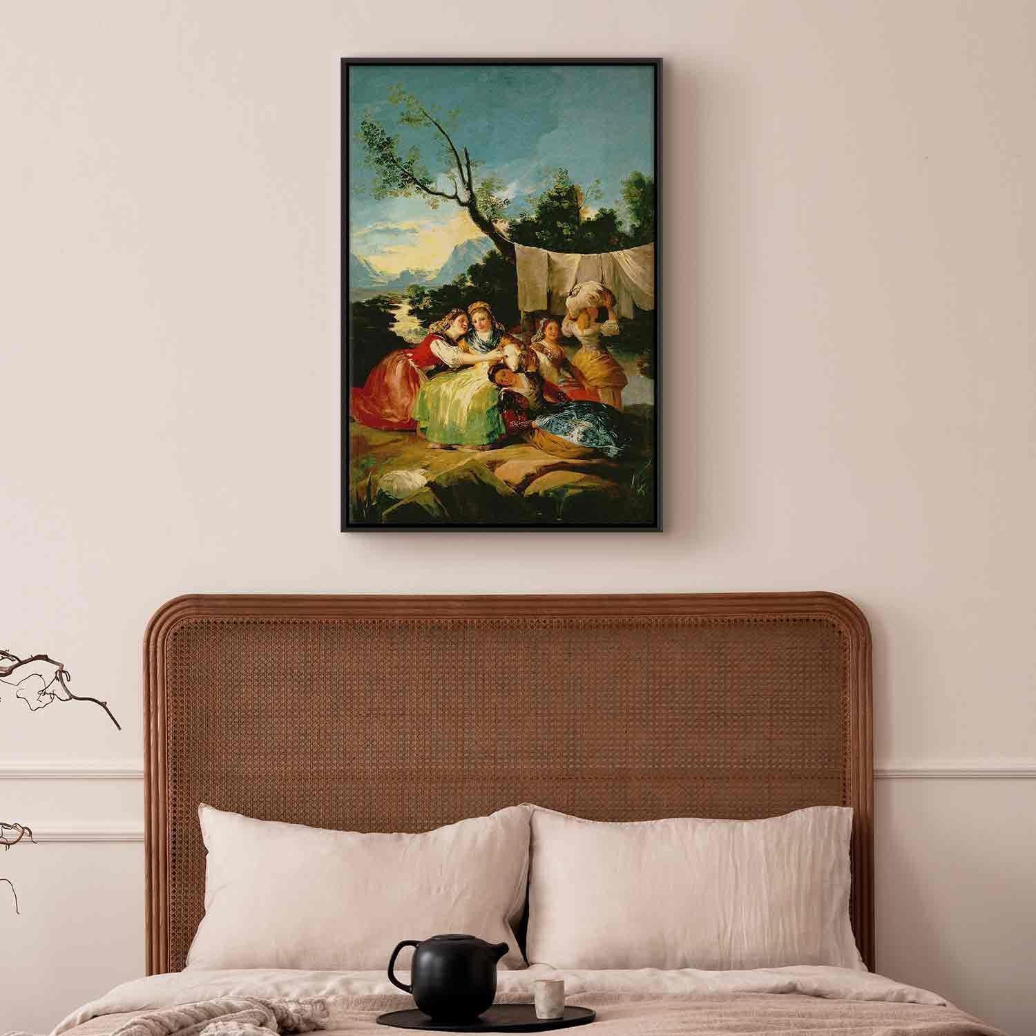 Unsere Bilder sind sicher und geruchsneutral und eignen sich daher ideal für Kinderzimmer. Die Größe wird Ihr Kind sicher beeindrucken! Bilder für Schlafzimmer sind ein echter Blickfang, genauso wie Bilder Wohnzimmer. Dekorieren Sie die Wände in Ihrem privaten Bereich mit einem Bild "Leinwandbild - Francisco Goya – The Washerwomen". Wir empfehlen Bilder für Schlafzimmer , die Sie beruhigen und in eine erholsame Stimmung versetzen. Bilder aus unserer Kollektion werden Ihrem Interieur eine außergewöhnliche Atmosphäre verleihen. Unabhängig vom Raum schaffen auch Kunst Bilder eine gemütliche Atmosphäre für die Gäste. Massive Holzrahmen unterstreichen den einzigartigen Charakter der Schlafzimmerbilder, und ein schneller und sicherer Versand ist ein weiterer Vorteil, der für diese Wanddekorationen spricht Leinwandbilder sind in fünf Varianten erhältlich, sodass jeder Kunde die perfekte Option für seine Bedürfnisse findet.Die Variante auf Strukturleinwand (Standard) ist eine universelle Dekoration, die das Haushaltsbudget nicht belastet.Für Liebhaber edler Materialien ist ein Druck auf italienischer Leinwand aus 100 % Baumwolle die ideale Wahl.Und für Fans der Malerei? Hier überzeugt die außergewöhnliche Premium-Print-Technik – ein Bild, das auf Strukturleinwand gedruckt und von Hand mit einer Schicht transparenten Gels überzogen wird, die die Pinselstriche eines Künstlers imitiert – ein „wie gemalt“-Effekt, aber zu einem günstigeren Preis.Die Variante im soliden Holzrahmen des Typs American Box mit Tiefeneffekt (zwei Rahmenfarben zur Auswahl, Motiv auf Strukturleinwand gedruckt) bietet eine klassische Lösung in neuer Form.Das Akustikbild (Druck auf Strukturleinwand mit einer zusätzlichen Schicht schallabsorbierendem Schaumstoff) ist dagegen ein Volltreffer für alle, die Ästhetik mit Funktionalität verbinden möchten.Zwar sind die beiden letzten Optionen nur für bestimmte Größen von einteiligen Bildern verfügbar, doch bei allen Varianten legen wir GRATIS die erforderliche Anzahl an Haken und Nägeln zur Montage bei.