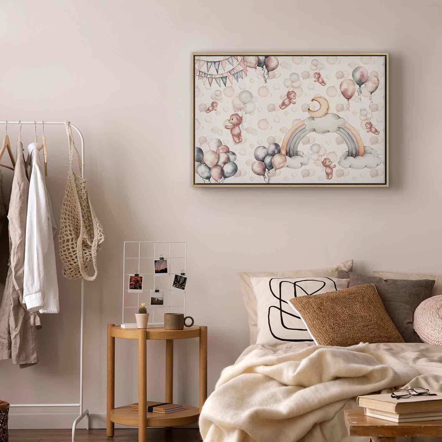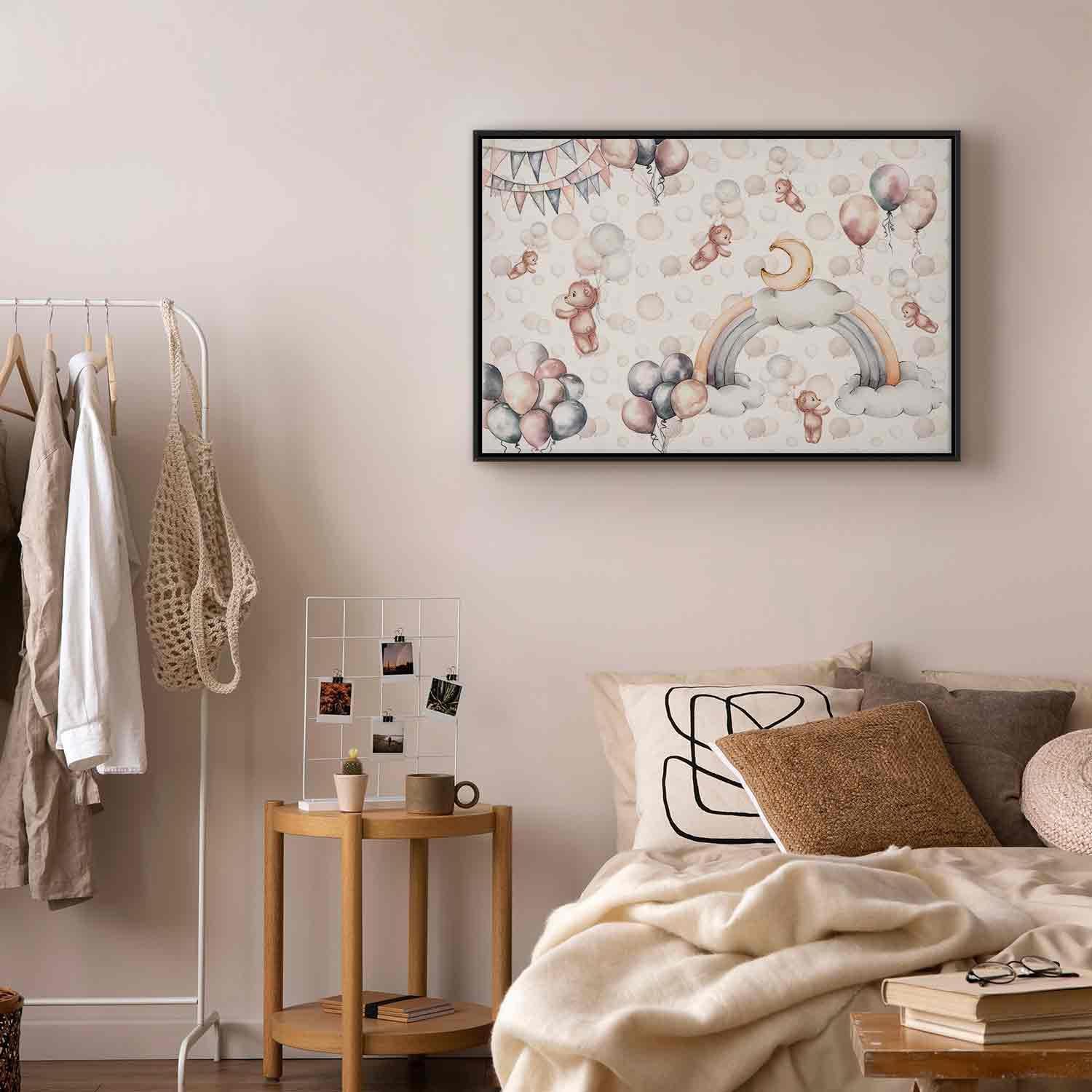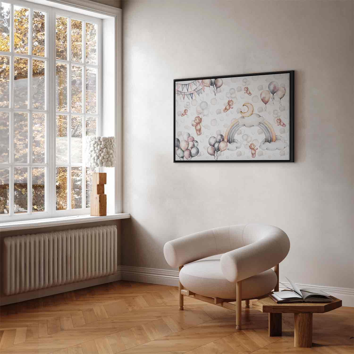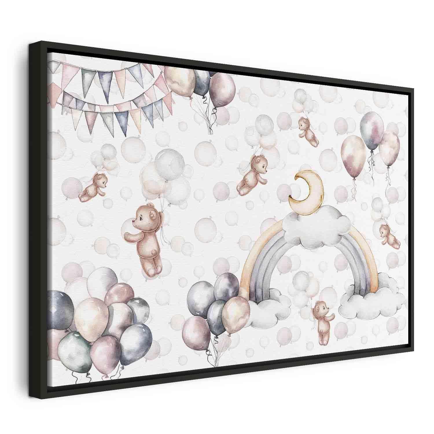 Unsere Bilder sind sicher und geruchsneutral und eignen sich daher ideal für Kinderzimmer. Die Größe wird Ihr Kind sicher beeindrucken! Bilder für Schlafzimmer sind ein echter Blickfang, genauso wie Bilder Wohnzimmer. Dekorieren Sie die Wände in Ihrem privaten Bereich mit einem Bild "Leinwandbild - Toy Bears with Balloons - Flying Plush Bears Among Balloons Clouds and Rainbows in Subtle Pastel Hues". Wir empfehlen Bilder für Schlafzimmer , die Sie beruhigen und in eine erholsame Stimmung versetzen. Bilder aus unserer Kollektion werden Ihrem Interieur eine außergewöhnliche Atmosphäre verleihen. Unabhängig vom Raum schaffen auch Kunst Bilder eine gemütliche Atmosphäre für die Gäste. Massive Holzrahmen unterstreichen den einzigartigen Charakter der Schlafzimmerbilder, und ein schneller und sicherer Versand ist ein weiterer Vorteil, der für diese Wanddekorationen spricht Leinwandbilder sind in fünf Varianten erhältlich, sodass jeder Kunde die perfekte Option für seine Bedürfnisse findet.Die Variante auf Strukturleinwand (Standard) ist eine universelle Dekoration, die das Haushaltsbudget nicht belastet.Für Liebhaber edler Materialien ist ein Druck auf italienischer Leinwand aus 100 % Baumwolle die ideale Wahl.Und für Fans der Malerei? Hier überzeugt die außergewöhnliche Premium-Print-Technik – ein Bild, das auf Strukturleinwand gedruckt und von Hand mit einer Schicht transparenten Gels überzogen wird, die die Pinselstriche eines Künstlers imitiert – ein „wie gemalt“-Effekt, aber zu einem günstigeren Preis.Die Variante im soliden Holzrahmen des Typs American Box mit Tiefeneffekt (zwei Rahmenfarben zur Auswahl, Motiv auf Strukturleinwand gedruckt) bietet eine klassische Lösung in neuer Form.Das Akustikbild (Druck auf Strukturleinwand mit einer zusätzlichen Schicht schallabsorbierendem Schaumstoff) ist dagegen ein Volltreffer für alle, die Ästhetik mit Funktionalität verbinden möchten.Zwar sind die beiden letzten Optionen nur für bestimmte Größen von einteiligen Bildern verfügbar, doch bei allen Varianten legen wir GRATIS die erforderliche Anzahl an Haken und Nägeln zur Montage bei.