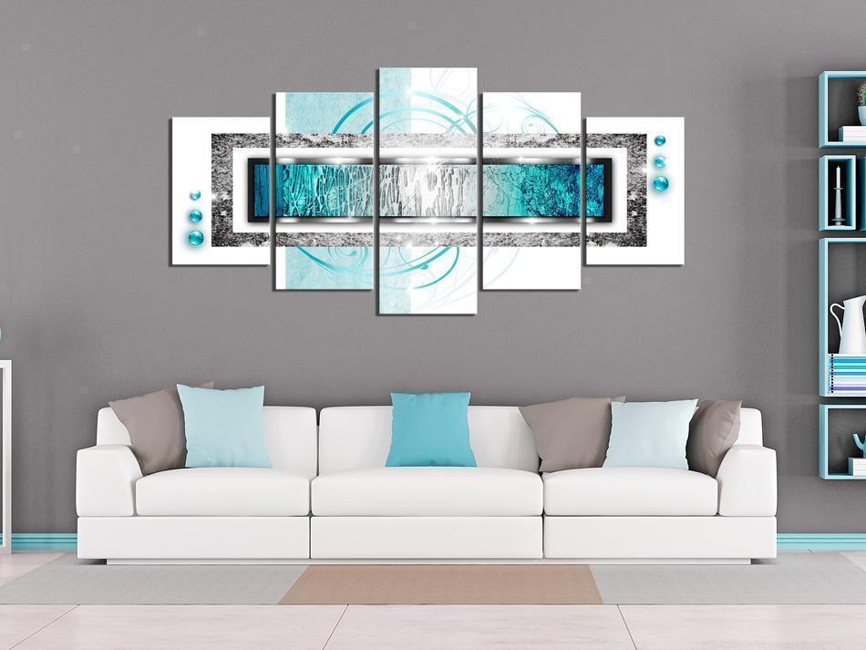 Leinwandbild „Türkiser Schneesturm“ – Abstrakte Eleganz in kühlen Farben