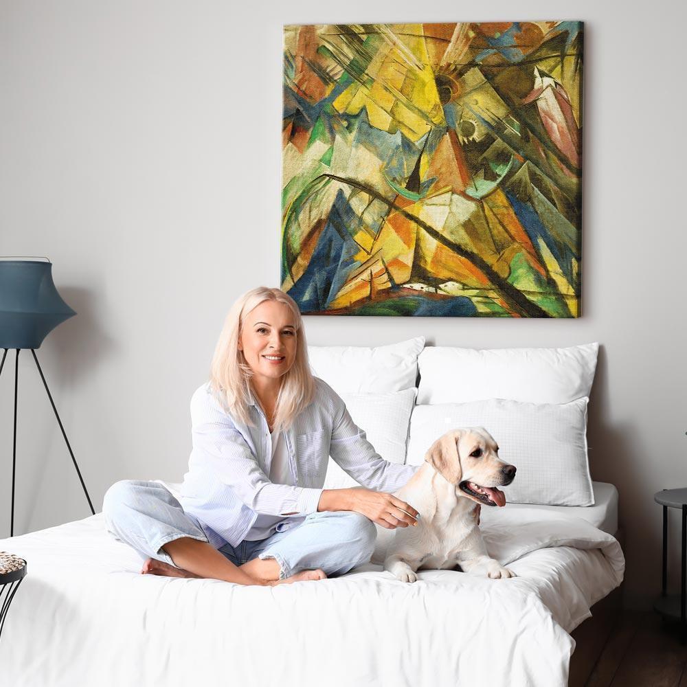 Unsere Bilder sind sicher und geruchsneutral und eignen sich daher ideal für Kinderzimmer. Die Größe wird Ihr Kind sicher beeindrucken! Bilder für Schlafzimmer sind ein echter Blickfang, genauso wie Bilder Wohnzimmer. Dekorieren Sie die Wände in Ihrem privaten Bereich mit einem Bild "Leinwandbild - Franz Marc – Tirol". Wir empfehlen Bilder für Schlafzimmer , die Sie beruhigen und in eine erholsame Stimmung versetzen. Bilder aus unserer Kollektion werden Ihrem Interieur eine außergewöhnliche Atmosphäre verleihen. Unabhängig vom Raum schaffen auch Kunst Bilder eine gemütliche Atmosphäre für die Gäste. Massive Holzrahmen unterstreichen den einzigartigen Charakter der Schlafzimmerbilder, und ein schneller und sicherer Versand ist ein weiterer Vorteil, der für diese Wanddekorationen spricht Leinwandbilder sind in fünf Varianten erhältlich, sodass jeder Kunde die perfekte Option für seine Bedürfnisse findet.Die Variante auf Strukturleinwand (Standard) ist eine universelle Dekoration, die das Haushaltsbudget nicht belastet.Für Liebhaber edler Materialien ist ein Druck auf italienischer Leinwand aus 100 % Baumwolle die ideale Wahl.Und für Fans der Malerei? Hier überzeugt die außergewöhnliche Premium-Print-Technik – ein Bild, das auf Strukturleinwand gedruckt und von Hand mit einer Schicht transparenten Gels überzogen wird, die die Pinselstriche eines Künstlers imitiert – ein „wie gemalt“-Effekt, aber zu einem günstigeren Preis.Die Variante im soliden Holzrahmen des Typs American Box mit Tiefeneffekt (zwei Rahmenfarben zur Auswahl, Motiv auf Strukturleinwand gedruckt) bietet eine klassische Lösung in neuer Form.Das Akustikbild (Druck auf Strukturleinwand mit einer zusätzlichen Schicht schallabsorbierendem Schaumstoff) ist dagegen ein Volltreffer für alle, die Ästhetik mit Funktionalität verbinden möchten.Zwar sind die beiden letzten Optionen nur für bestimmte Größen von einteiligen Bildern verfügbar, doch bei allen Varianten legen wir GRATIS die erforderliche Anzahl an Haken und Nägeln zur Montage bei.