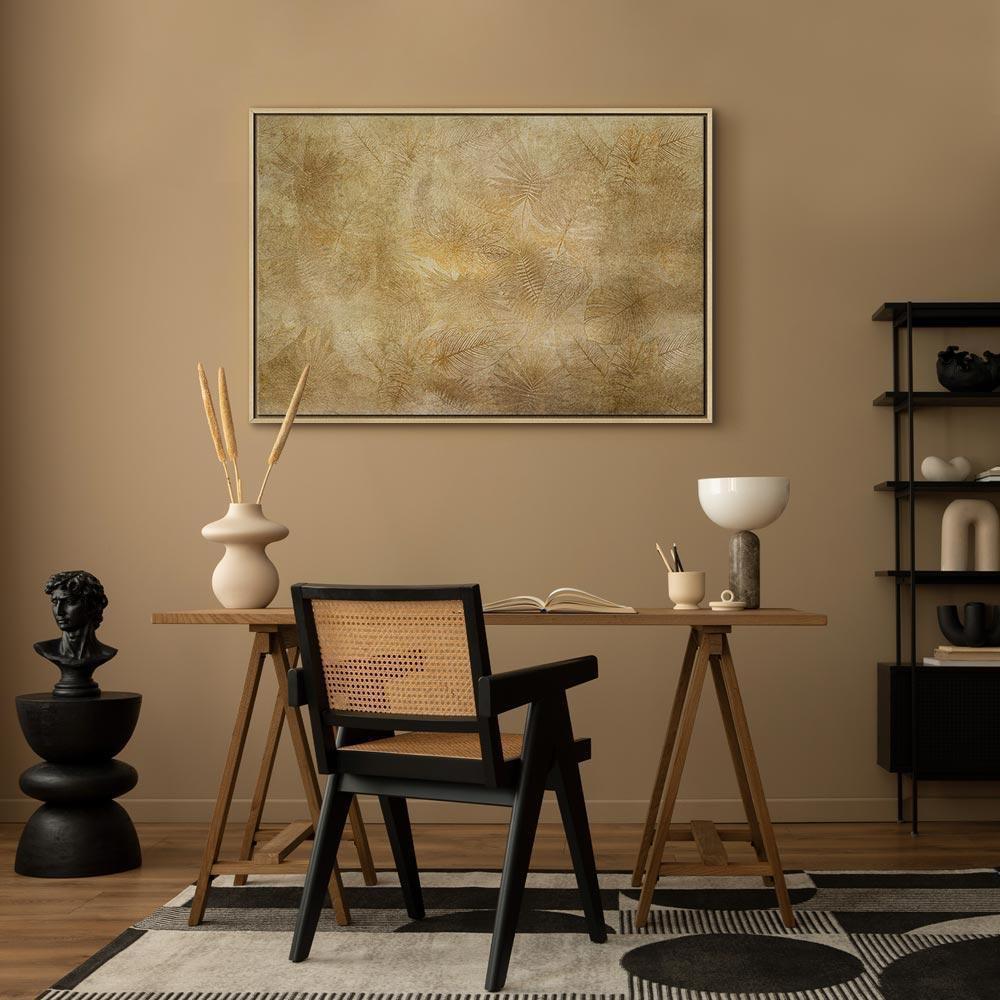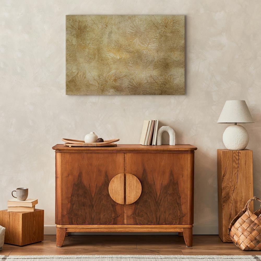 Unsere Bilder sind sicher und geruchsneutral und eignen sich daher ideal für Kinderzimmer. Die Größe wird Ihr Kind sicher beeindrucken! Bilder für Schlafzimmer sind ein echter Blickfang, genauso wie Bilder Wohnzimmer. Dekorieren Sie die Wände in Ihrem privaten Bereich mit einem Bild "Leinwandbild - Vintage Leaves (1 Part) Wide". Wir empfehlen Bilder für Schlafzimmer , die Sie beruhigen und in eine erholsame Stimmung versetzen. Bilder aus unserer Kollektion werden Ihrem Interieur eine außergewöhnliche Atmosphäre verleihen. Unabhängig vom Raum schaffen auch Kunst Bilder eine gemütliche Atmosphäre für die Gäste. Massive Holzrahmen unterstreichen den einzigartigen Charakter der Schlafzimmerbilder, und ein schneller und sicherer Versand ist ein weiterer Vorteil, der für diese Wanddekorationen spricht Leinwandbilder sind in fünf Varianten erhältlich, sodass jeder Kunde die perfekte Option für seine Bedürfnisse findet.Die Variante auf Strukturleinwand (Standard) ist eine universelle Dekoration, die das Haushaltsbudget nicht belastet.Für Liebhaber edler Materialien ist ein Druck auf italienischer Leinwand aus 100 % Baumwolle die ideale Wahl.Und für Fans der Malerei? Hier überzeugt die außergewöhnliche Premium-Print-Technik – ein Bild, das auf Strukturleinwand gedruckt und von Hand mit einer Schicht transparenten Gels überzogen wird, die die Pinselstriche eines Künstlers imitiert – ein „wie gemalt“-Effekt, aber zu einem günstigeren Preis.Die Variante im soliden Holzrahmen des Typs American Box mit Tiefeneffekt (zwei Rahmenfarben zur Auswahl, Motiv auf Strukturleinwand gedruckt) bietet eine klassische Lösung in neuer Form.Das Akustikbild (Druck auf Strukturleinwand mit einer zusätzlichen Schicht schallabsorbierendem Schaumstoff) ist dagegen ein Volltreffer für alle, die Ästhetik mit Funktionalität verbinden möchten.Zwar sind die beiden letzten Optionen nur für bestimmte Größen von einteiligen Bildern verfügbar, doch bei allen Varianten legen wir GRATIS die erforderliche Anzahl an Haken und Nägeln zur Montage bei.