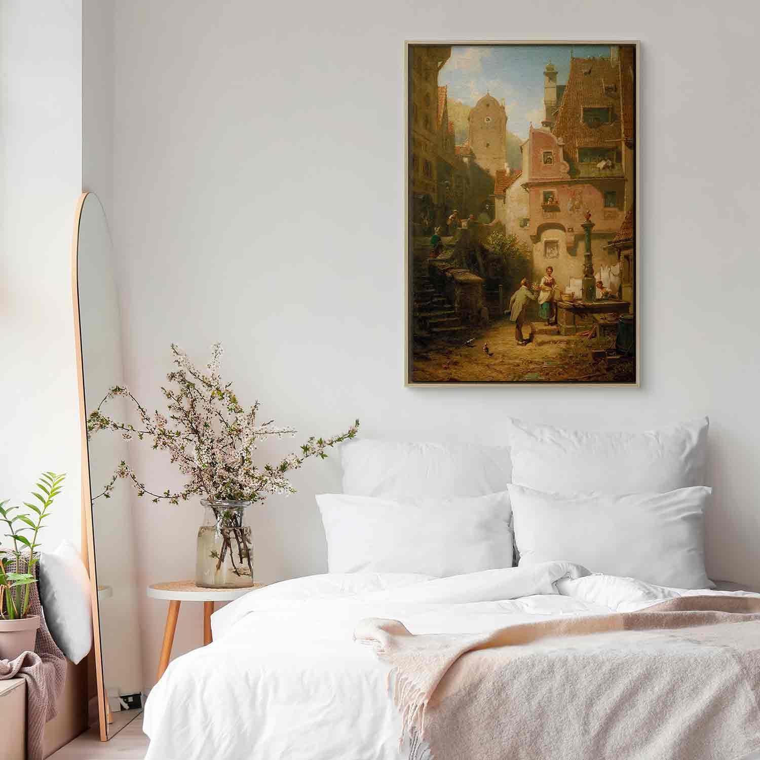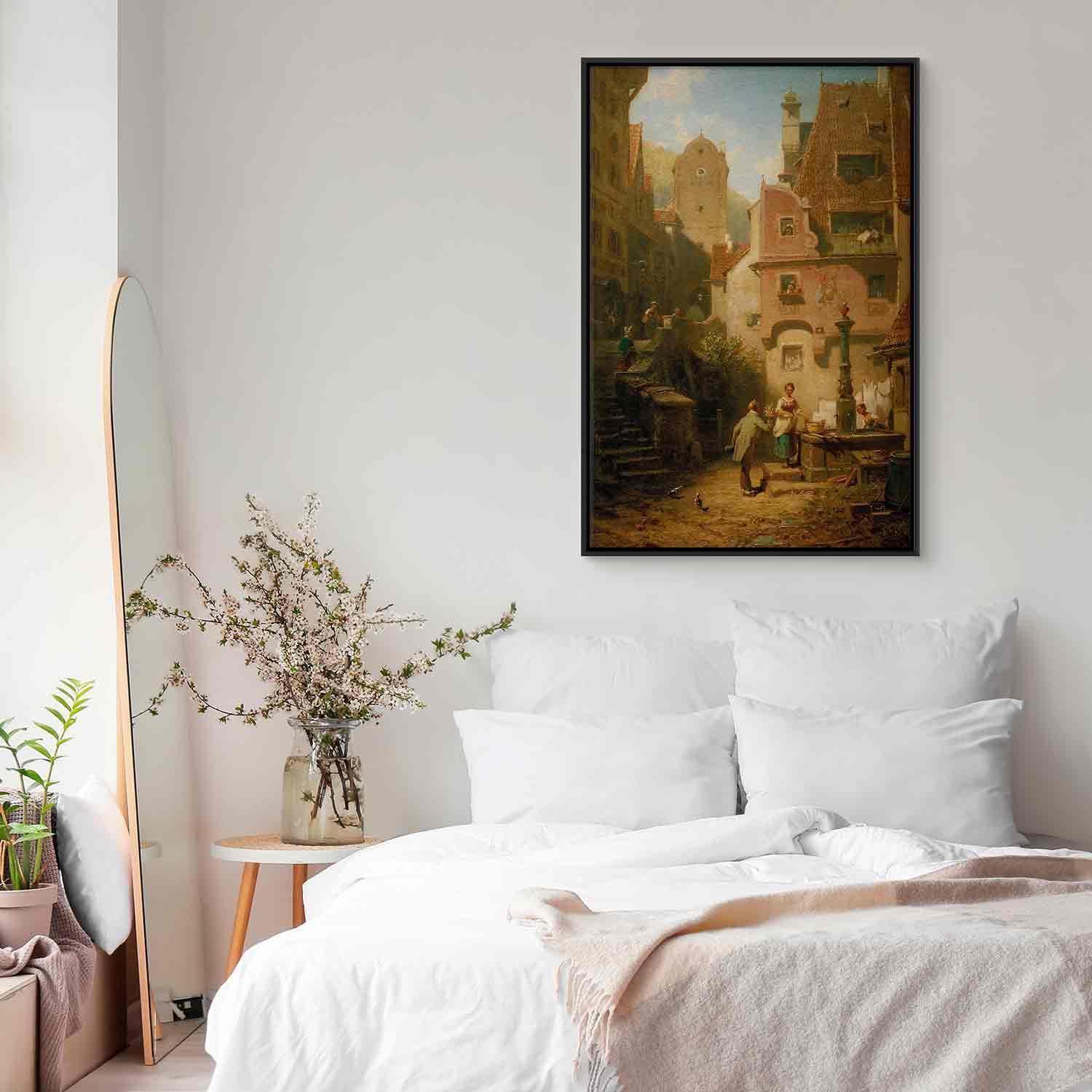 Unsere Bilder sind sicher und geruchsneutral und eignen sich daher ideal für Kinderzimmer. Die Größe wird Ihr Kind sicher beeindrucken! Bilder für Schlafzimmer sind ein echter Blickfang, genauso wie Bilder Wohnzimmer. Dekorieren Sie die Wände in Ihrem privaten Bereich mit einem Bild "Leinwandbild - Carl Spitzweg – Well-Wisher Presenting Flowers". Wir empfehlen Bilder für Schlafzimmer , die Sie beruhigen und in eine erholsame Stimmung versetzen. Bilder aus unserer Kollektion werden Ihrem Interieur eine außergewöhnliche Atmosphäre verleihen. Unabhängig vom Raum schaffen auch Kunst Bilder eine gemütliche Atmosphäre für die Gäste. Massive Holzrahmen unterstreichen den einzigartigen Charakter der Schlafzimmerbilder, und ein schneller und sicherer Versand ist ein weiterer Vorteil, der für diese Wanddekorationen spricht Leinwandbilder sind in fünf Varianten erhältlich, sodass jeder Kunde die perfekte Option für seine Bedürfnisse findet.Die Variante auf Strukturleinwand (Standard) ist eine universelle Dekoration, die das Haushaltsbudget nicht belastet.Für Liebhaber edler Materialien ist ein Druck auf italienischer Leinwand aus 100 % Baumwolle die ideale Wahl.Und für Fans der Malerei? Hier überzeugt die außergewöhnliche Premium-Print-Technik – ein Bild, das auf Strukturleinwand gedruckt und von Hand mit einer Schicht transparenten Gels überzogen wird, die die Pinselstriche eines Künstlers imitiert – ein „wie gemalt“-Effekt, aber zu einem günstigeren Preis.Die Variante im soliden Holzrahmen des Typs American Box mit Tiefeneffekt (zwei Rahmenfarben zur Auswahl, Motiv auf Strukturleinwand gedruckt) bietet eine klassische Lösung in neuer Form.Das Akustikbild (Druck auf Strukturleinwand mit einer zusätzlichen Schicht schallabsorbierendem Schaumstoff) ist dagegen ein Volltreffer für alle, die Ästhetik mit Funktionalität verbinden möchten.Zwar sind die beiden letzten Optionen nur für bestimmte Größen von einteiligen Bildern verfügbar, doch bei allen Varianten legen wir GRATIS die erforderliche Anzahl an Haken und Nägeln zur Montage bei.
