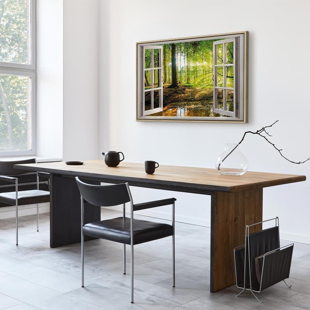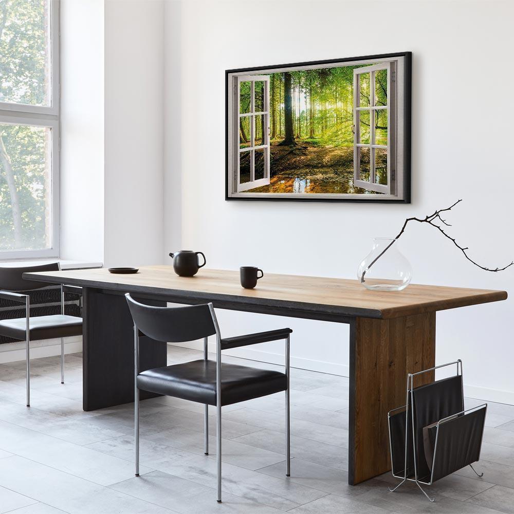 Unsere Bilder sind sicher und geruchsneutral und eignen sich daher ideal für Kinderzimmer. Die Größe wird Ihr Kind sicher beeindrucken! Bilder für Schlafzimmer sind ein echter Blickfang, genauso wie Bilder Wohnzimmer. Dekorieren Sie die Wände in Ihrem privaten Bereich mit einem Bild "Leinwandbild - Window: View on Forest". Wir empfehlen Bilder für Schlafzimmer , die Sie beruhigen und in eine erholsame Stimmung versetzen. Bilder aus unserer Kollektion werden Ihrem Interieur eine außergewöhnliche Atmosphäre verleihen. Unabhängig vom Raum schaffen auch Kunst Bilder eine gemütliche Atmosphäre für die Gäste. Massive Holzrahmen unterstreichen den einzigartigen Charakter der Schlafzimmerbilder, und ein schneller und sicherer Versand ist ein weiterer Vorteil, der für diese Wanddekorationen spricht Leinwandbilder sind in fünf Varianten erhältlich, sodass jeder Kunde die perfekte Option für seine Bedürfnisse findet.Die Variante auf Strukturleinwand (Standard) ist eine universelle Dekoration, die das Haushaltsbudget nicht belastet.Für Liebhaber edler Materialien ist ein Druck auf italienischer Leinwand aus 100 % Baumwolle die ideale Wahl.Und für Fans der Malerei? Hier überzeugt die außergewöhnliche Premium-Print-Technik – ein Bild, das auf Strukturleinwand gedruckt und von Hand mit einer Schicht transparenten Gels überzogen wird, die die Pinselstriche eines Künstlers imitiert – ein „wie gemalt“-Effekt, aber zu einem günstigeren Preis.Die Variante im soliden Holzrahmen des Typs American Box mit Tiefeneffekt (zwei Rahmenfarben zur Auswahl, Motiv auf Strukturleinwand gedruckt) bietet eine klassische Lösung in neuer Form.Das Akustikbild (Druck auf Strukturleinwand mit einer zusätzlichen Schicht schallabsorbierendem Schaumstoff) ist dagegen ein Volltreffer für alle, die Ästhetik mit Funktionalität verbinden möchten.Zwar sind die beiden letzten Optionen nur für bestimmte Größen von einteiligen Bildern verfügbar, doch bei allen Varianten legen wir GRATIS die erforderliche Anzahl an Haken und Nägeln zur Montage bei.
