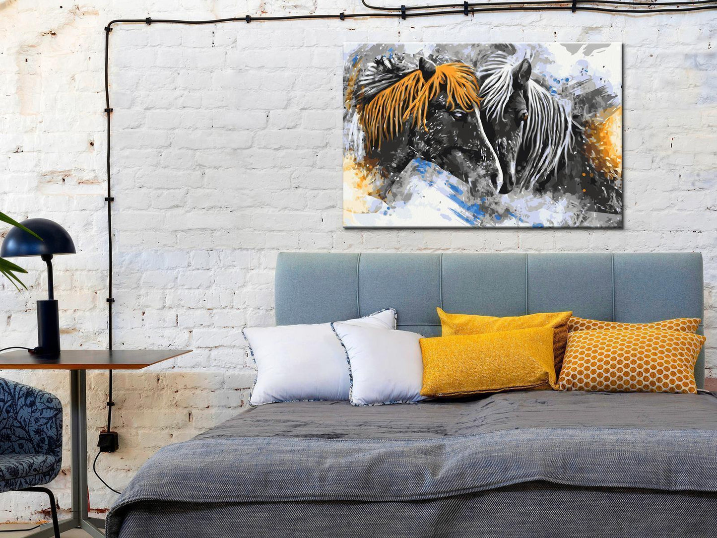 Suchst Du nach einer Möglichkeit, dich kreativ zu entspannen? Hast Du Lust auf ein einzigartiges Abenteuer, zu dem du auch deine Liebsten einladen kannst? Und gleichzeitig deine Kreativität erwecken und sich wie ein echter Künstler fühlen? Nichts einfacher! Entdecke unser neuestes Hit für Hobbyzeit - Malen nach Zahlen. Ein buntes Muster zum Bemalen "Malen nach Zahlen - Black and Yellow Horses" Malen nach Zahlen ist eine ungewöhnliche Idee für die Freizeitgestaltung. Malen nach Zahlen "Malen nach Zahlen - Black and Yellow Horses" ist eine Aktivität für Menschen in jedem Alter. Perfekt für Hobby-Maler und perfekte Wanddekoration.