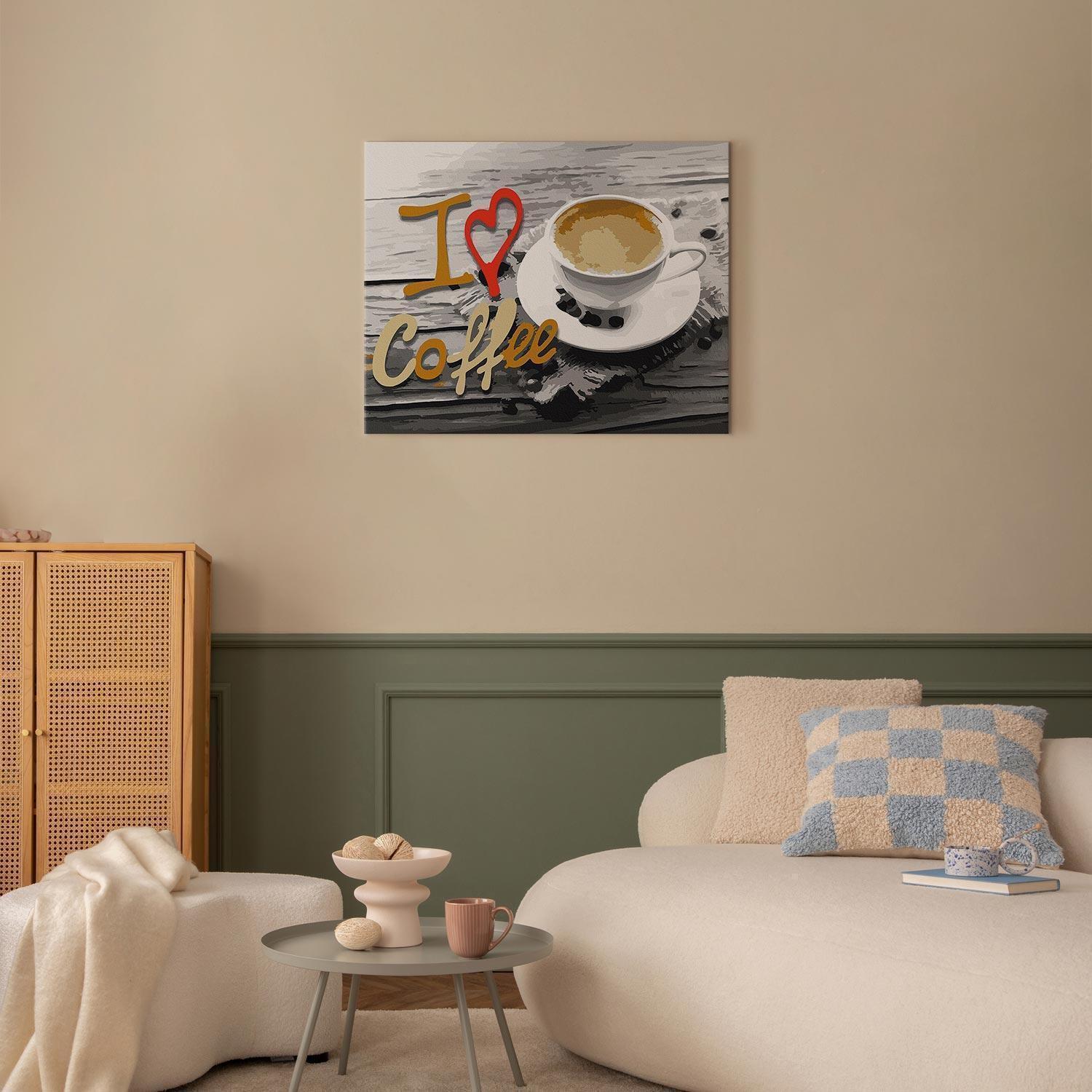 Suchst Du nach einer Möglichkeit, dich kreativ zu entspannen? Hast Du Lust auf ein einzigartiges Abenteuer, zu dem du auch deine Liebsten einladen kannst? Und gleichzeitig deine Kreativität erwecken und sich wie ein echter Künstler fühlen? Nichts einfacher! Entdecke unser neuestes Hit für Hobbyzeit - Malen nach Zahlen. Ein buntes Muster zum Bemalen "Malen nach Zahlen - I Love Coffee" Malen nach Zahlen ist eine ungewöhnliche Idee für die Freizeitgestaltung. Malen nach Zahlen "Malen nach Zahlen - I Love Coffee" ist eine Aktivität für Menschen in jedem Alter. Perfekt für Hobby-Maler und perfekte Wanddekoration.