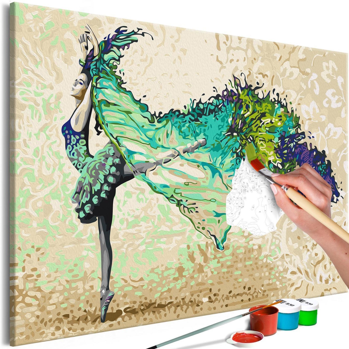 Hochwertige Vliesleinwand auf Holzspannrahmen (100% Fichte) aufgespannt, profesionelle Malpinsel und qualitative Acrylfarben in Einzeltöpfchen. Dein Bild wird zu echtem Kunstwerk.
