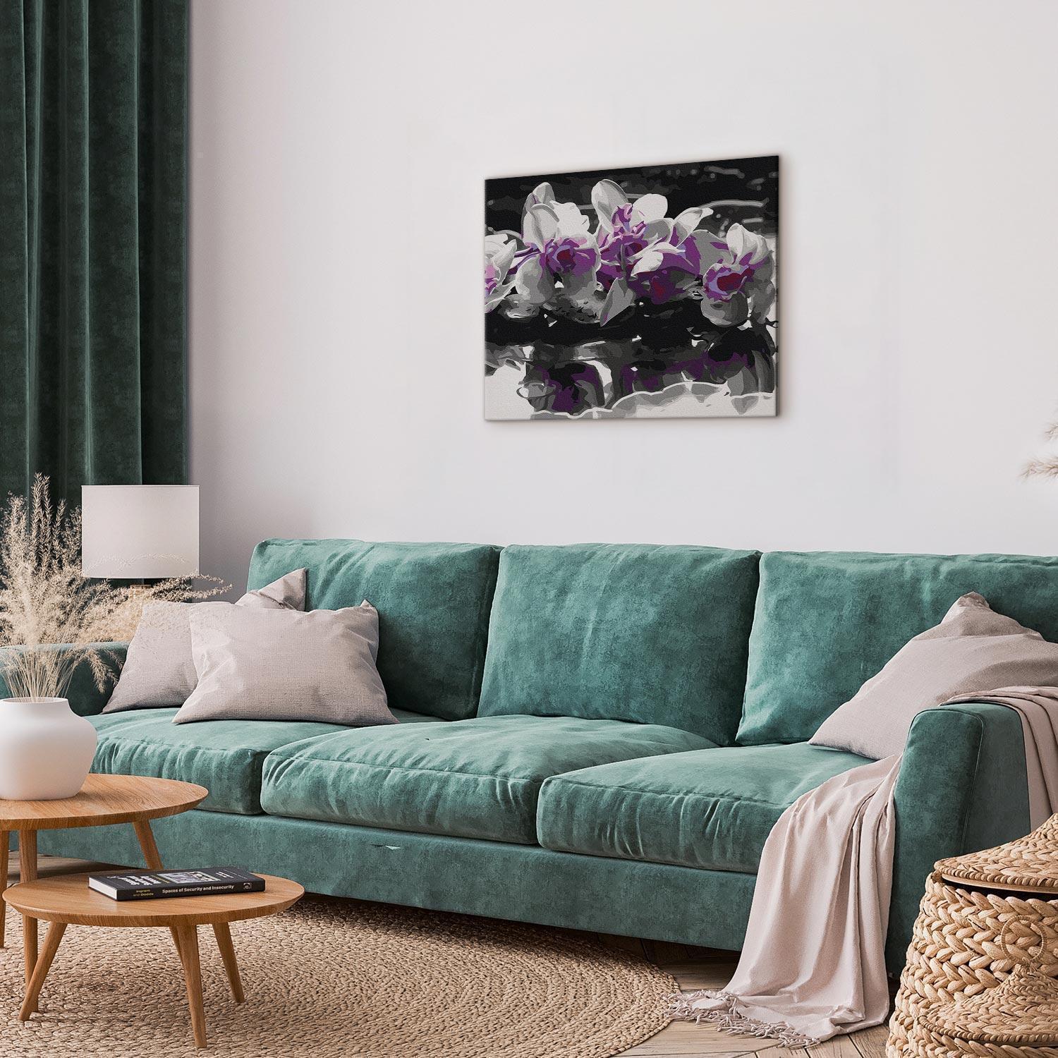 Malen nach Zahlen - Purple Orchid (Black Background & Reflection In The Water)